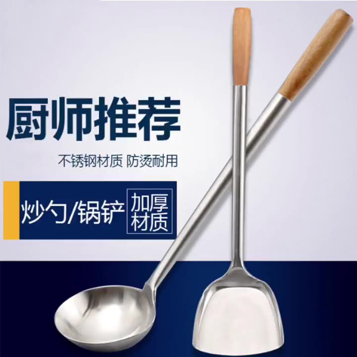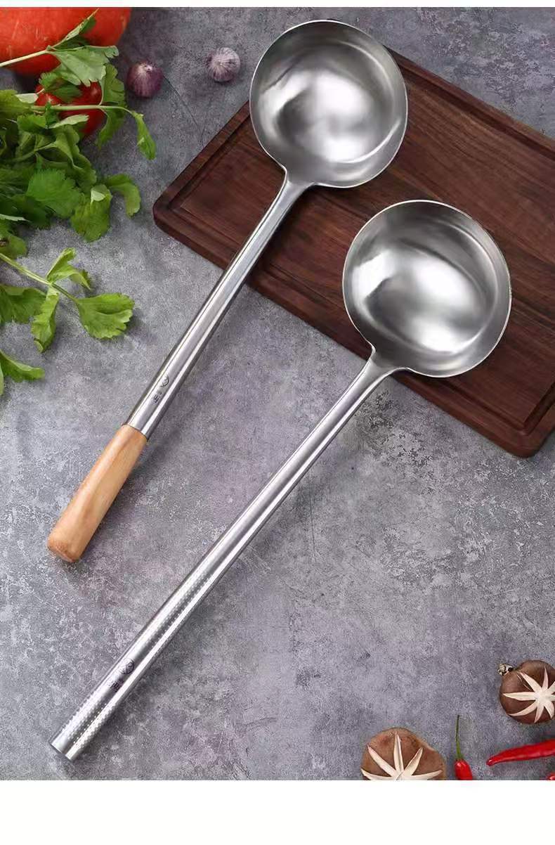 두꺼운 스테인레스 스틸 냄비 나무 손잡이 볶음 스푼 볶음 숟가락 긴 손잡이 대형 요리사 상업용 숟가락 식당 손 숟가락스토어 가기
