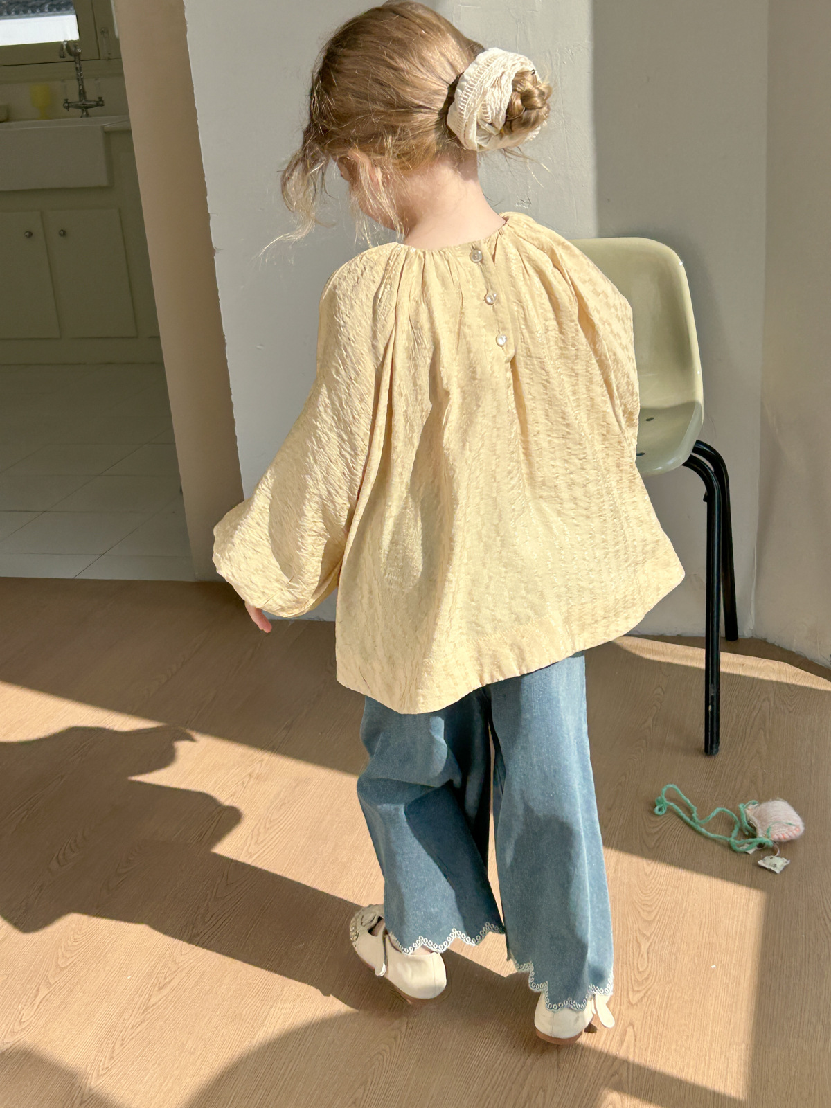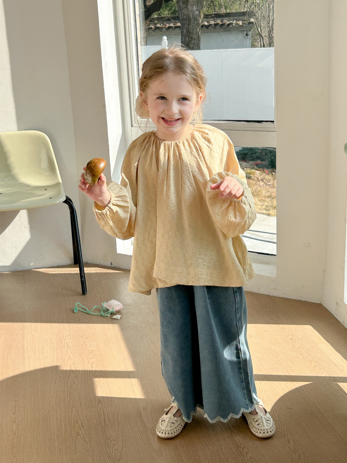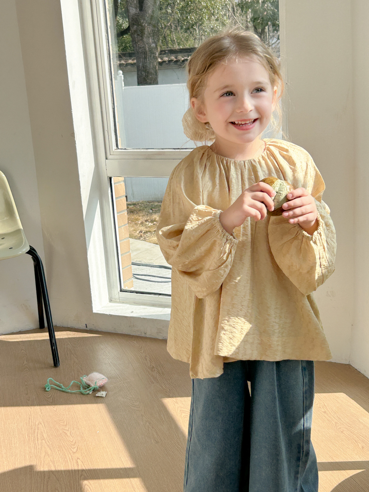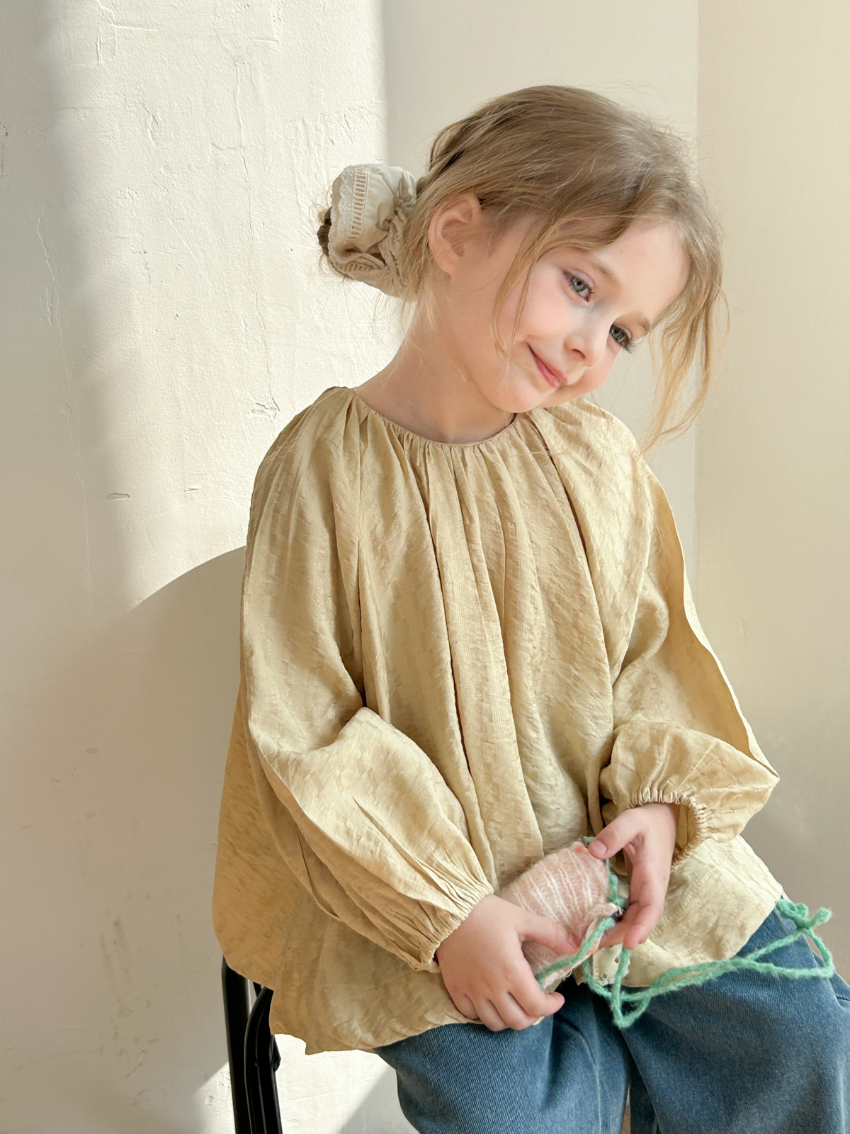 2025 봄과 여름 새 여자 라운드 넥 느슨한 긴팔 소녀 한국 스타일 외국인 스타일 올 매치 솔리드 컬러 인형 셔츠