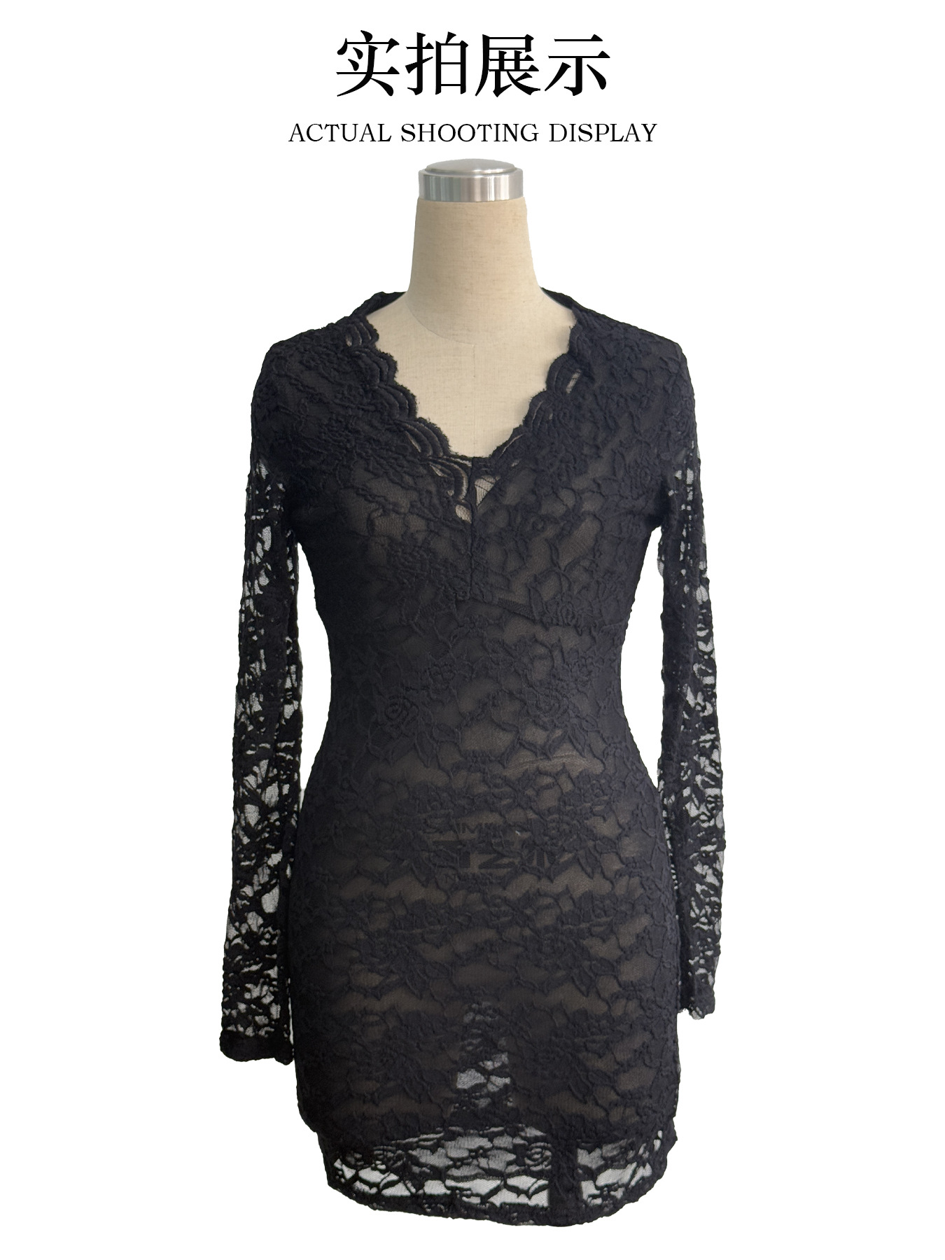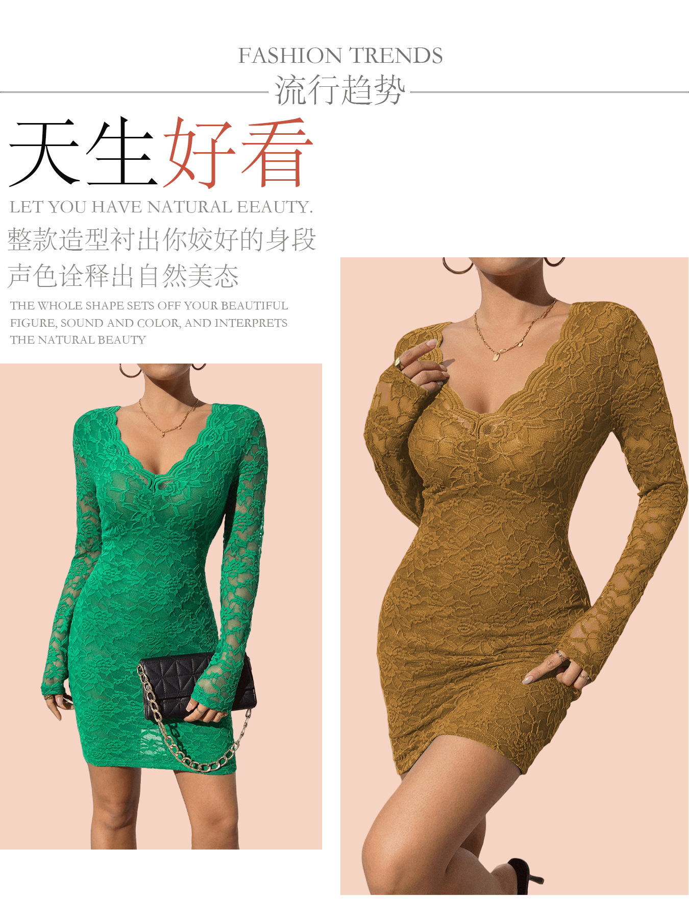 유럽 및 미국 해외직구 아마존 2025 가을 겨울 신상 여성 브이넥 섹시 레이스 슬림 긴팔 드레스 파티용스토어 가기