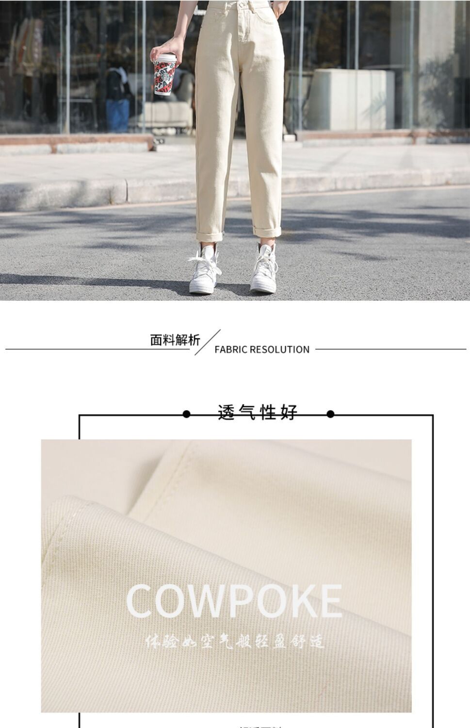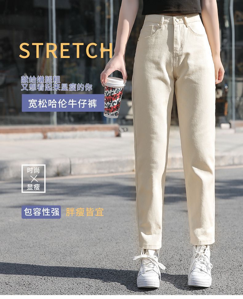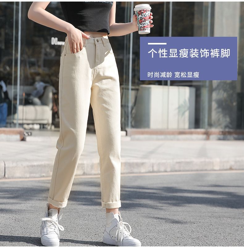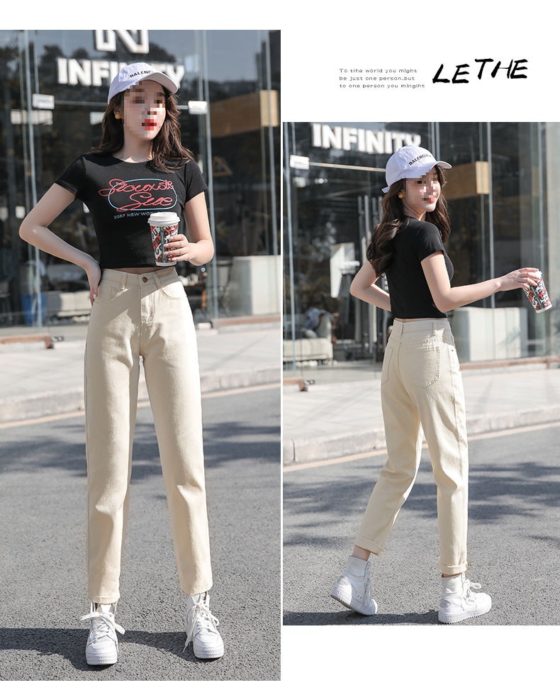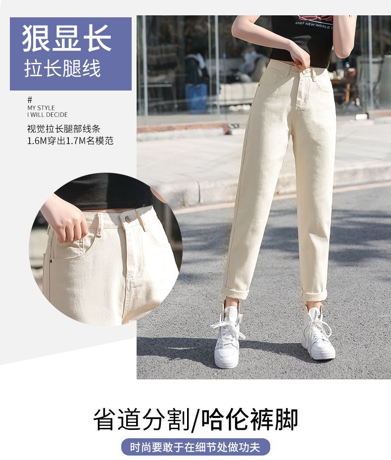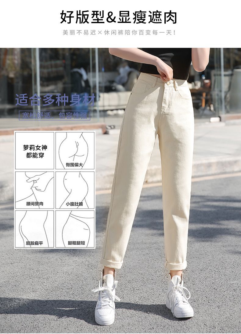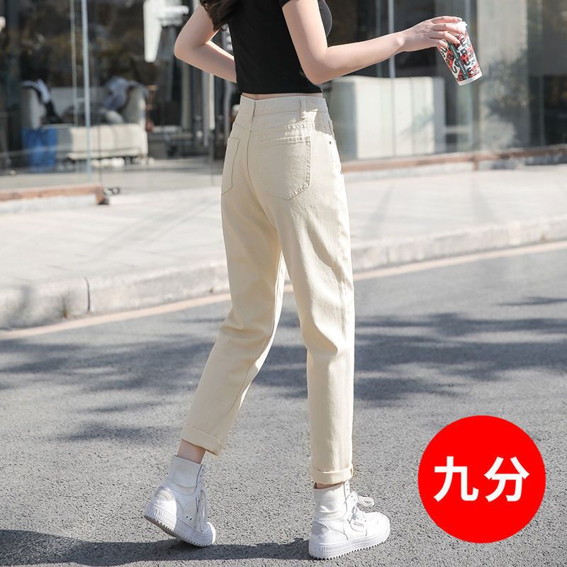 아이보리 할란 무 청바지 여자 올매치 학생 봄 여름 가을 새 한국식 하이웨이스트 슬리밍 루즈스토어 가기