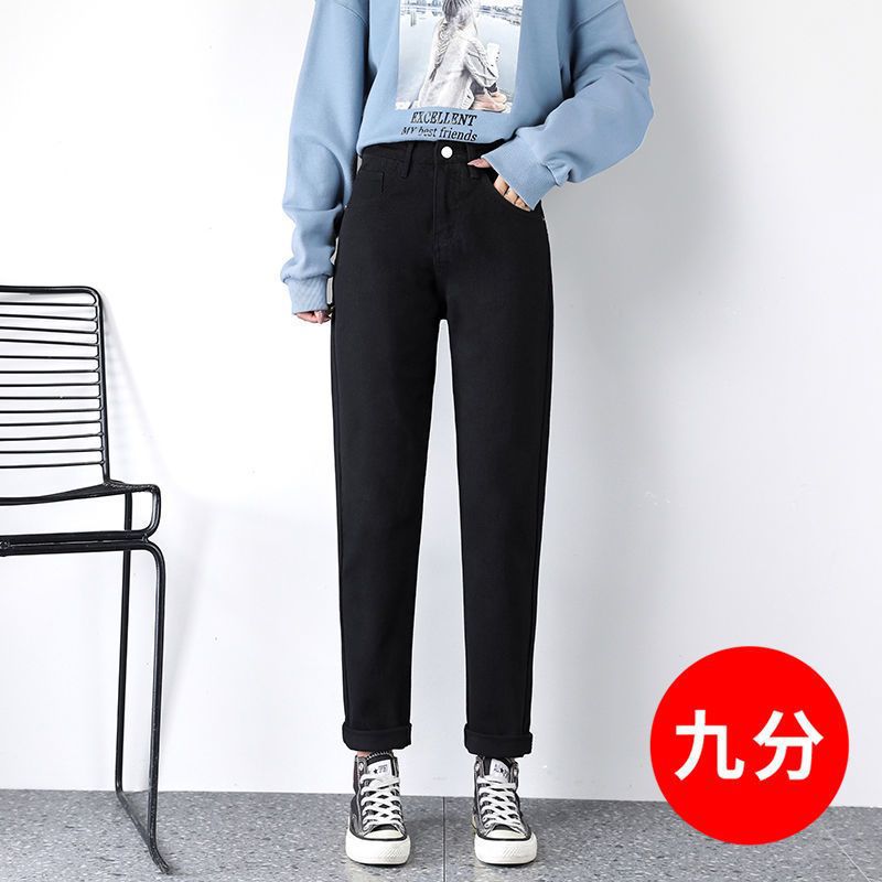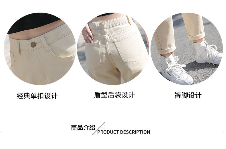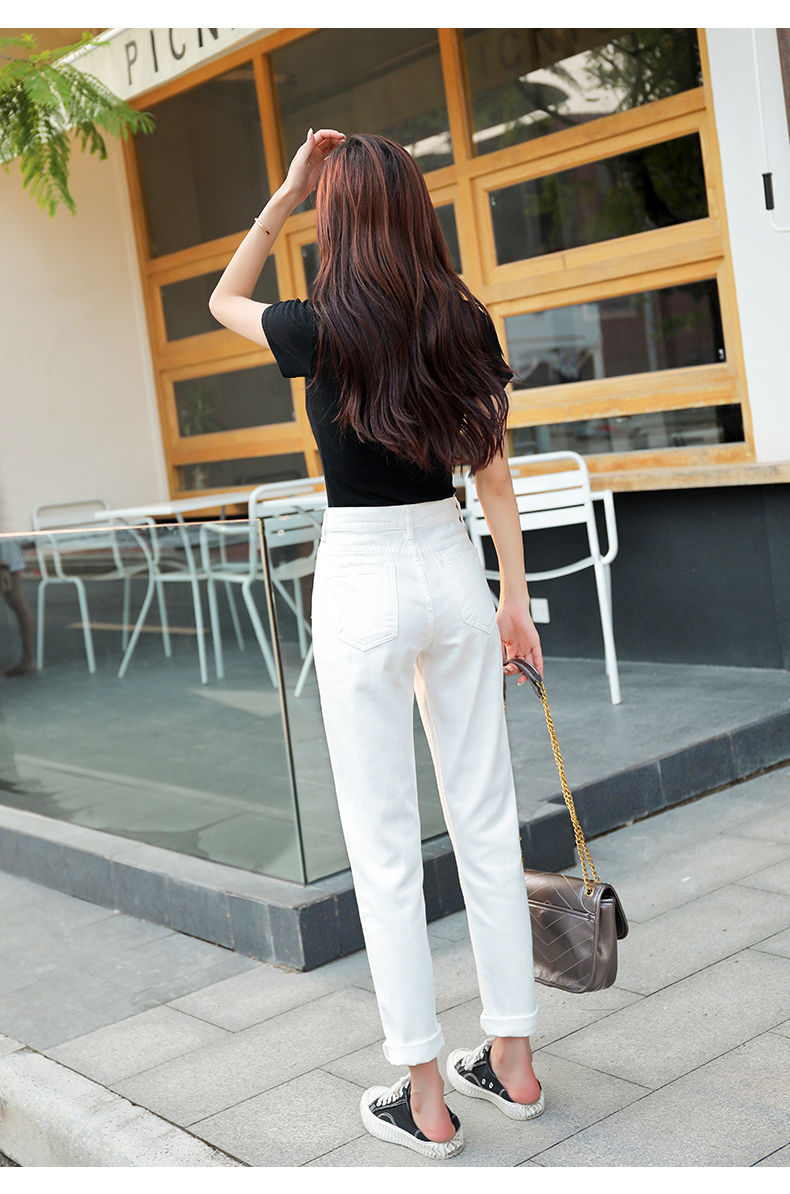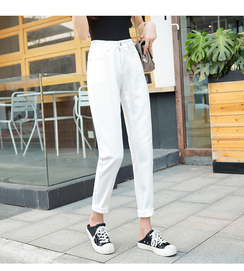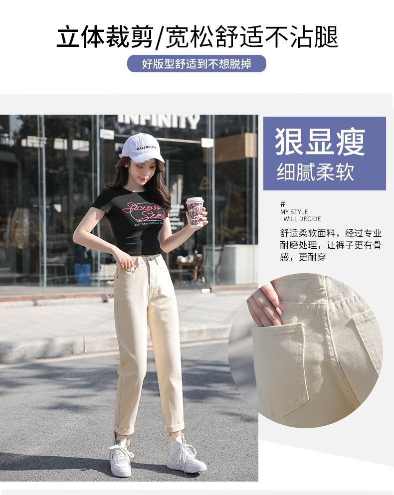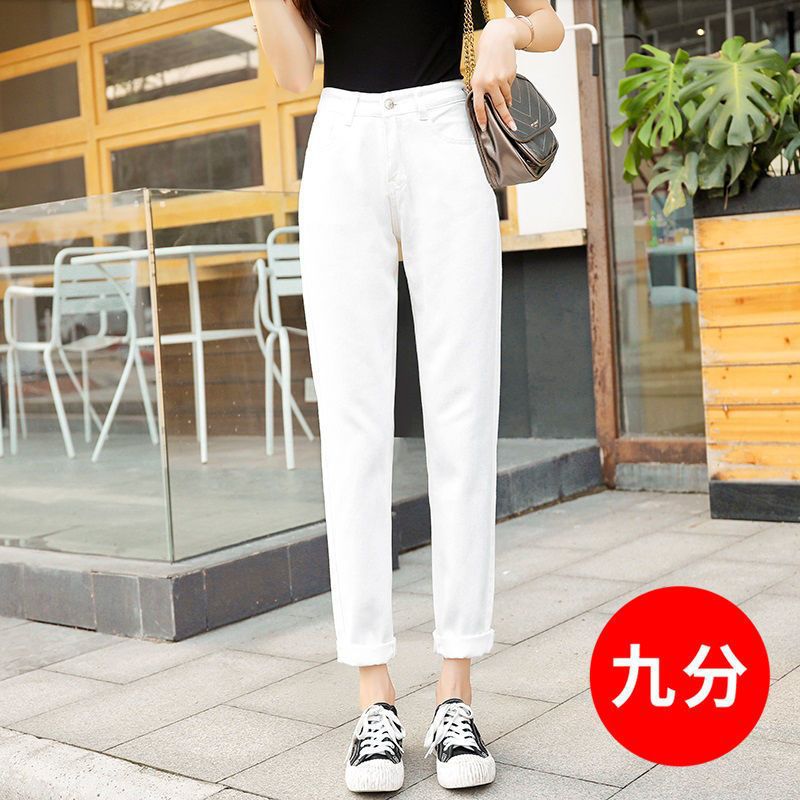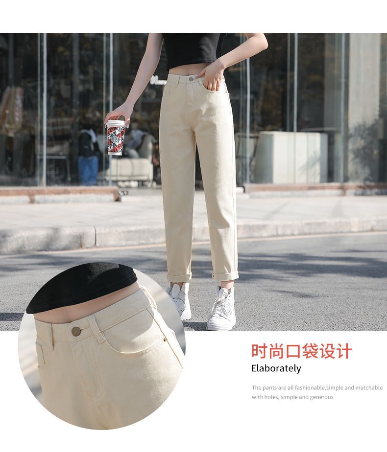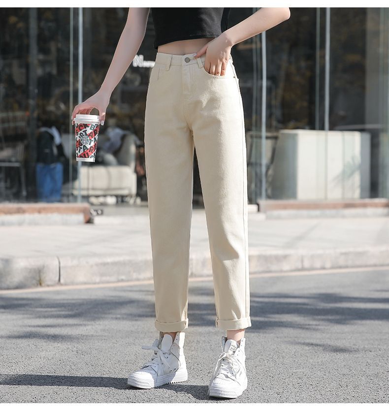 아이보리 할란 무 청바지 여자 올매치 학생 봄 여름 가을 새 한국식 하이웨이스트 슬리밍 루즈스토어 가기