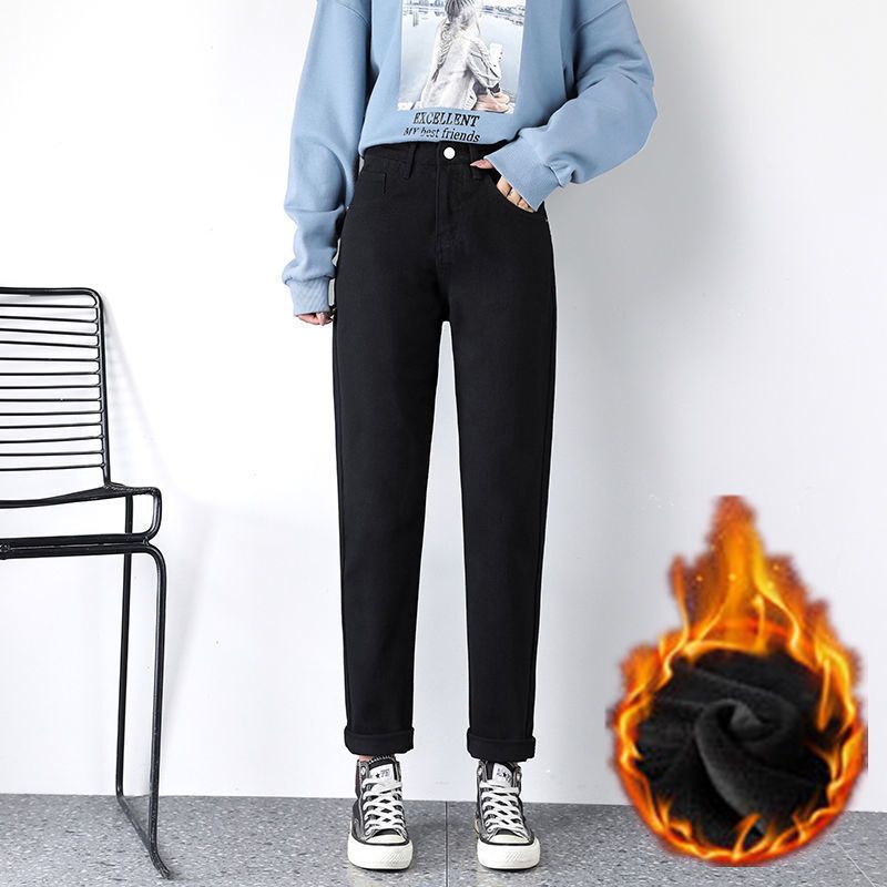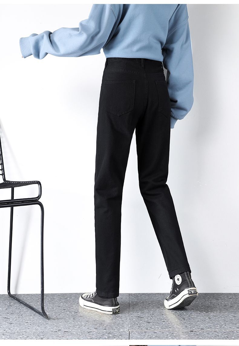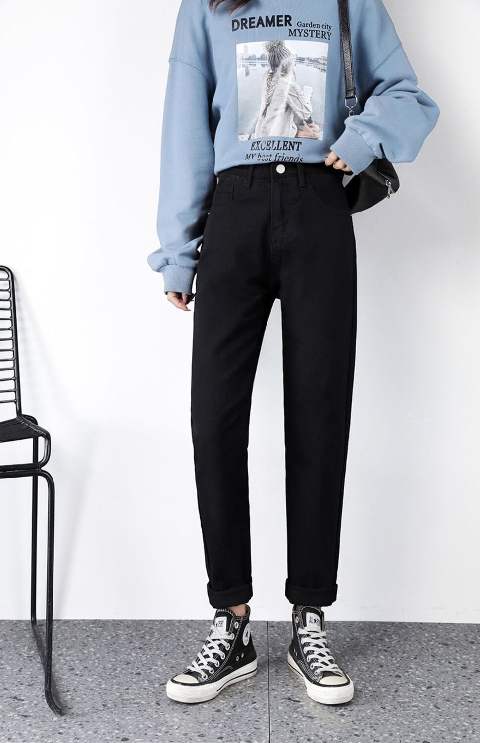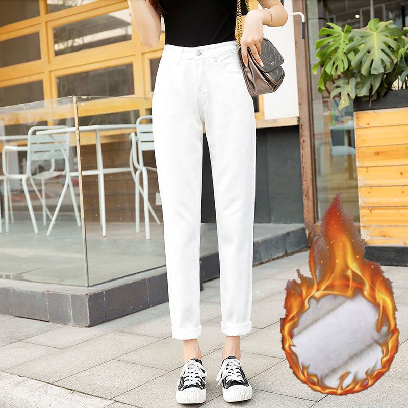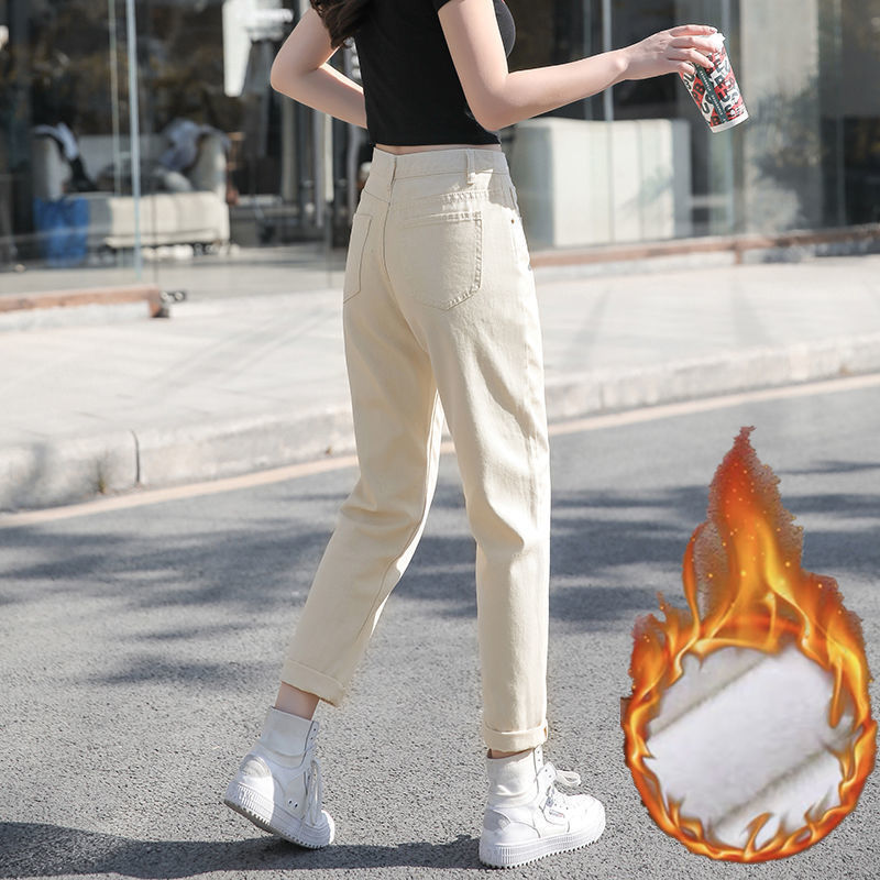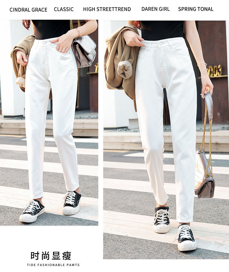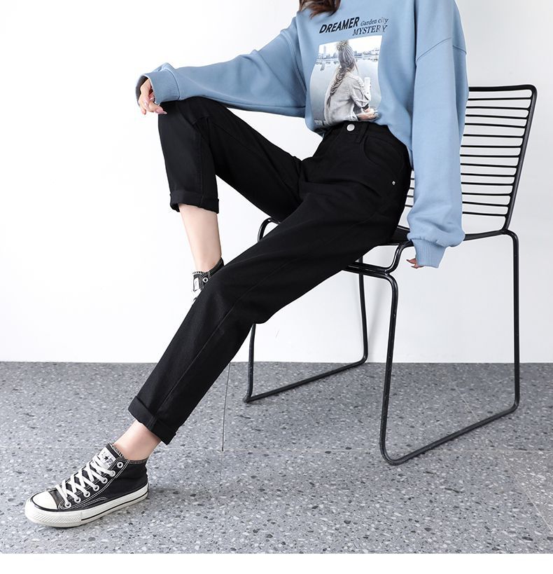 아이보리 할란 무 청바지 여자 올매치 학생 봄 여름 가을 새 한국식 하이웨이스트 슬리밍 루즈스토어 가기