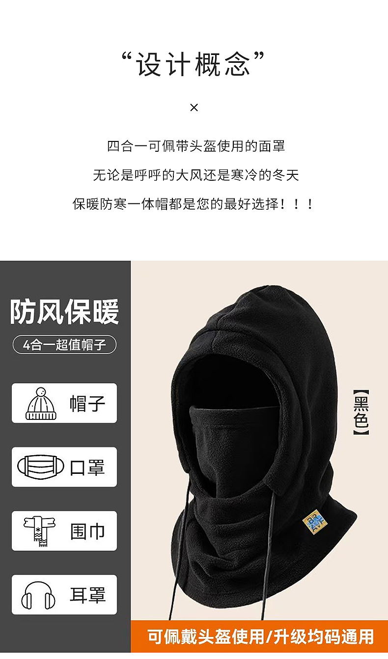 • 바람과 추위에 대한 두려움 없음 - 헬멧을 착용할 수 있으며 이중 보장으로 더욱 안심할 수 있음 - 블랙