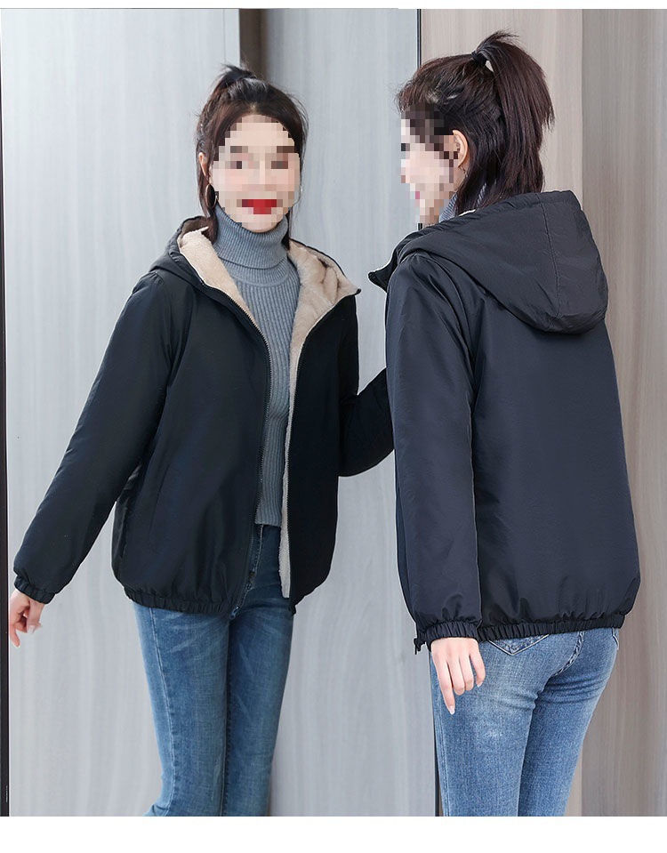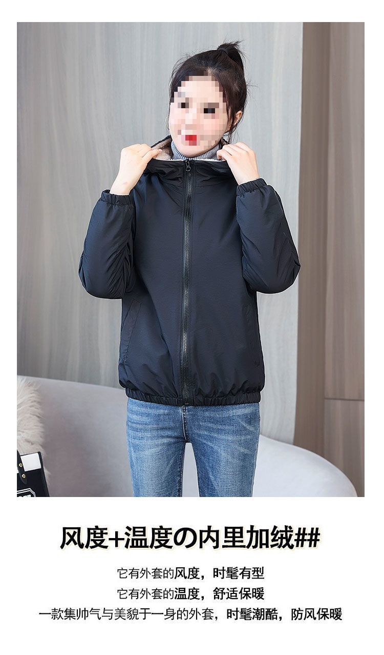 [기모 옵션] 가을과 겨울 새 코트 여성용 한국어 버전의 느슨한 캐주얼 패션 재킷 후드 단색 코트 조수스토어 가기
