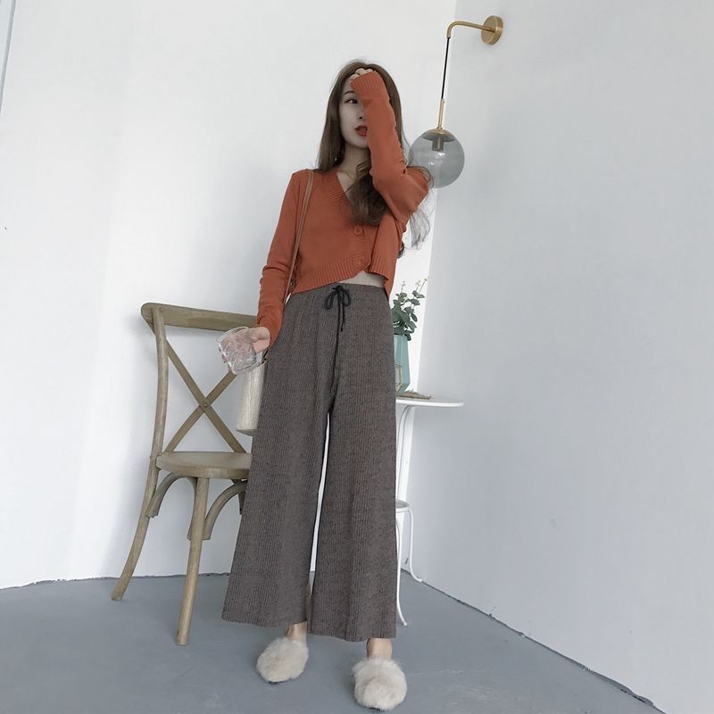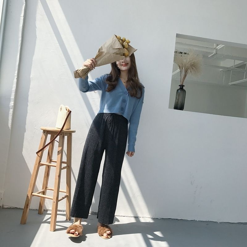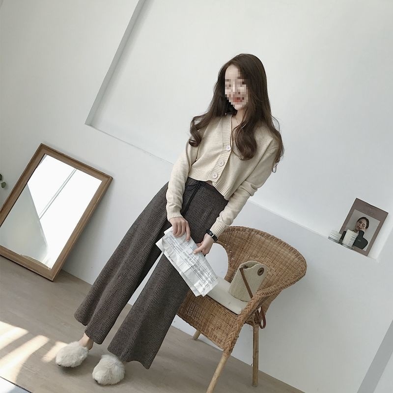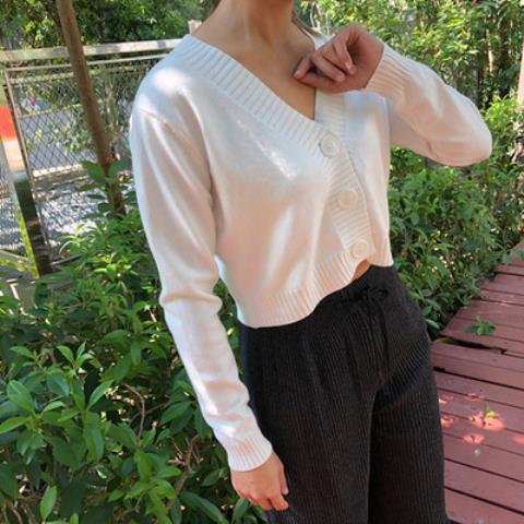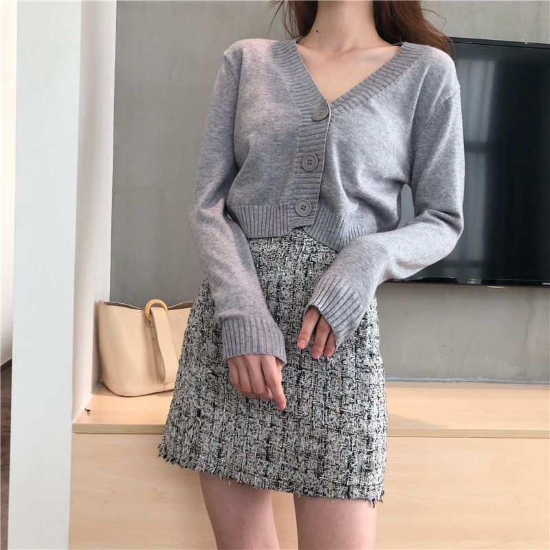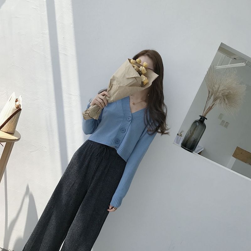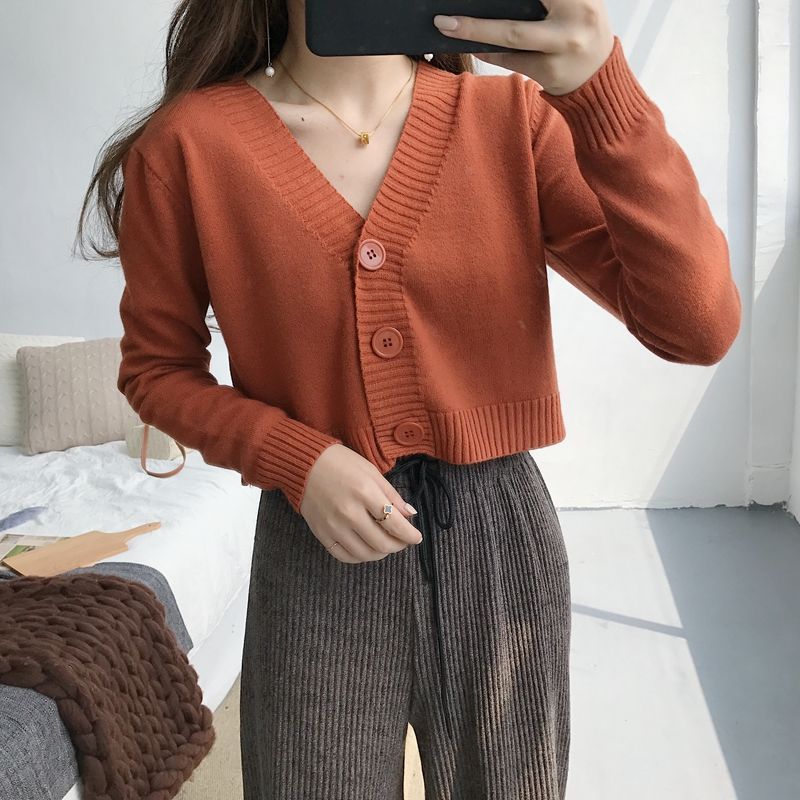 홍콩 스타일 빈티지 V 넥 하이 허리 쇼트 스웨터 올 매치 솔리드 컬러 슬림핏 긴 소매 버튼 스웨터 카디건 코트 여성스토어 가기