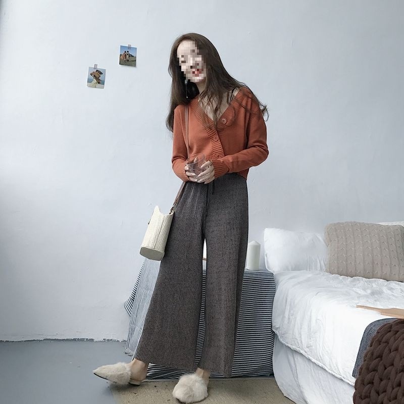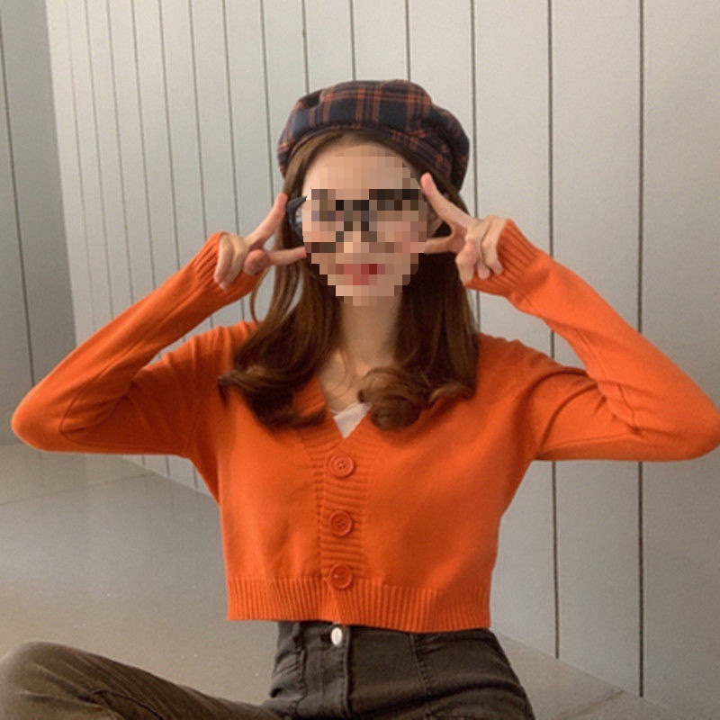 홍콩 스타일 빈티지 V 넥 하이 허리 쇼트 스웨터 올 매치 솔리드 컬러 슬림핏 긴 소매 버튼 스웨터 카디건 코트 여성