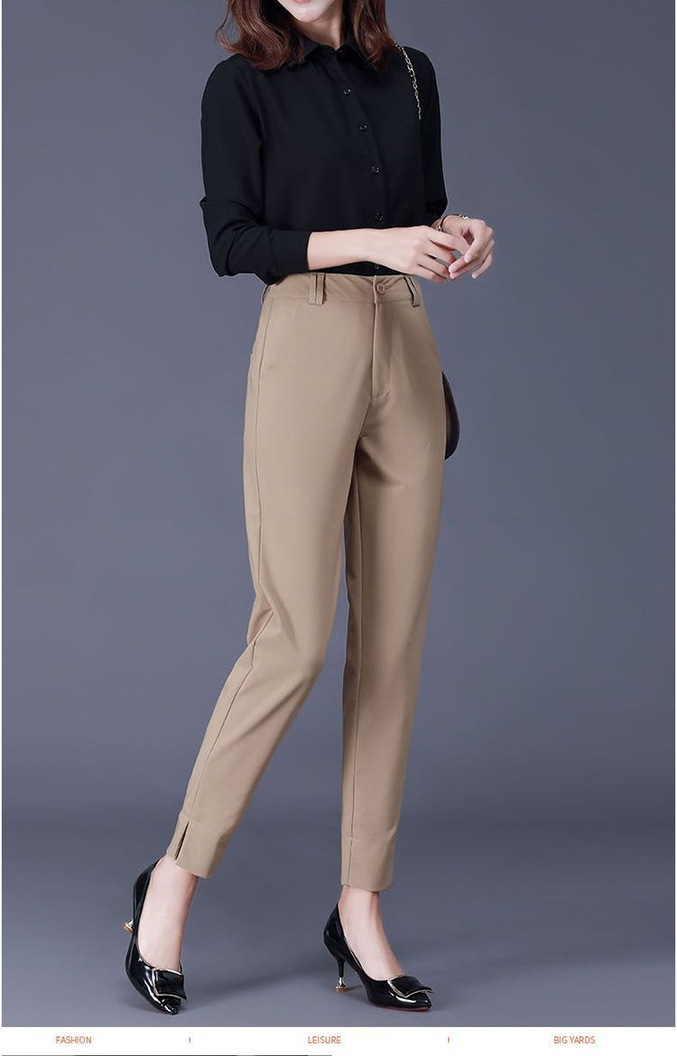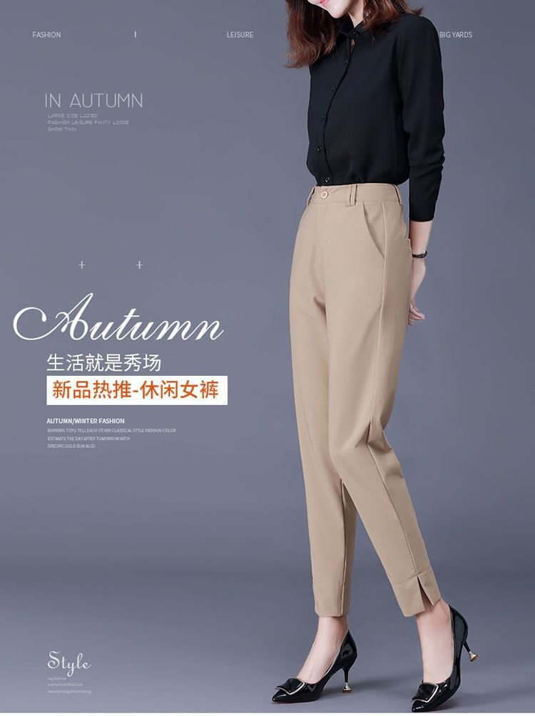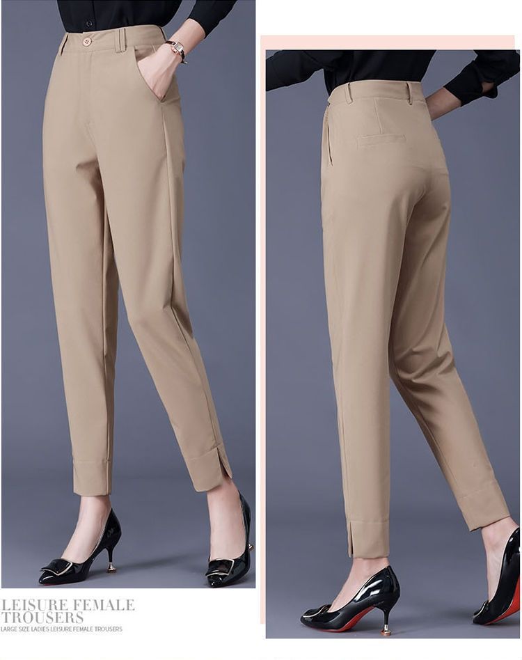여성용 바지 봄 여름 가을 새로운 하이 엔드 살구색 자른 바지 슬림 핏 슬림 캐주얼 사이드 슬림 바지스토어 가기