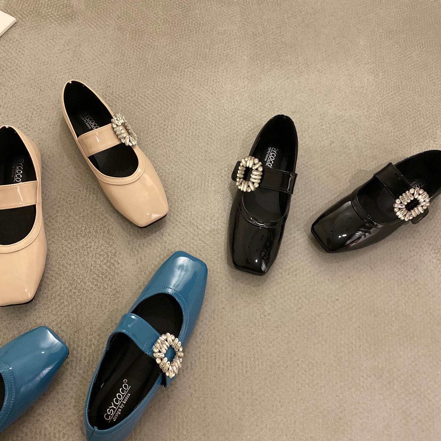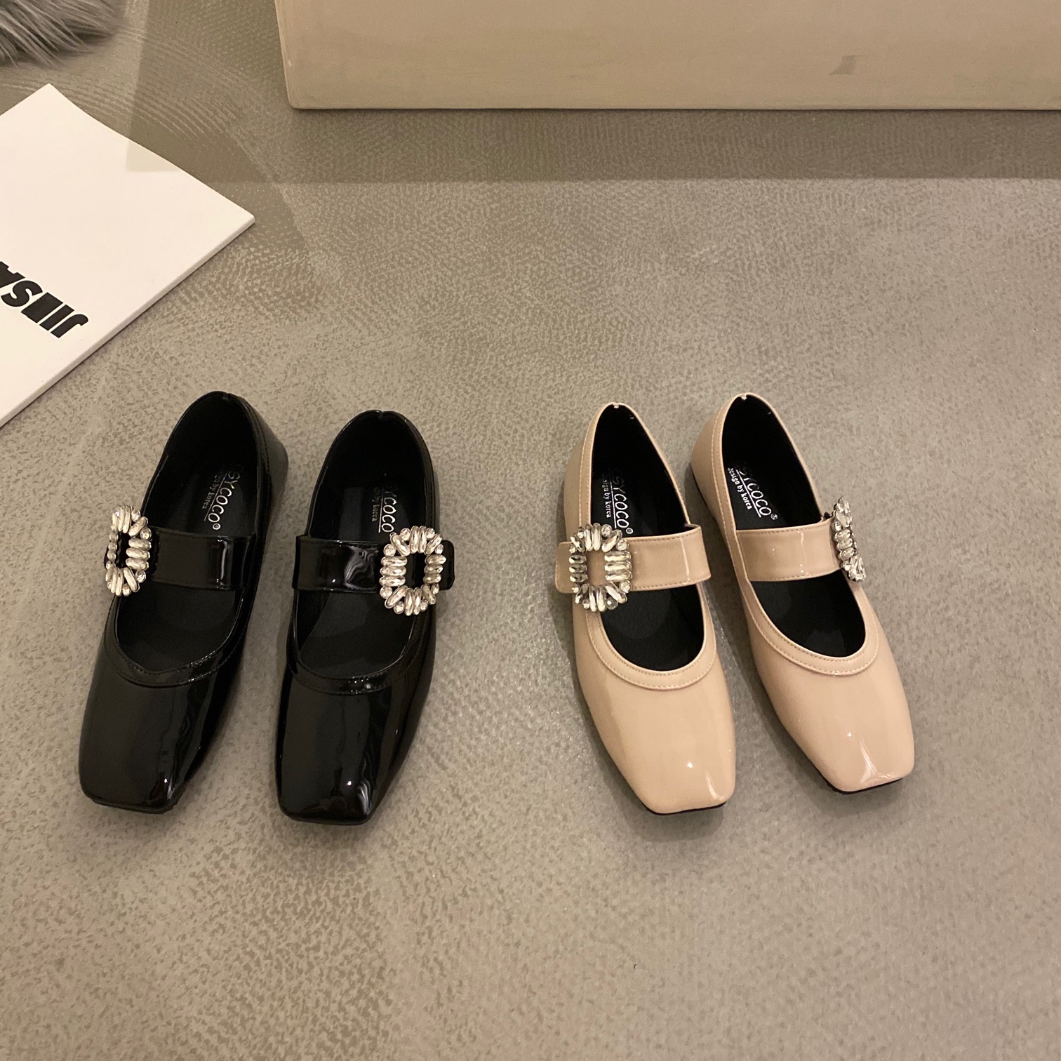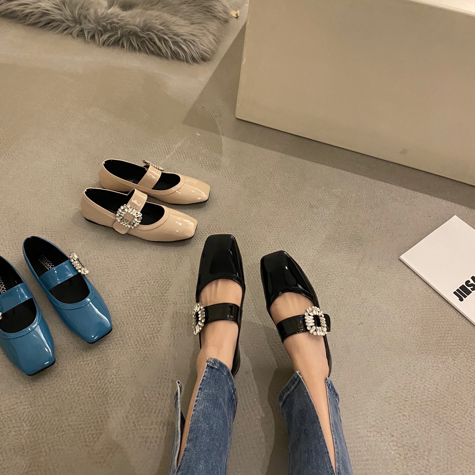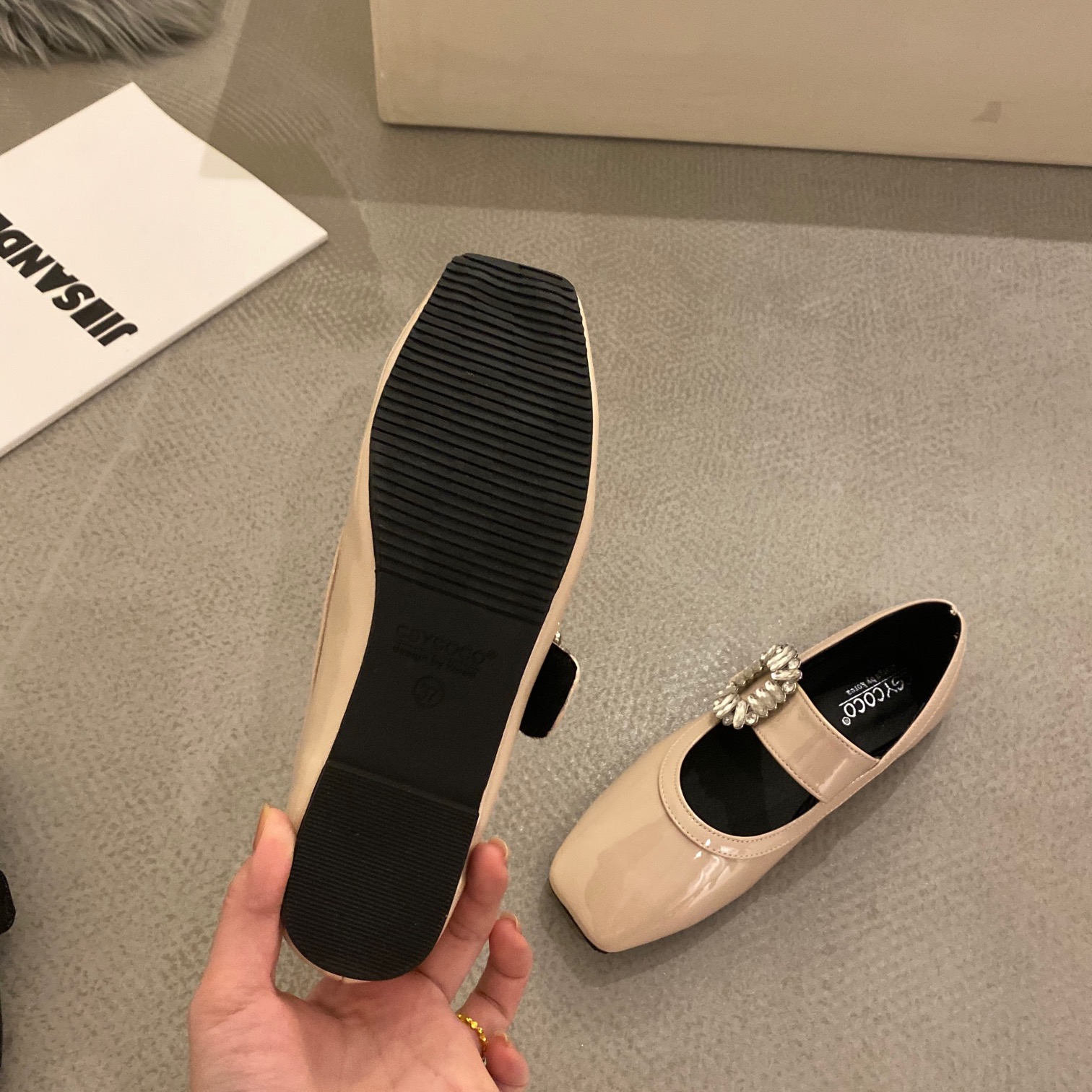 저녁 부드러운 신발 여성 신발 2025 새로운 봄 광장 머리 메리 제인 평면 모조 다이아몬드 프랑스 작은 가죽 신발스토어 가기