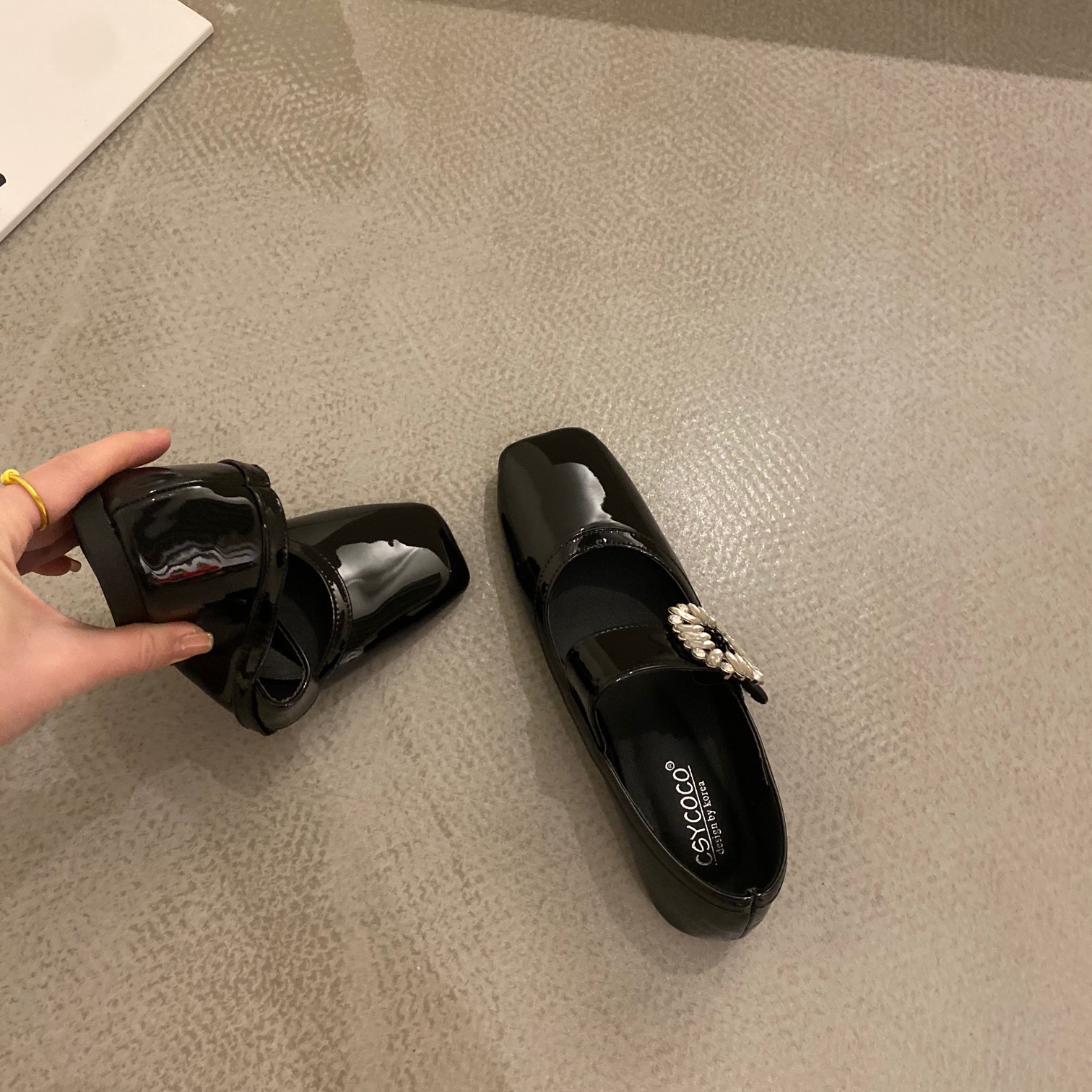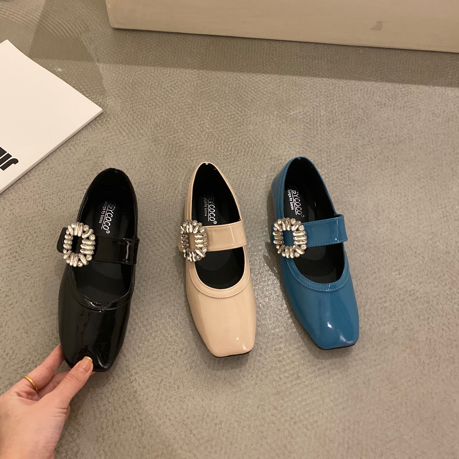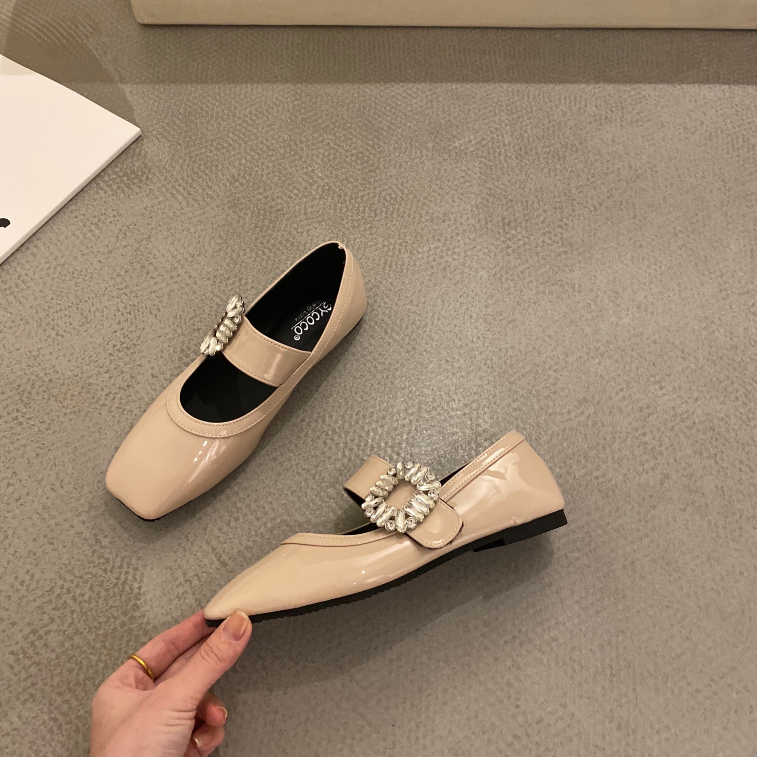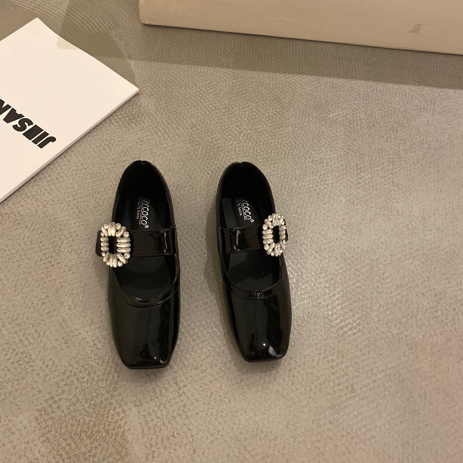저녁 부드러운 신발 여성 신발 2025 새로운 봄 광장 머리 메리 제인 평면 모조 다이아몬드 프랑스 작은 가죽 신발스토어 가기