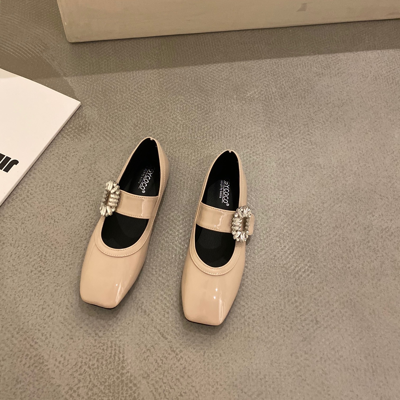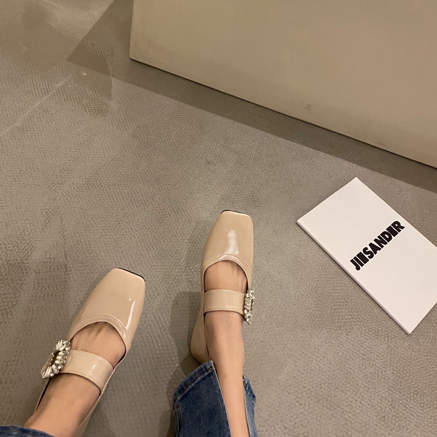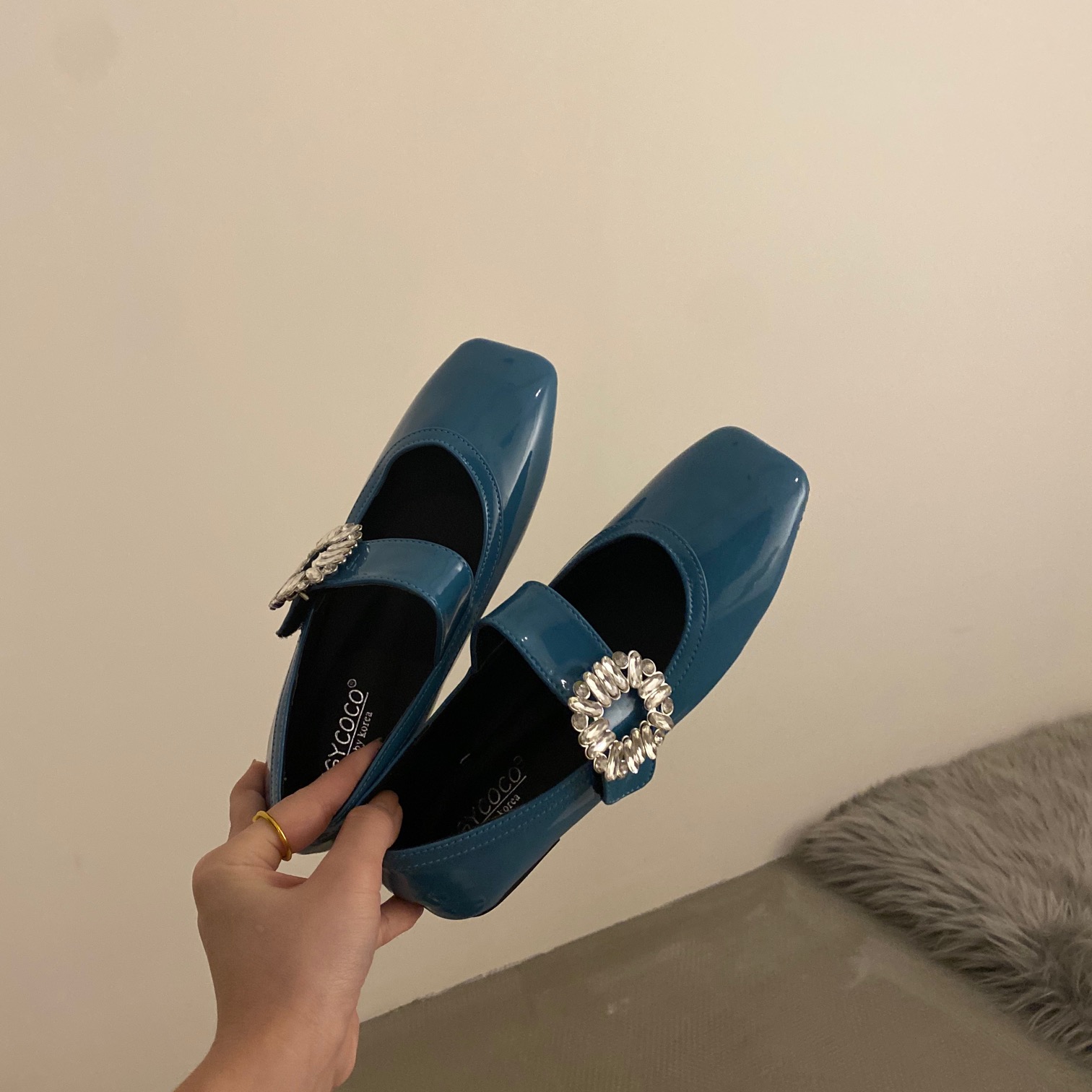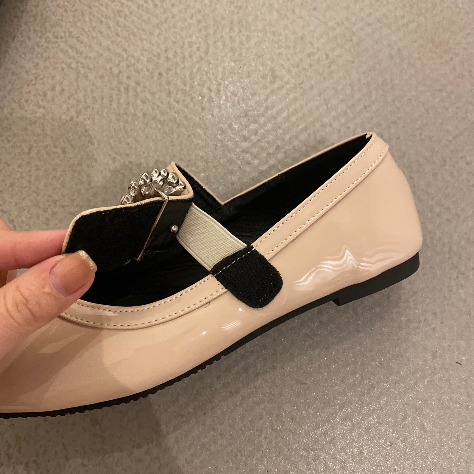저녁 부드러운 신발 여성 신발 2025 새로운 봄 광장 머리 메리 제인 평면 모조 다이아몬드 프랑스 작은 가죽 신발스토어 가기