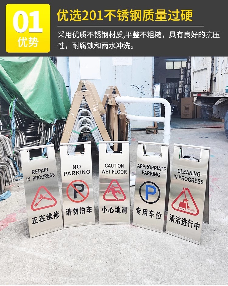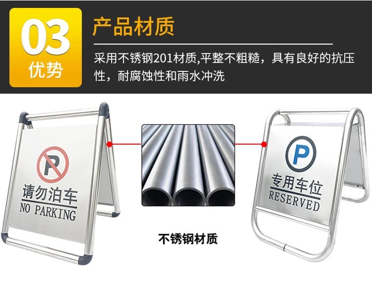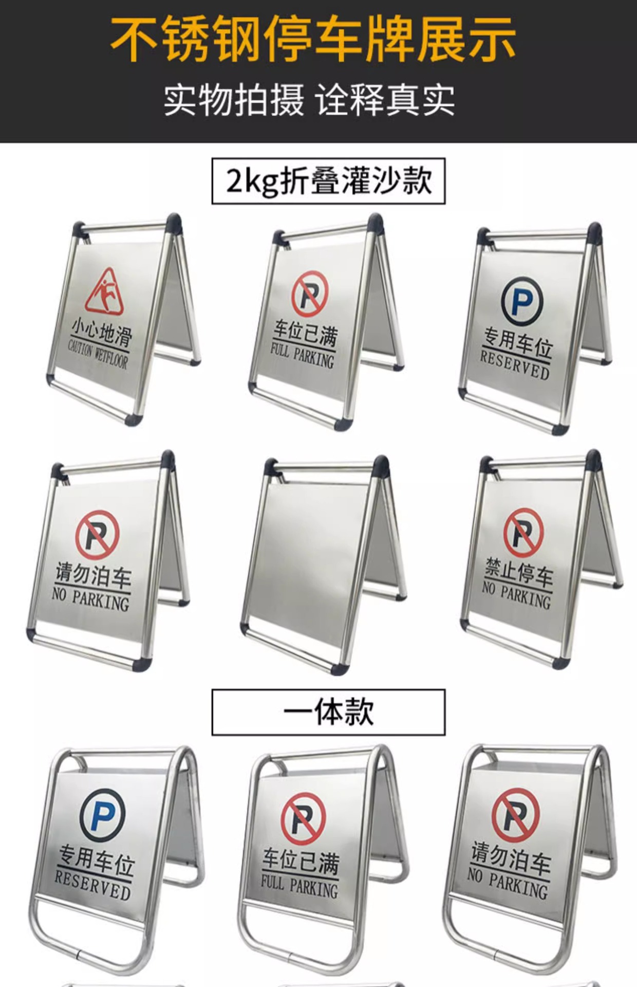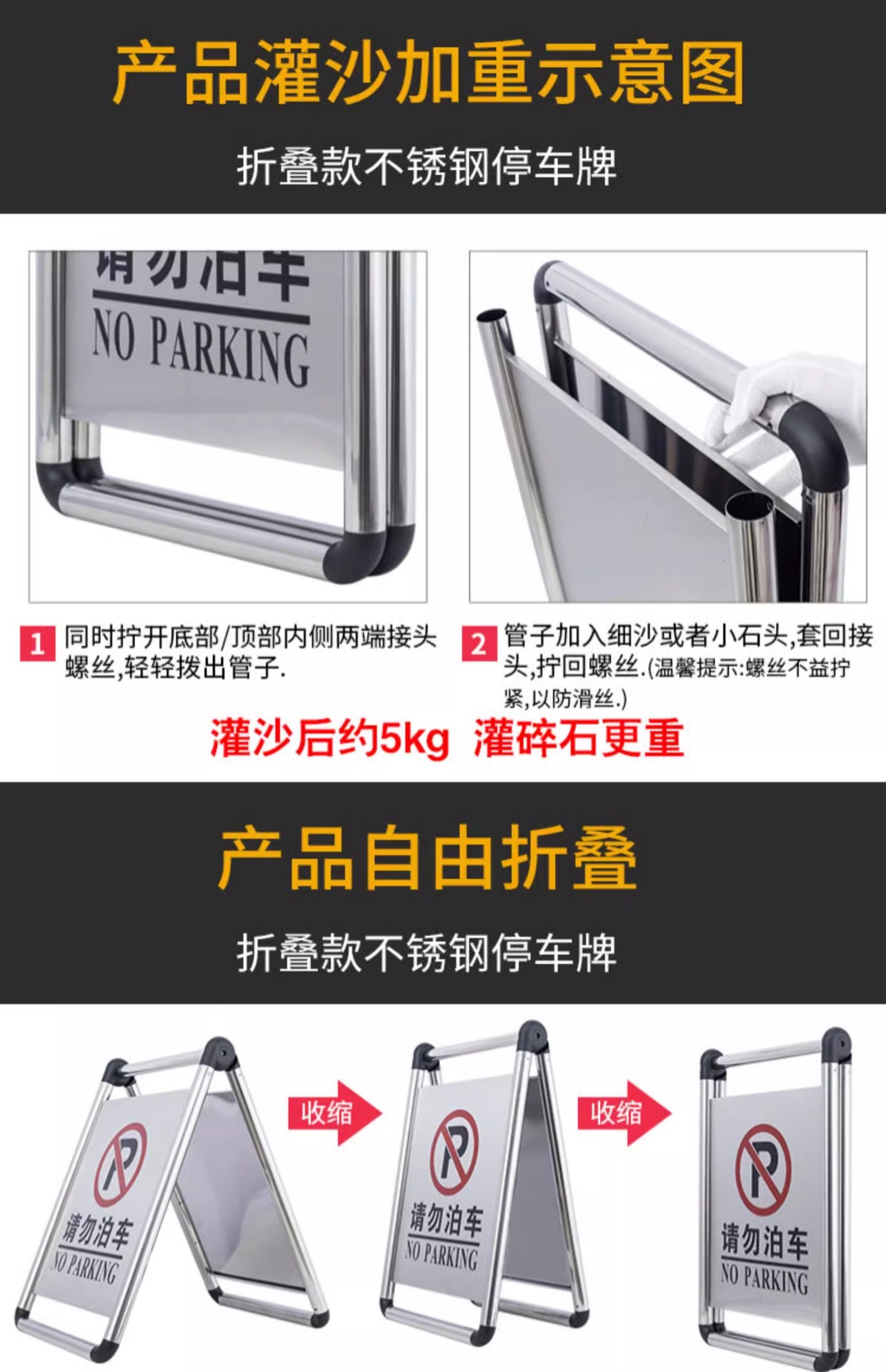 스테인레스 스틸 주차 표지판 폴딩 A-워드 경고 표지판 없음 주차 표지판 특별 주차 더미