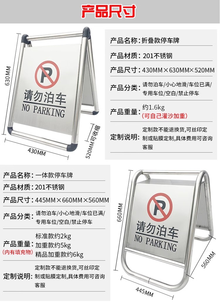 스테인레스 스틸 주차 표지판 폴딩 A-워드 경고 표지판 없음 주차 표지판 특별 주차 더미스토어 가기