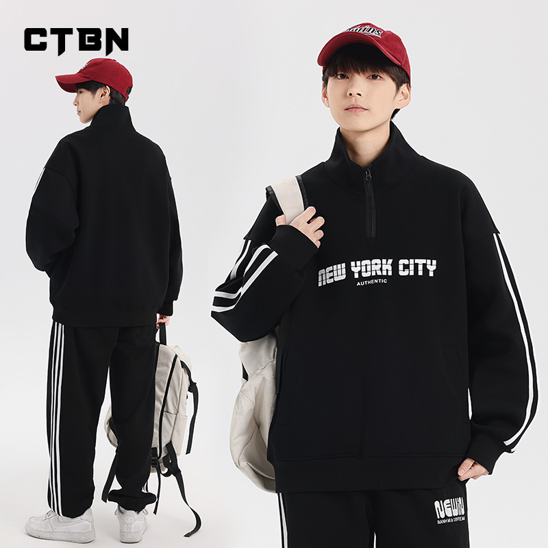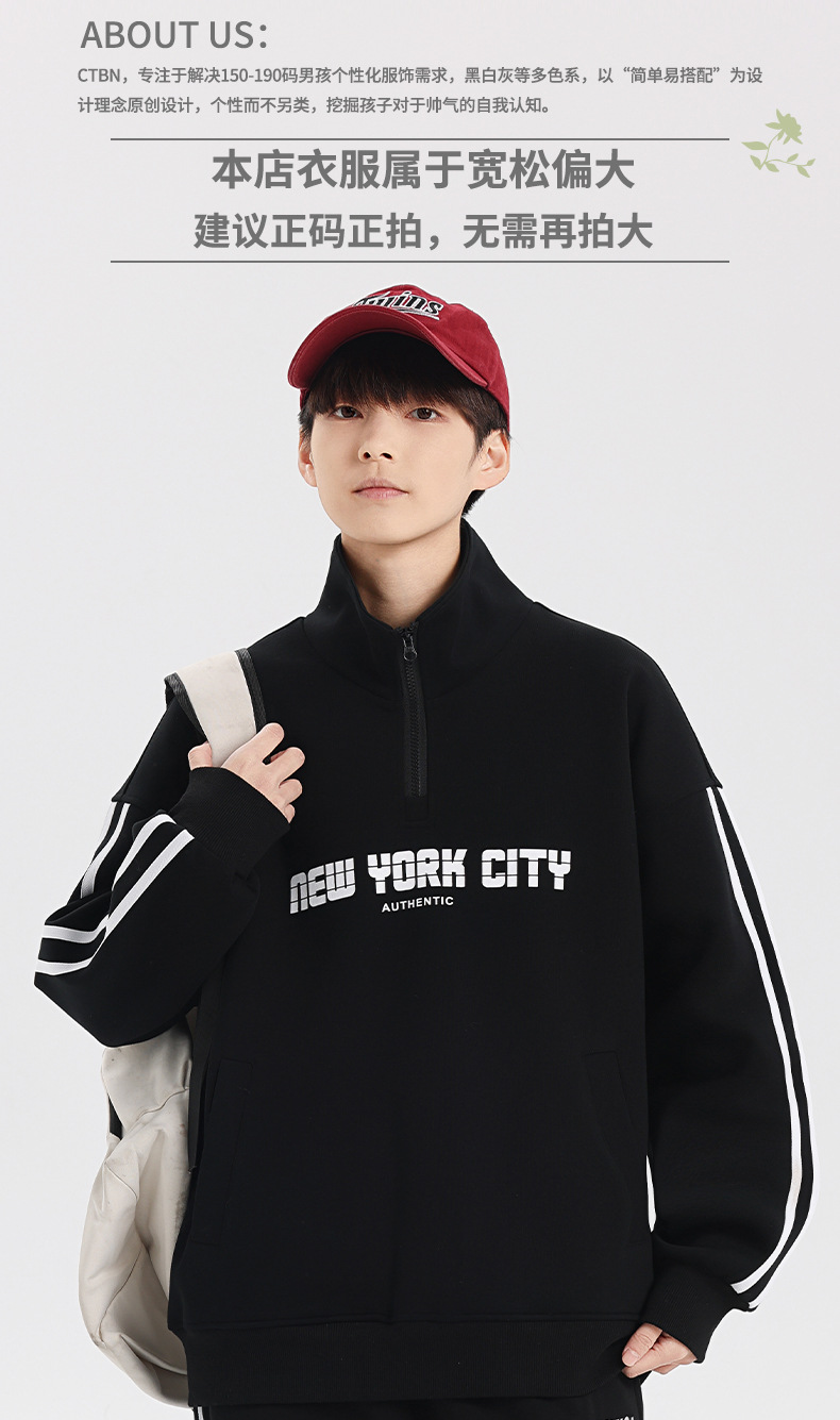 남자 아동 스탠드 칼라 스웨트 셔츠 2025 새로운 뚱뚱한 어린이 봄, 가을 의류 청소년 중학생 소년 봄상의스토어 가기