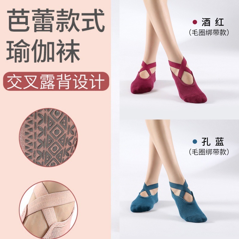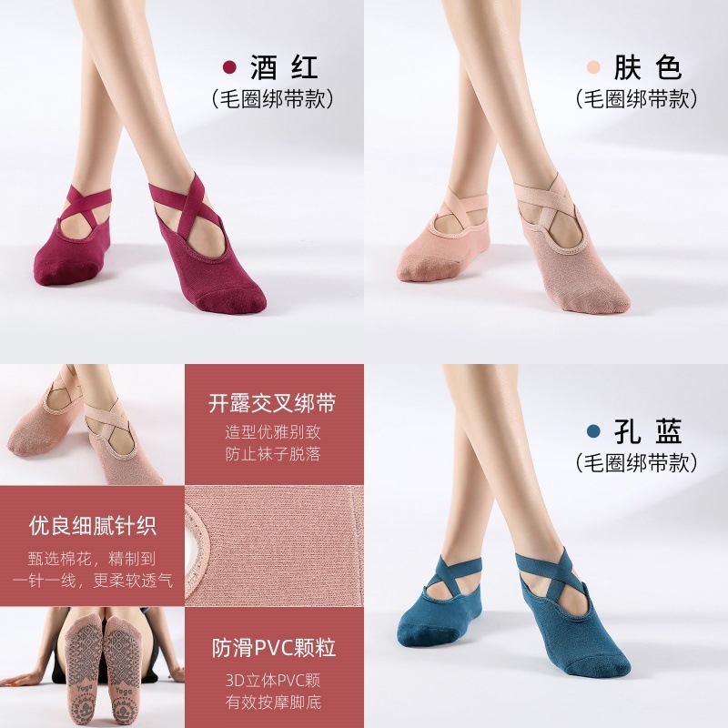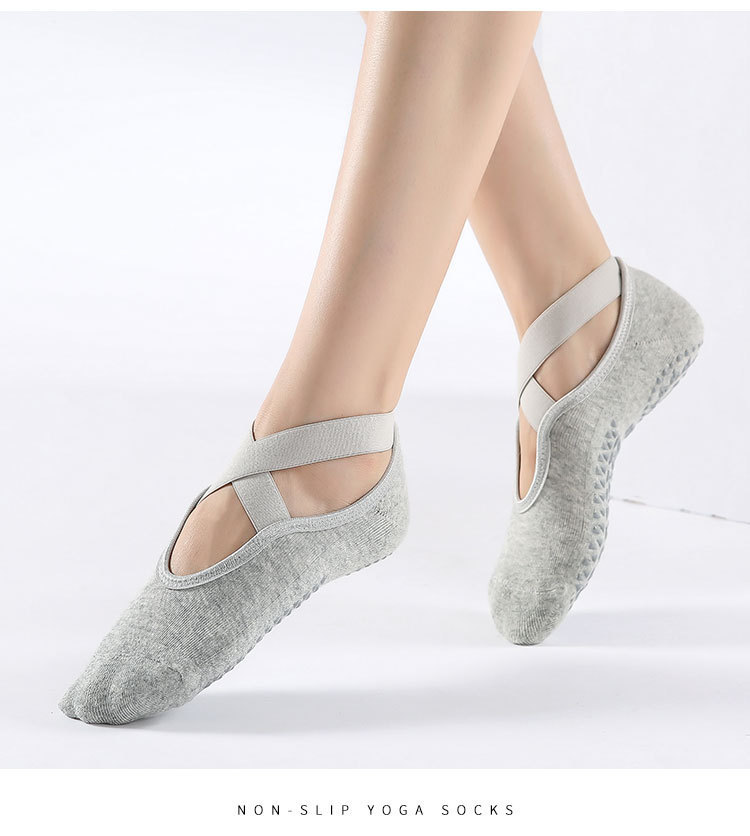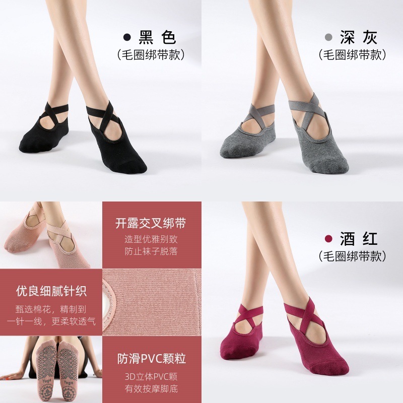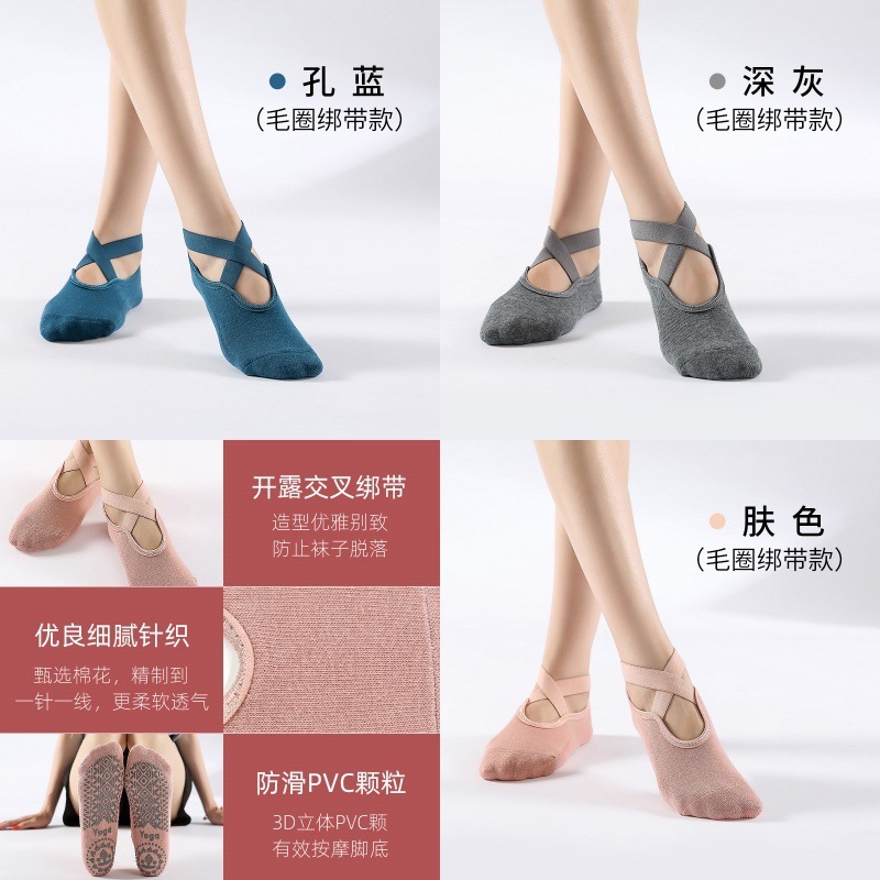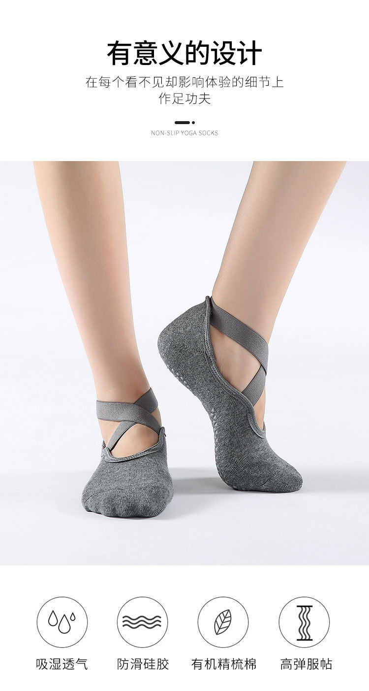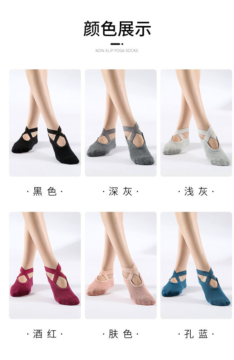 수건 바닥 크로스 스트랩 요가 양말 전문 미끄럼 방지 실리콘 사운드 흡수 땀 흡수 피트니스 요가 보트 양말 필라테스 WE스토어 가기