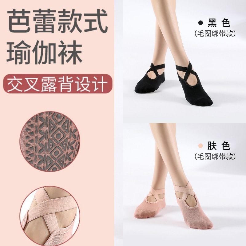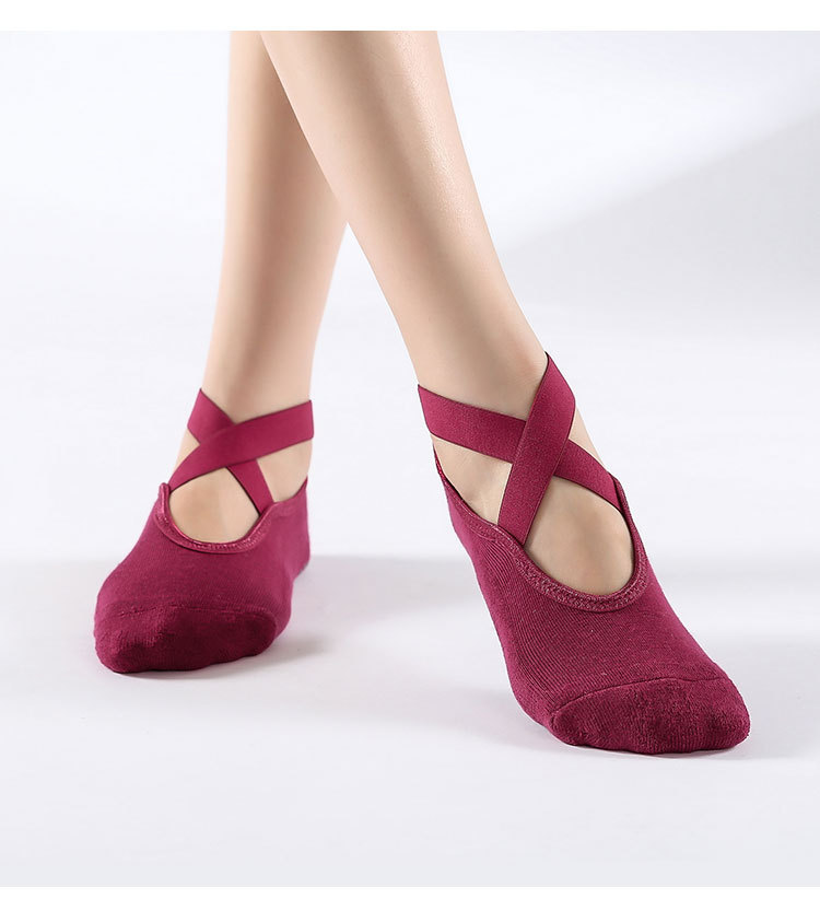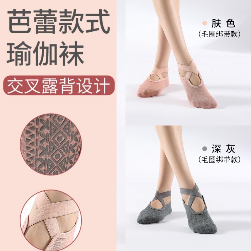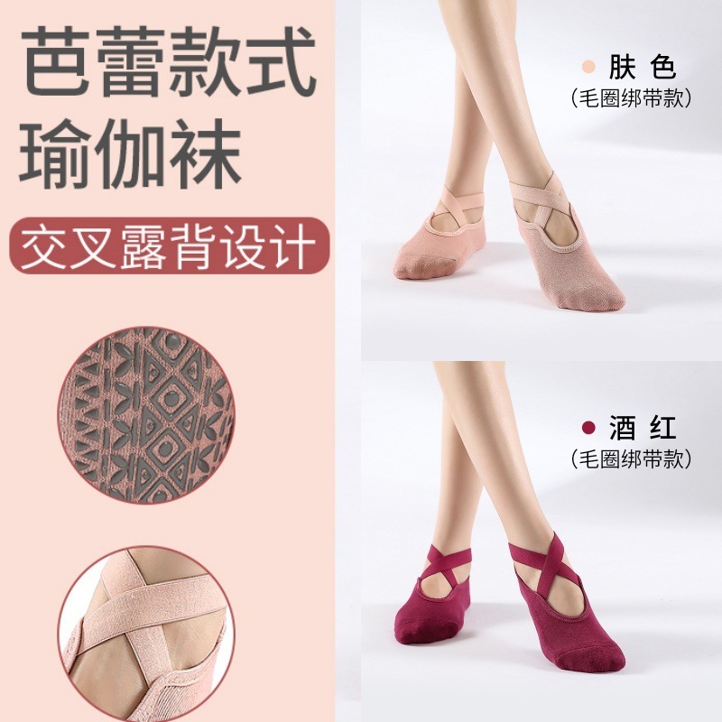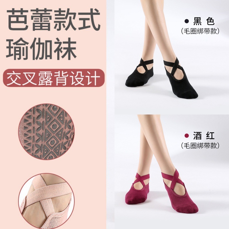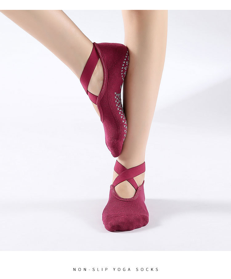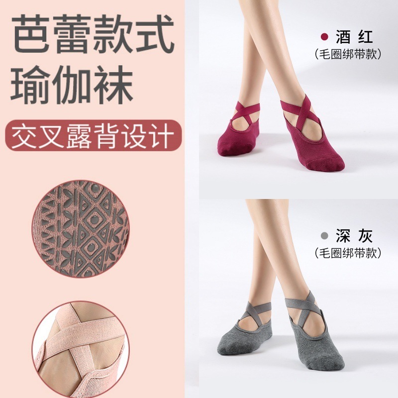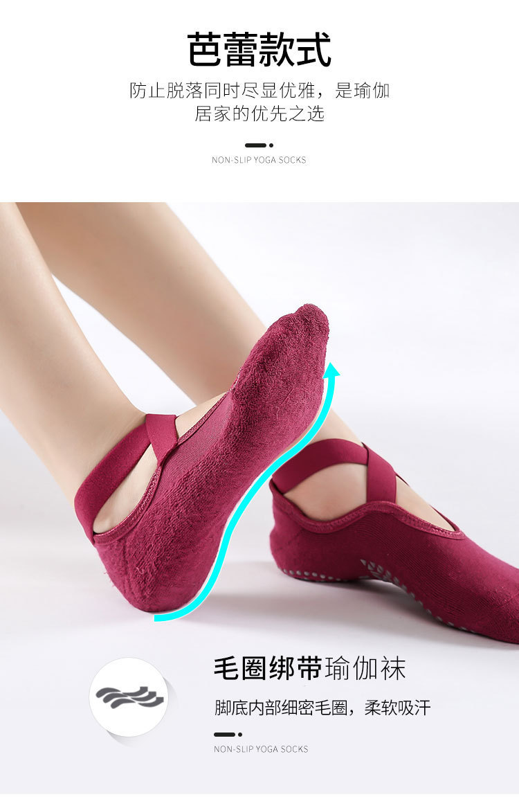 수건 바닥 크로스 스트랩 요가 양말 전문 미끄럼 방지 실리콘 사운드 흡수 땀 흡수 피트니스 요가 보트 양말 필라테스 WE스토어 가기