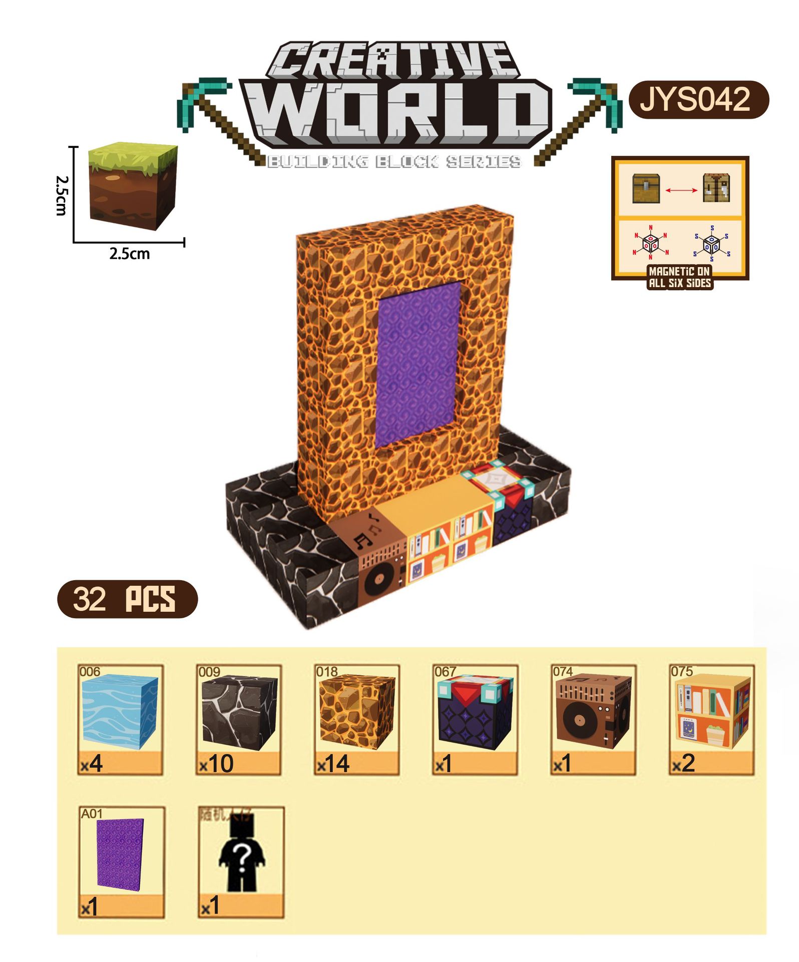 국경 간 Douyin 인기있는 자기 건물 블록 2.5CM 시리즈 아기 가정 학습 도우미 자기 교육 인식스토어 가기