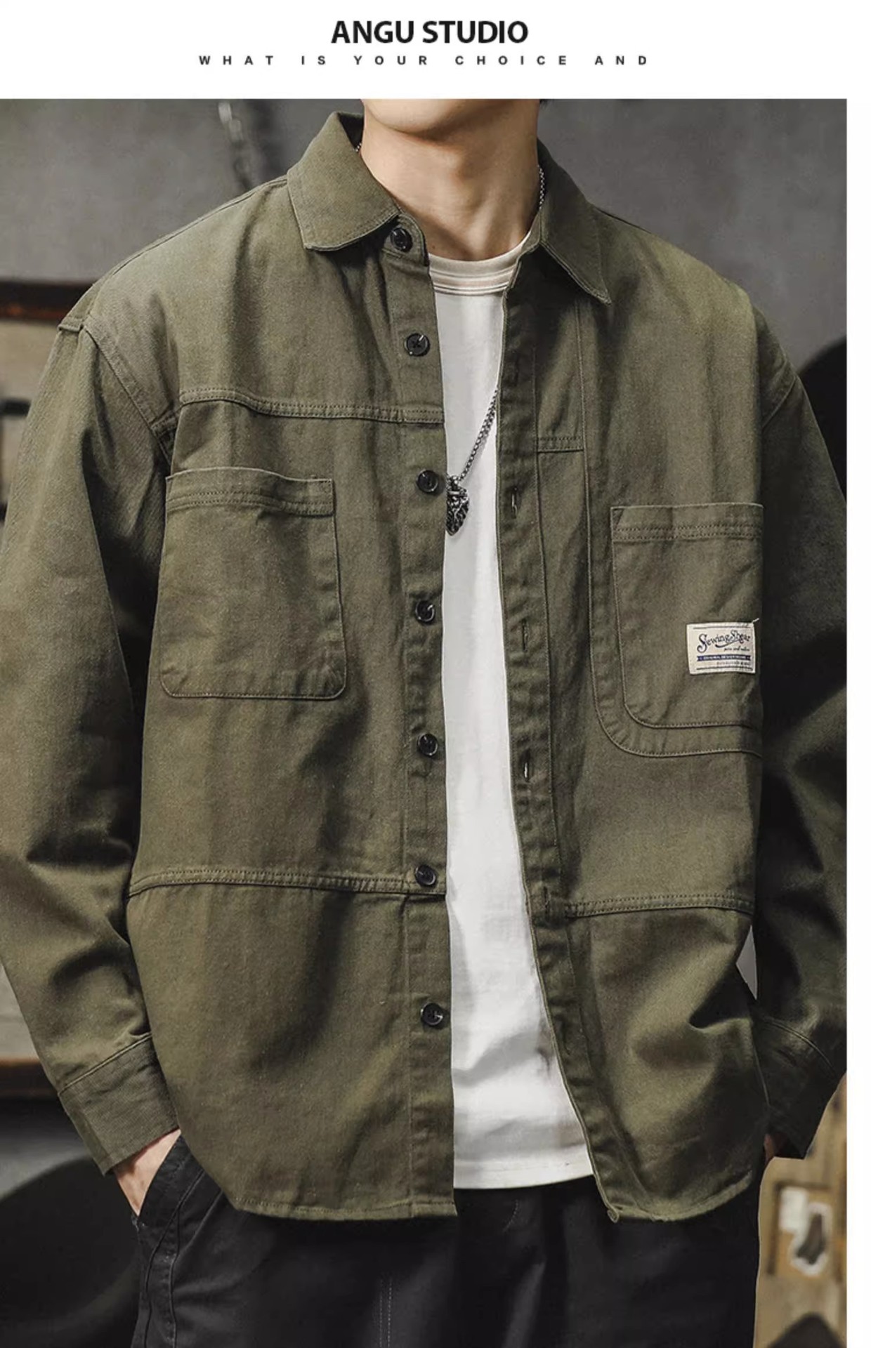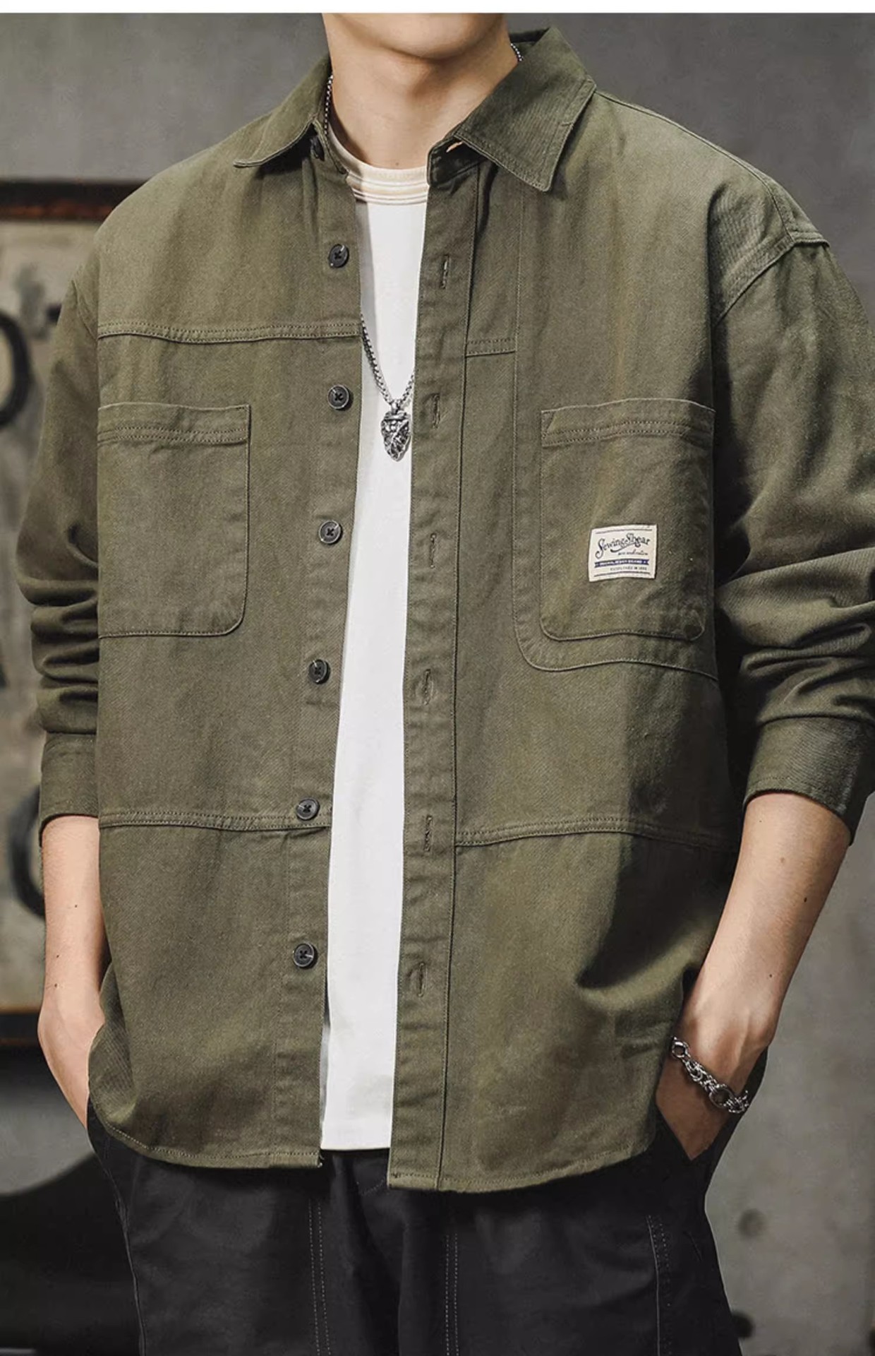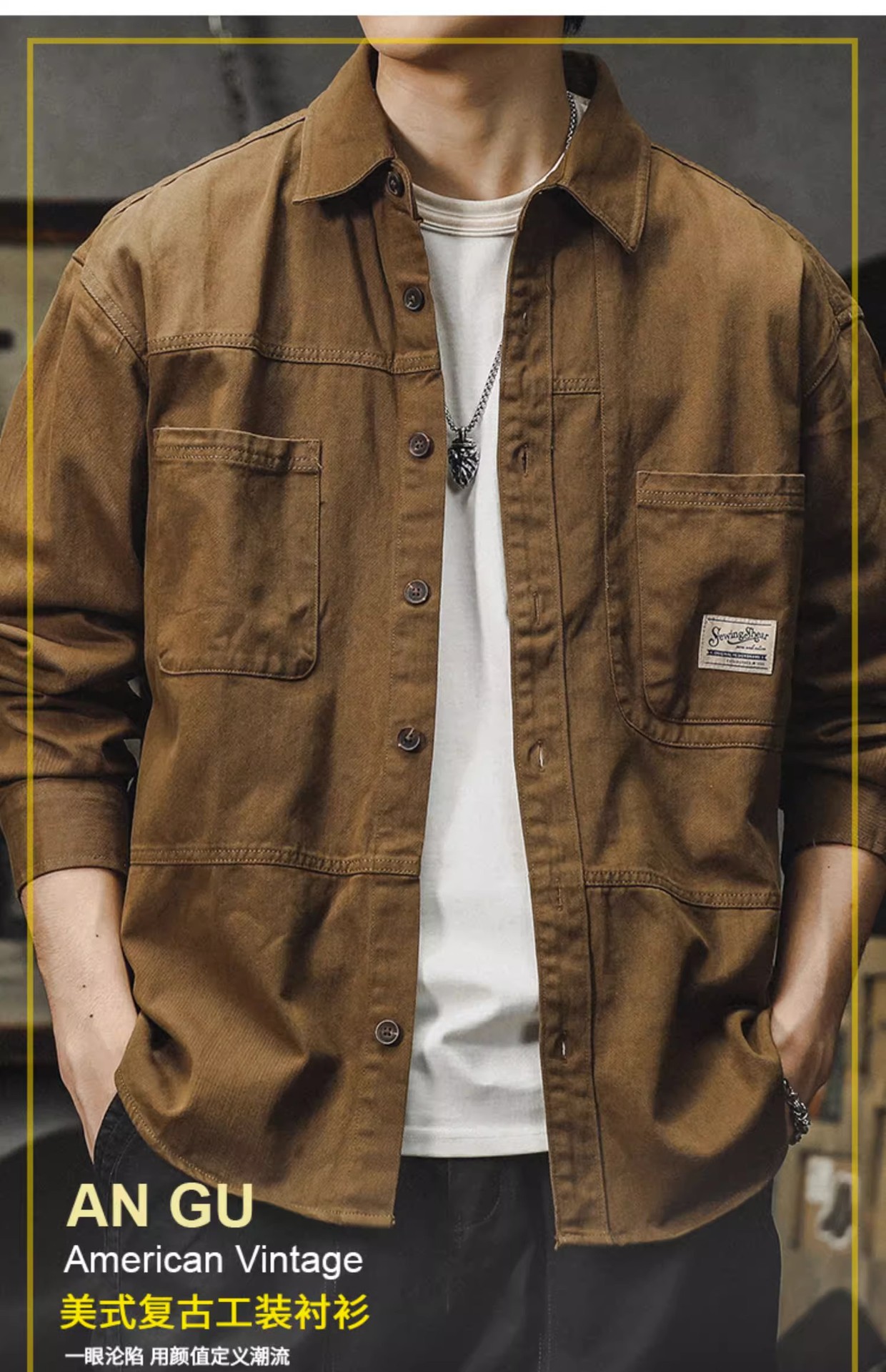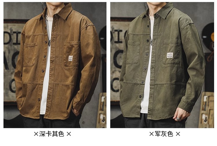 아메리칸 스타일 툴링 셔츠 남자의 2024 봄과 가을 새로운 느슨한 얇은 코트 일본 스타일 레트로 캐주얼 긴 소매 셔츠스토어 가기