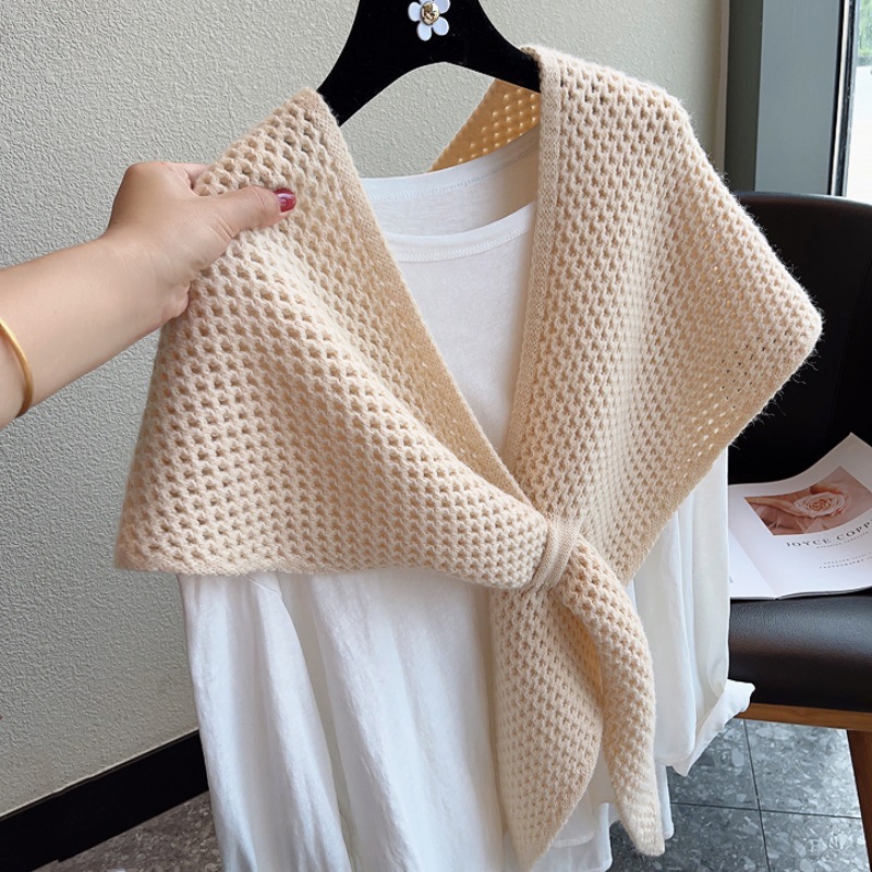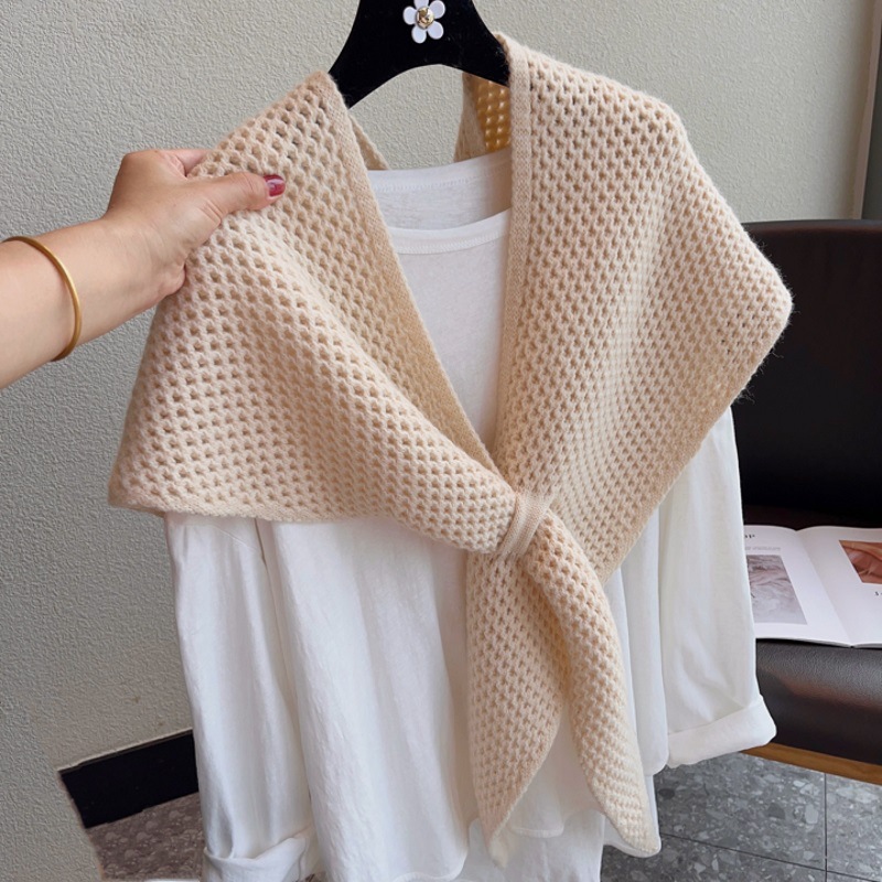 가을과 겨울 새로운 올 매치 양모 혼합 중공 삼각형 목도리 여성의 따뜻한 방한 솔리드 컬러 니트 스카프