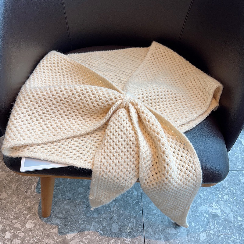 出口韩国原单羊毛混纺镂空针织三角围巾护颈保暖空调房大披肩秋冬