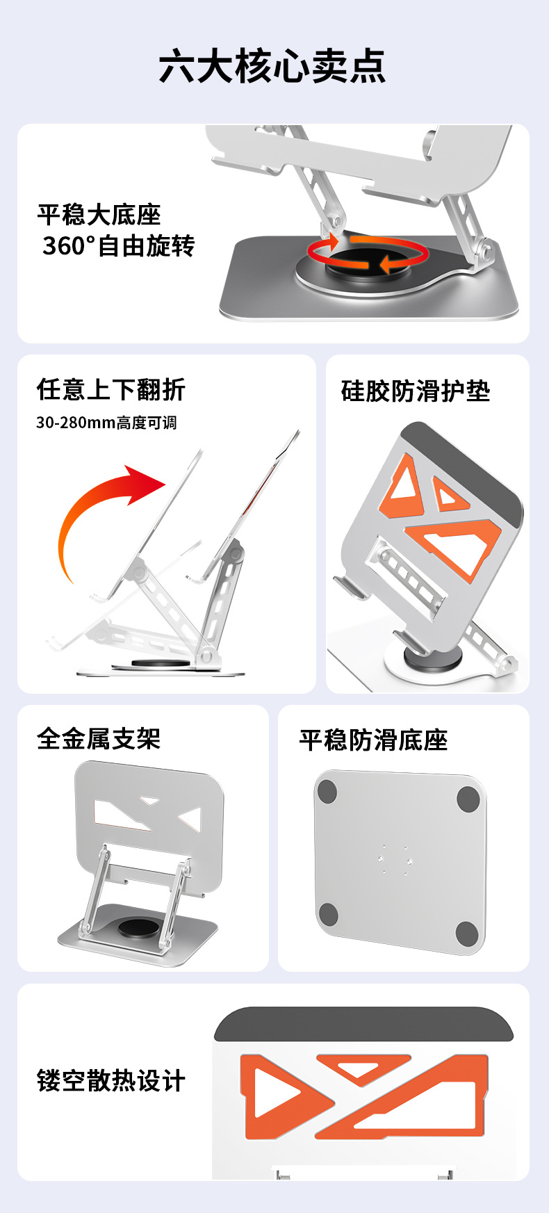 새로운 범용 태블릿 스탠드 16inch 회전식 대형 높이 조절형 냉각 금속 노트북 데스크탑