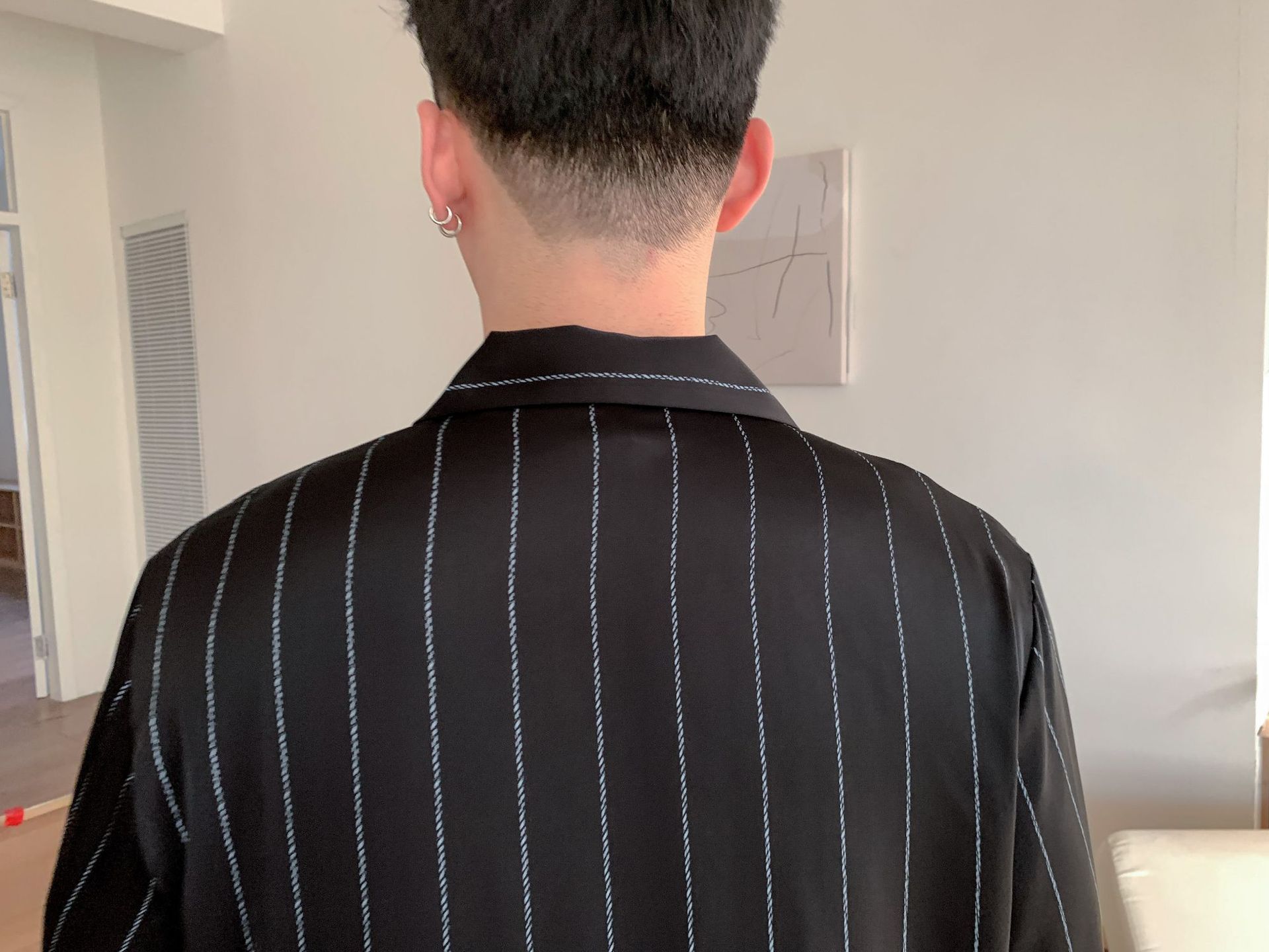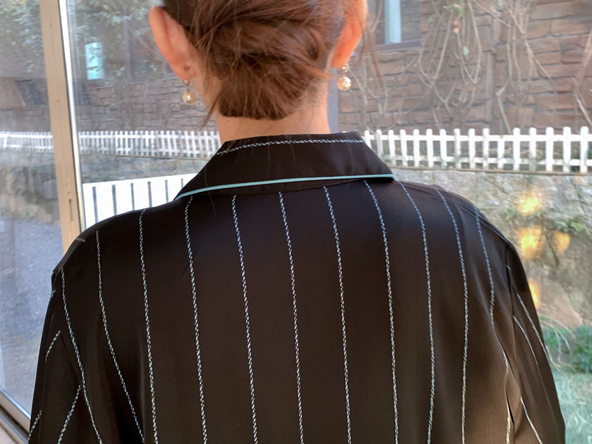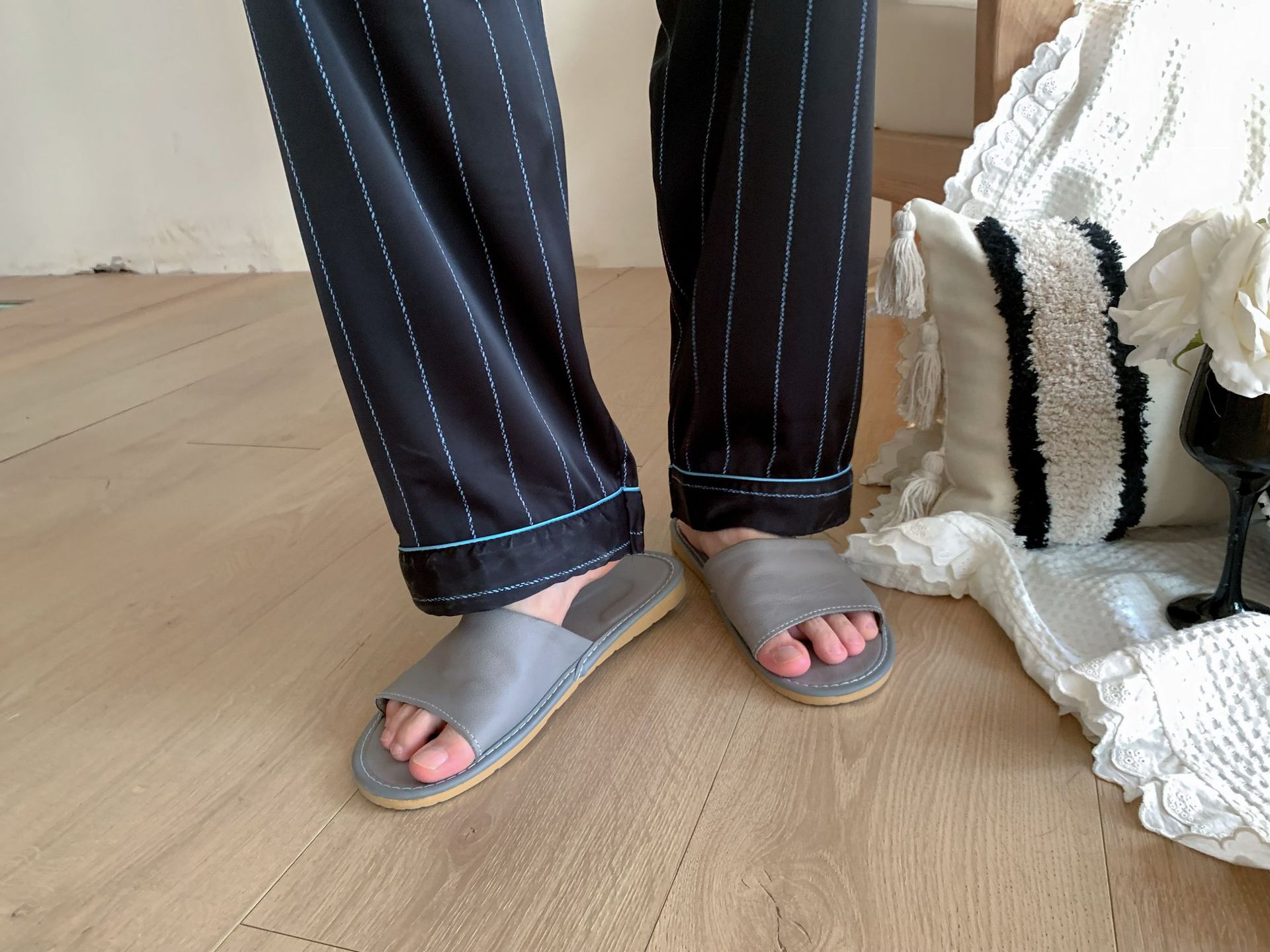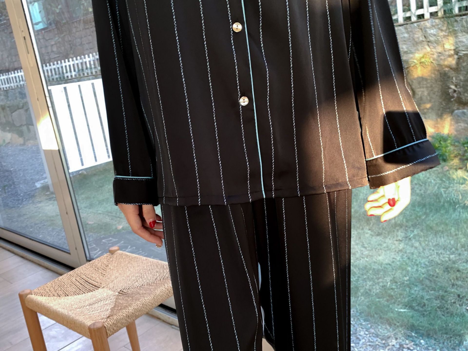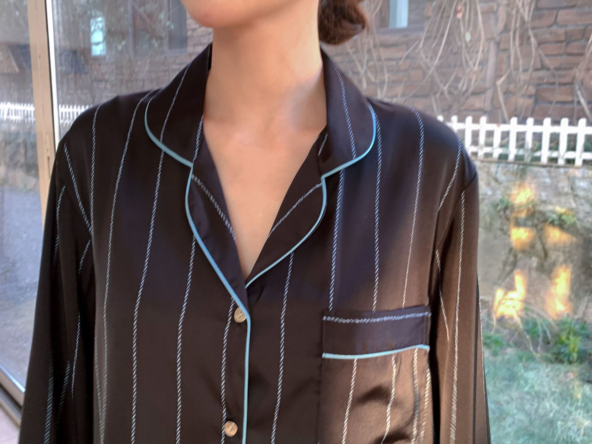 2026년 신상 아이스 실크 커플 스트라이프 블루 라펠 얇은 스타일 외출 가능 남성 고급 캐주얼 여성 홈웨어 세트스토어 가기