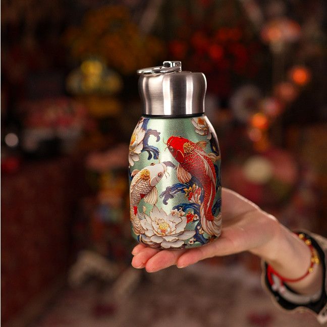 새로운 Xiaopang Ding 보온병 컵 레트로 Guofeng Koi 워터 컵 휴대용 창조적 인 316 높은 색 가치 절연 컵스토어 가기