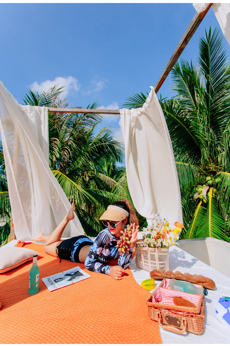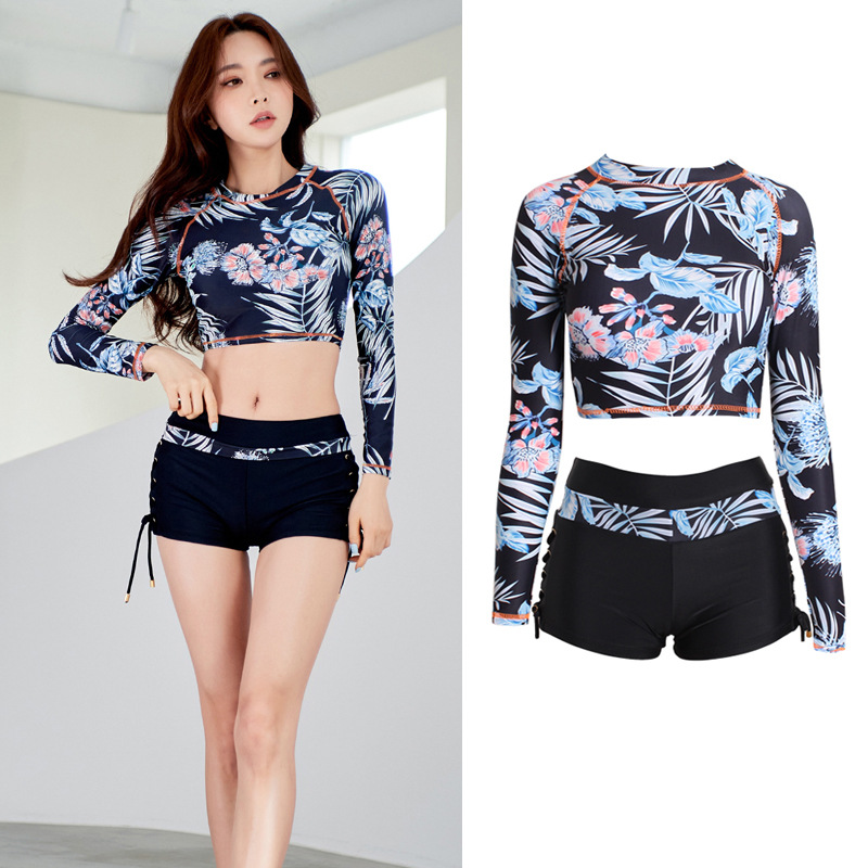 긴팔 보수적 인 분할 수영복 여성의 여름 2025 년 새로운 온천 고기 뒤덮인 슬리밍 배꼽 학생 투피스 세트 하이 엔드 센스스토어 가기