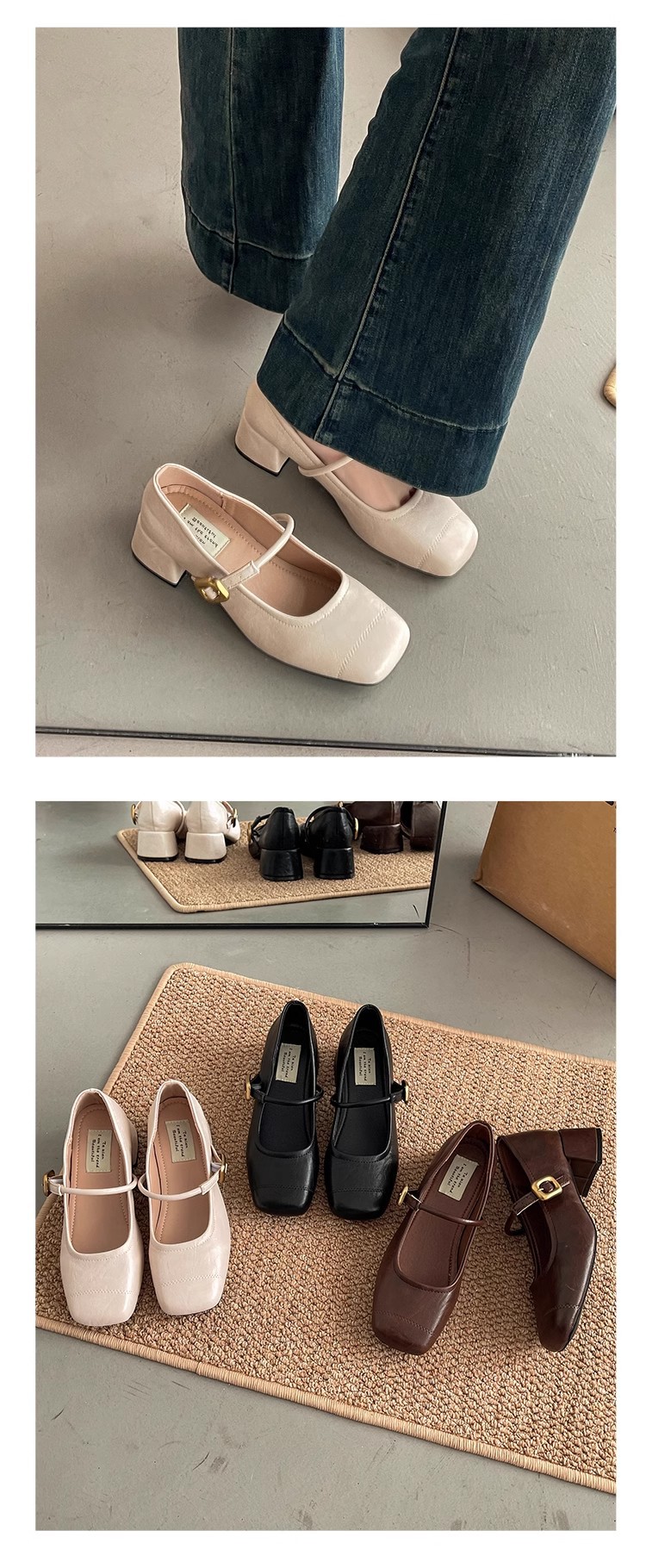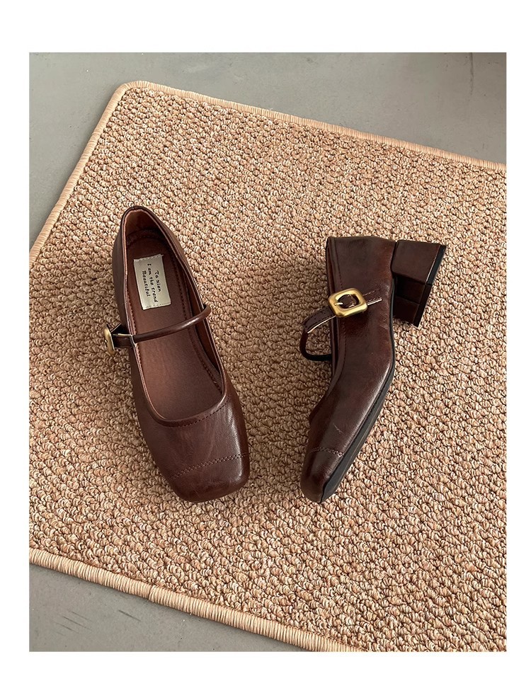 프랑스 레트로 메리 제인 신발 여성의 2025 봄 새로운 얕은 광장 발가락 두꺼운 중반 스커트 셔츠 입 싱글 신발스토어 가기