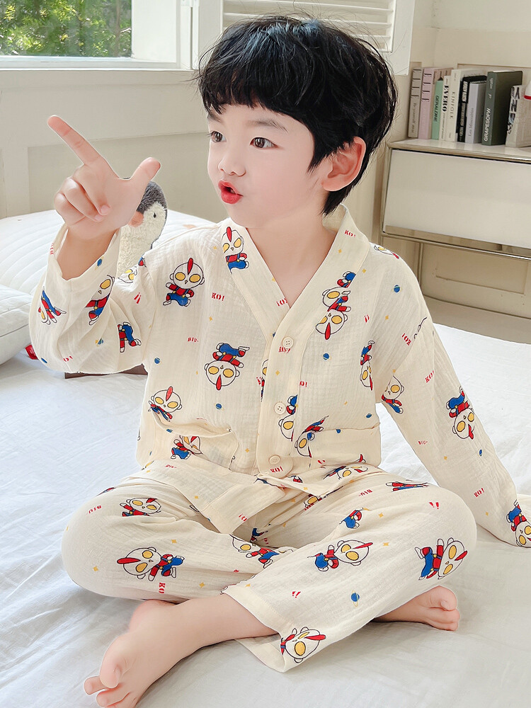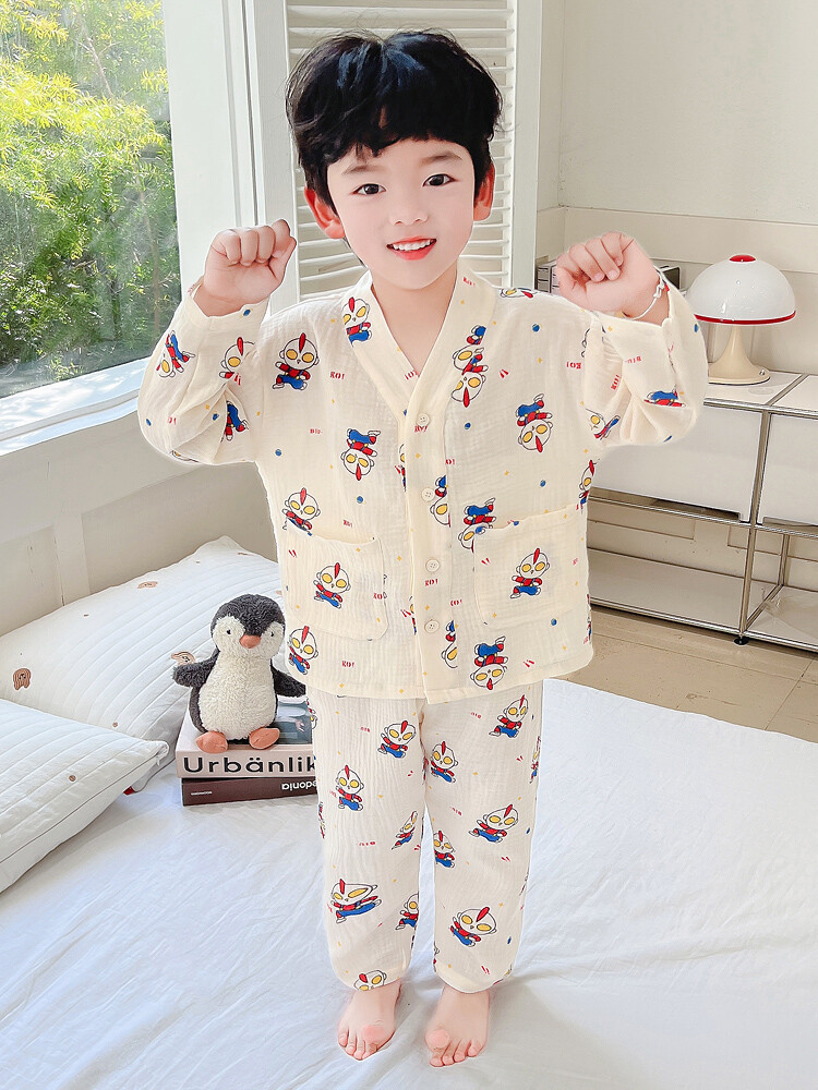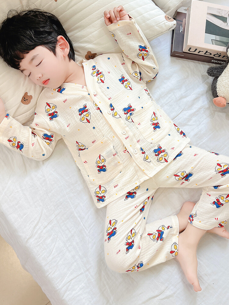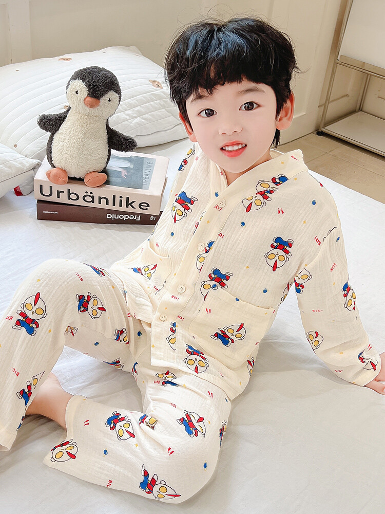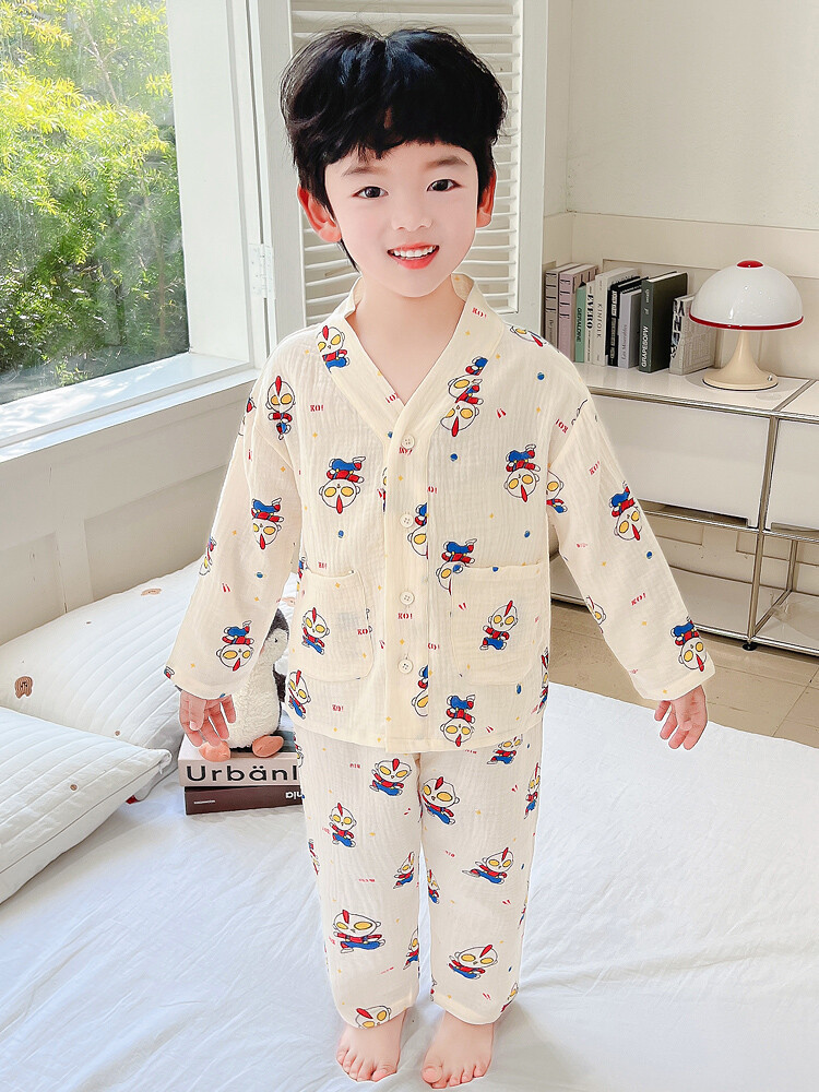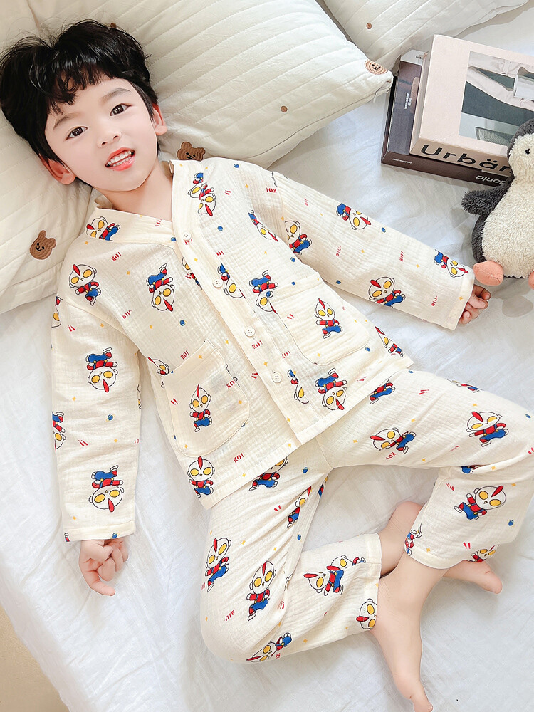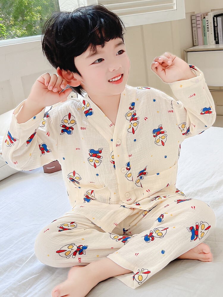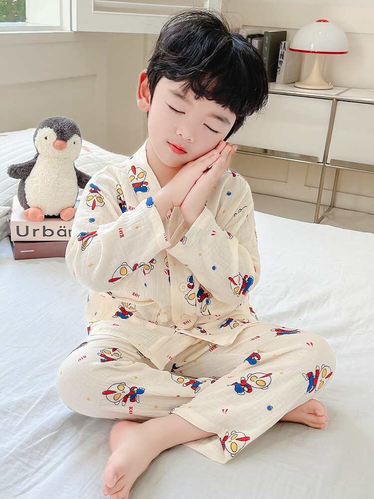 소년 잠옷 봄과 가을 2025 새로운 긴 소매 얇은 면화 천 어린이 소년 집 옷 아이들의 아기