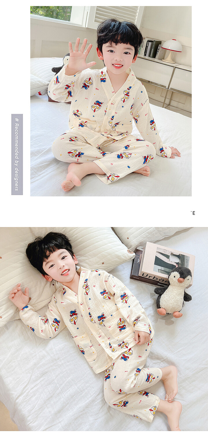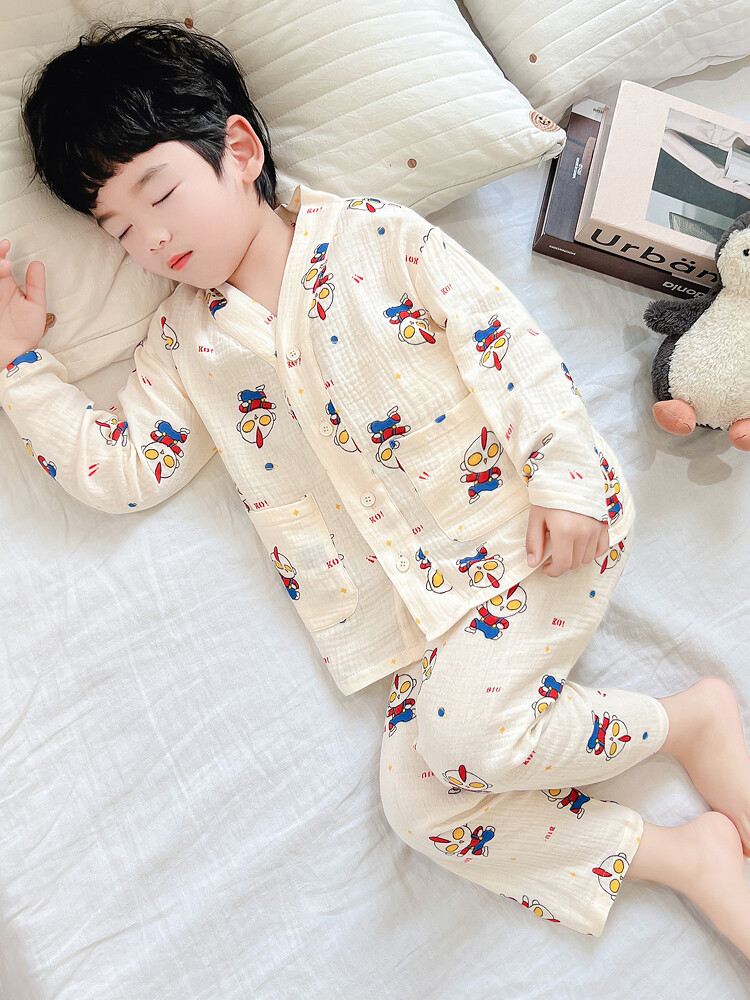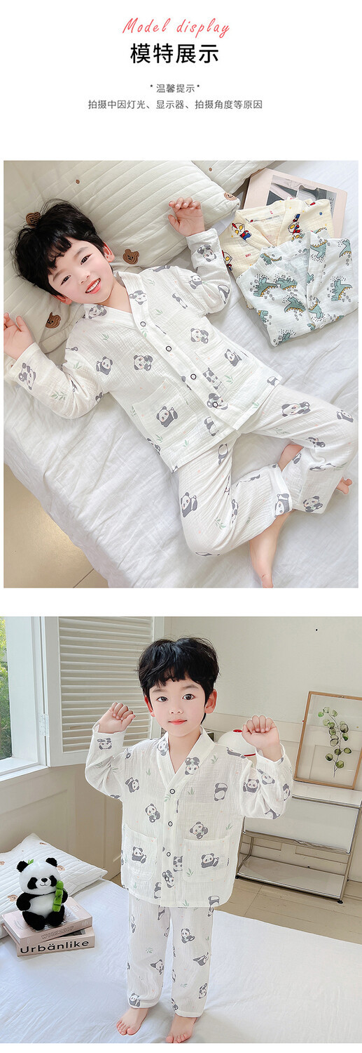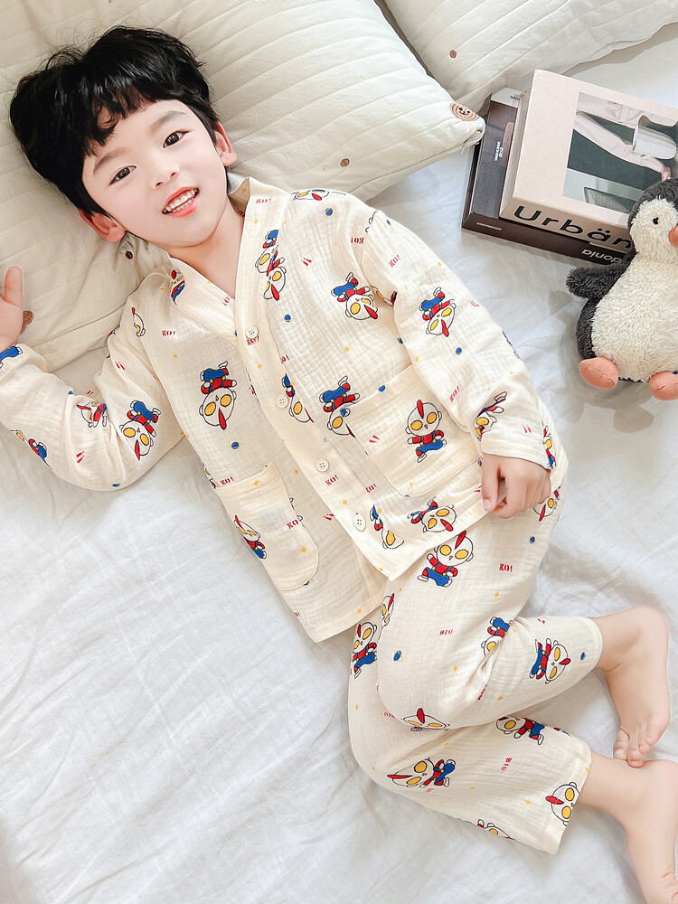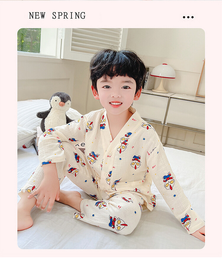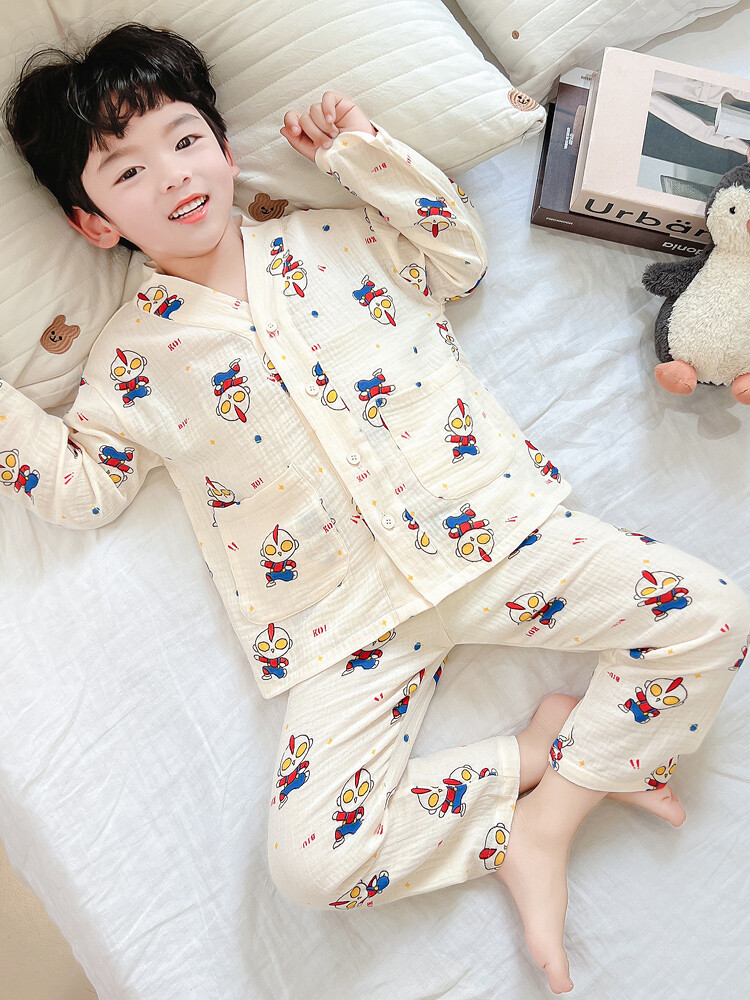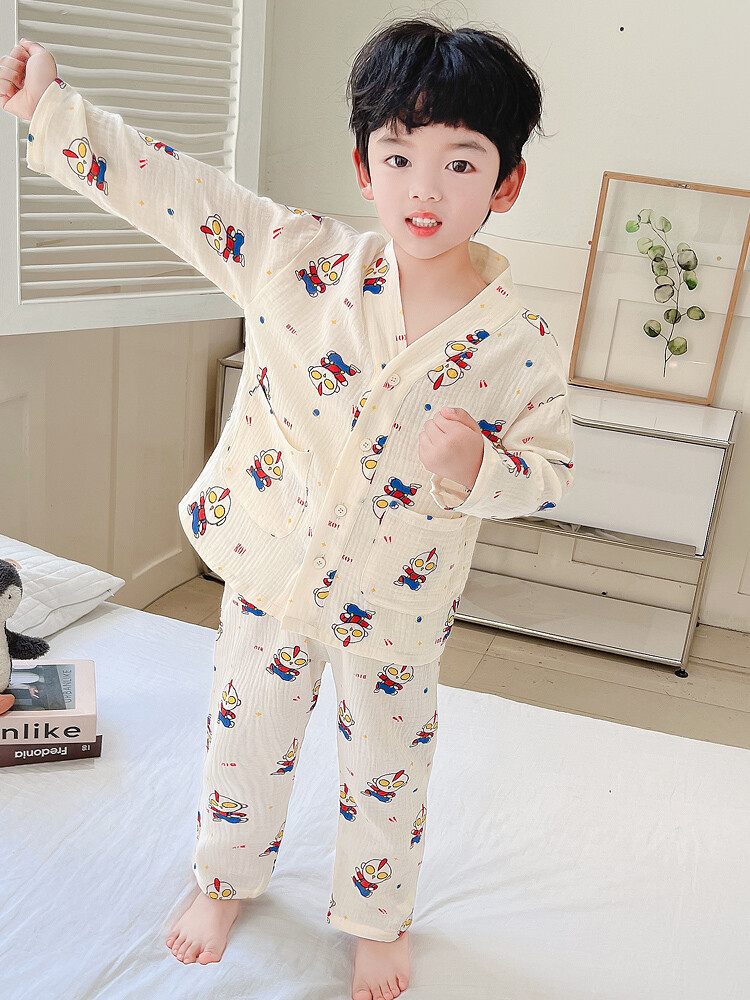 소년 잠옷 봄과 가을 2025 새로운 긴 소매 얇은 면화 천 어린이 소년 집 옷 아이들의 아기