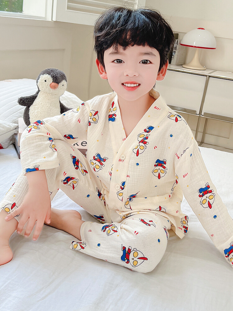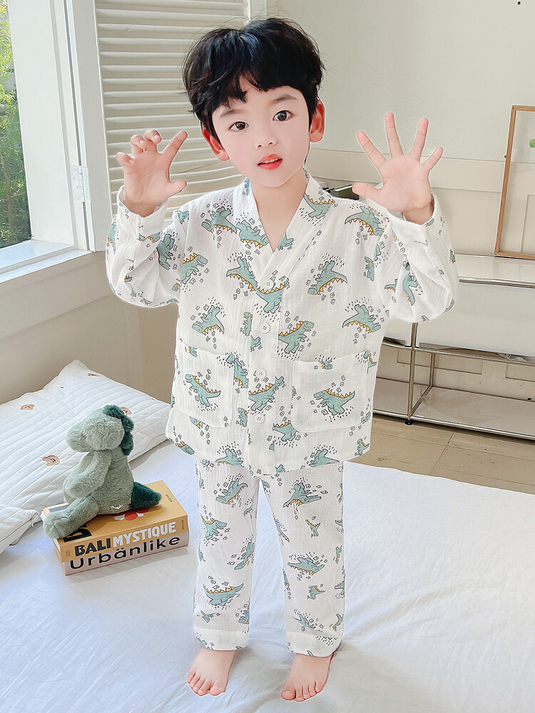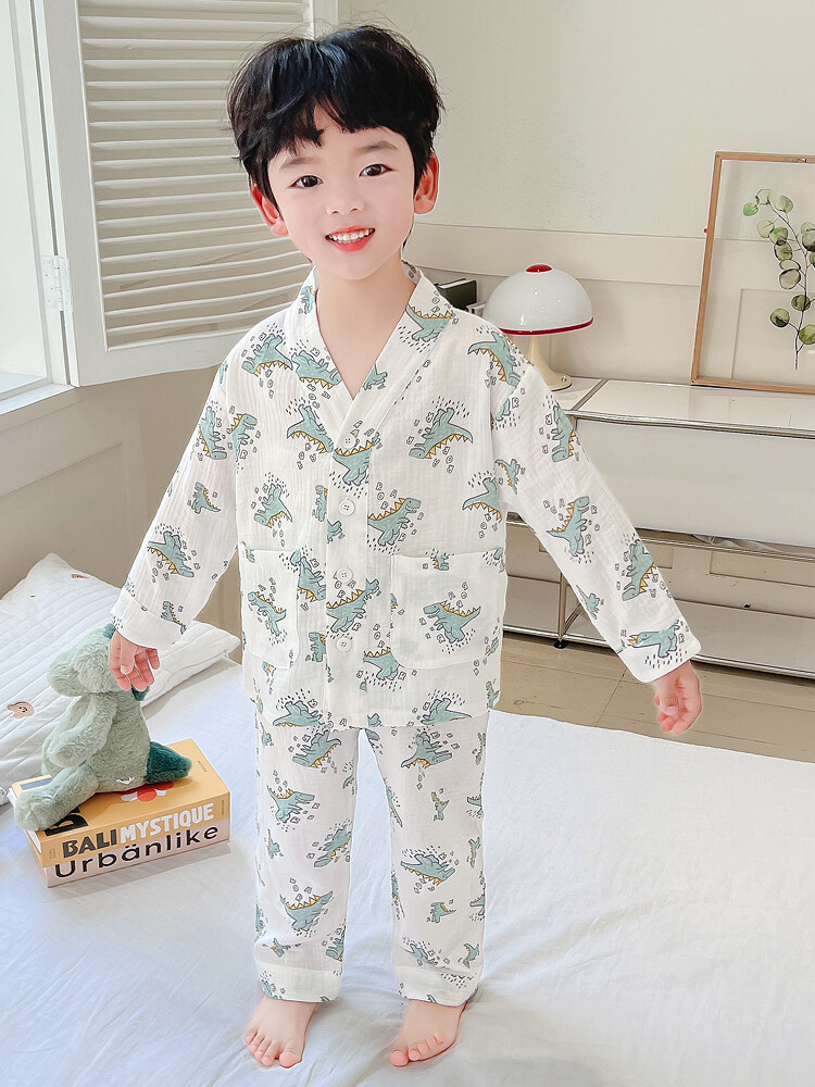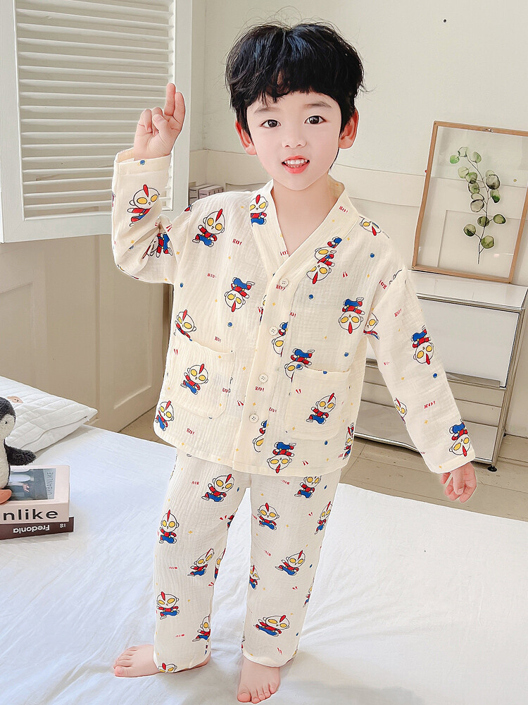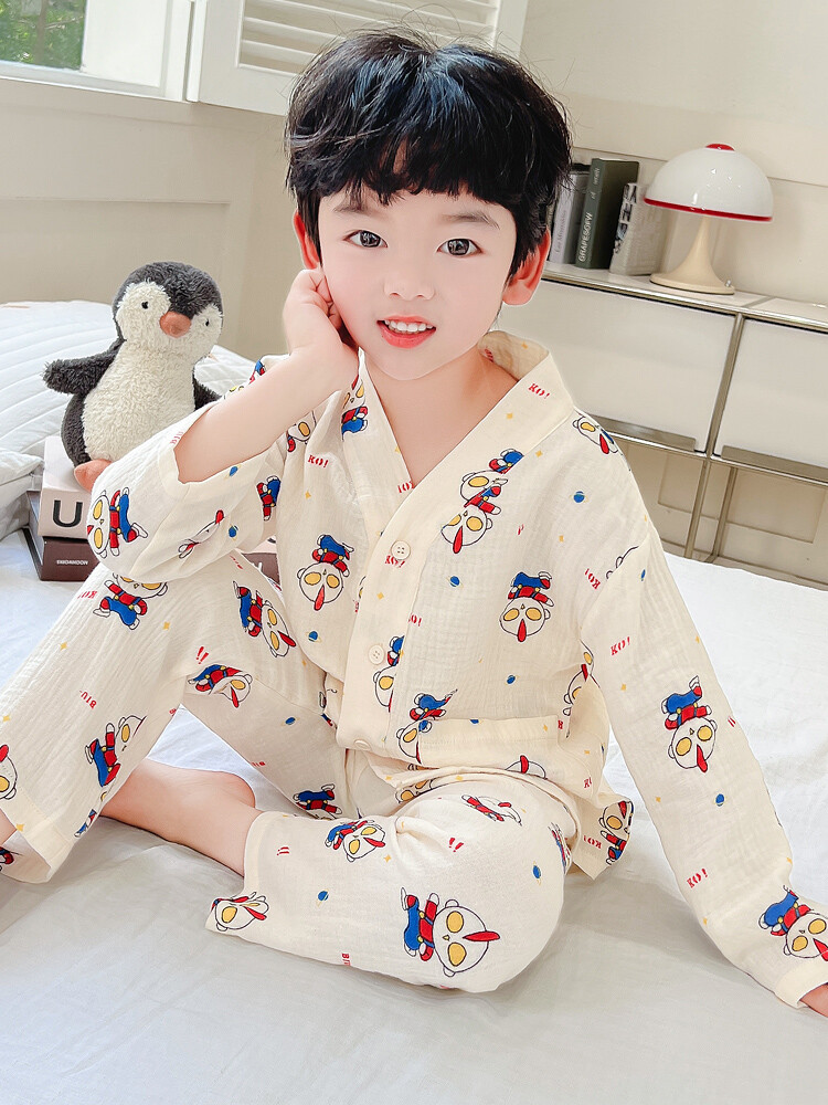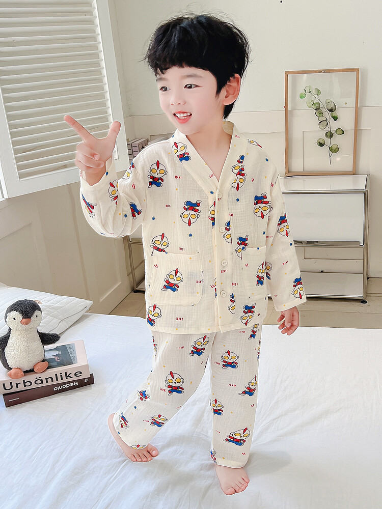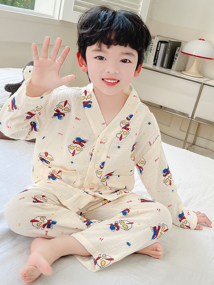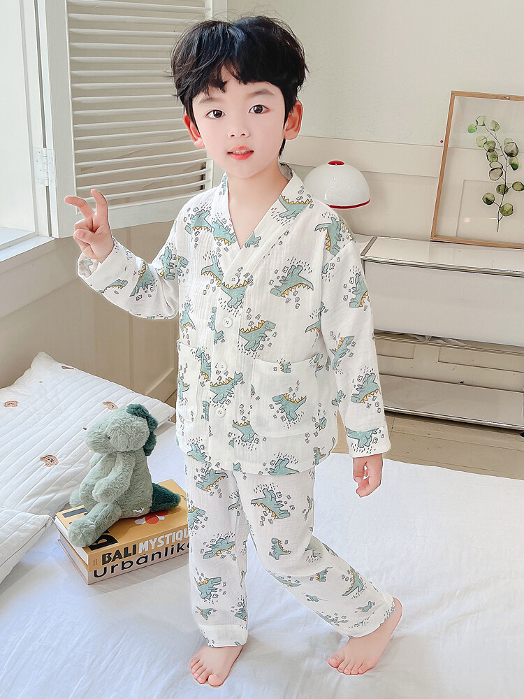 소년 잠옷 봄과 가을 2025 새로운 긴 소매 얇은 면화 천 어린이 소년 집 옷 아이들의 아기