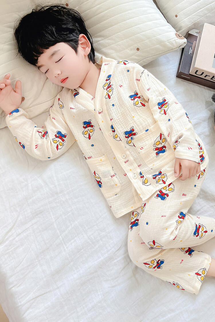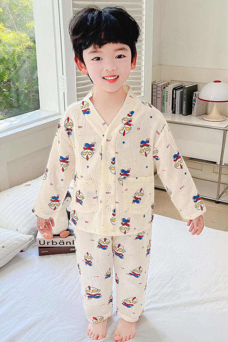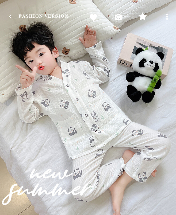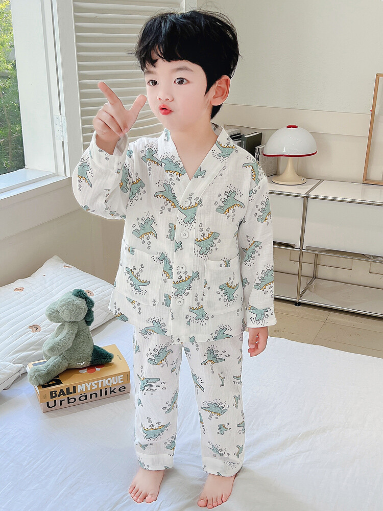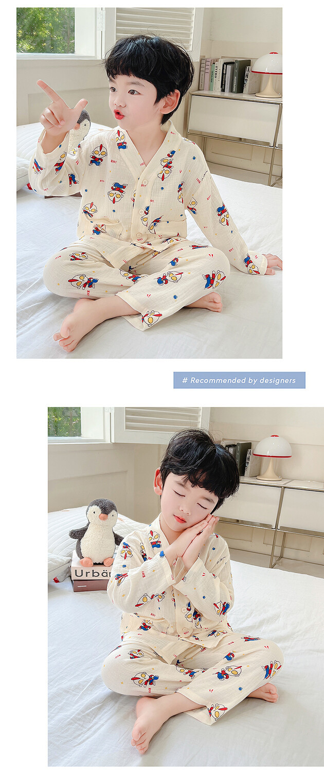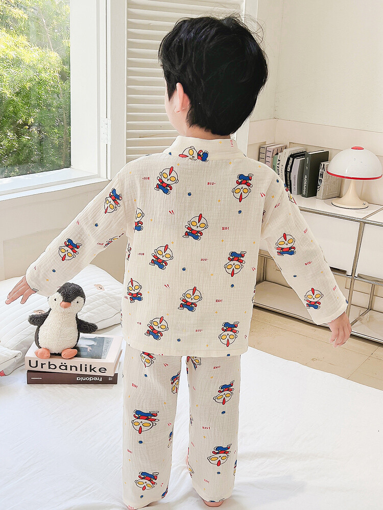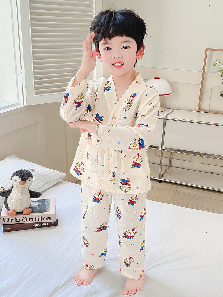 소년 잠옷 봄과 가을 2025 새로운 긴 소매 얇은 면화 천 어린이 소년 집 옷 아이들의 아기