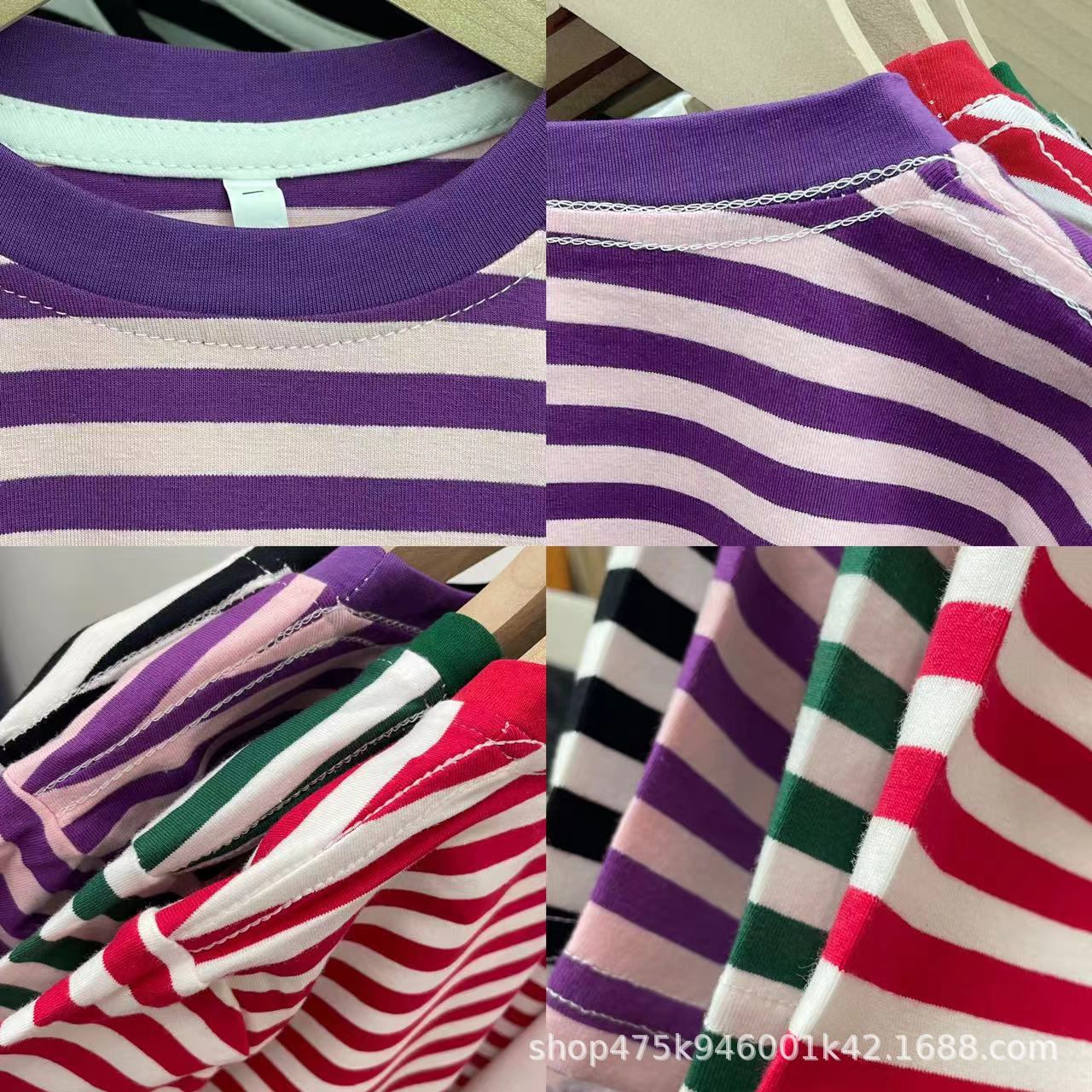 국경 간 소녀의 만화 키티 고양이 줄무늬 반팔 탑 코튼 여름 원피스 소녀의 얇은 티셔츠 아동베이스 셔츠