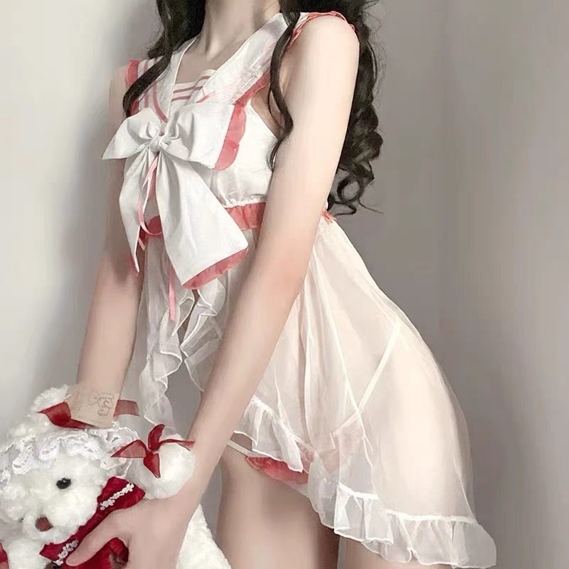 섹시한 란제리 섹시한 달콤한 귀여운 소녀의 거즈 스커트 관점 메쉬 슬링 활 분할 무료 이륙 유니폼
