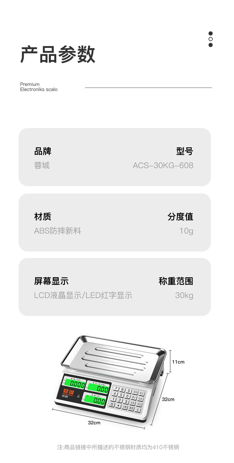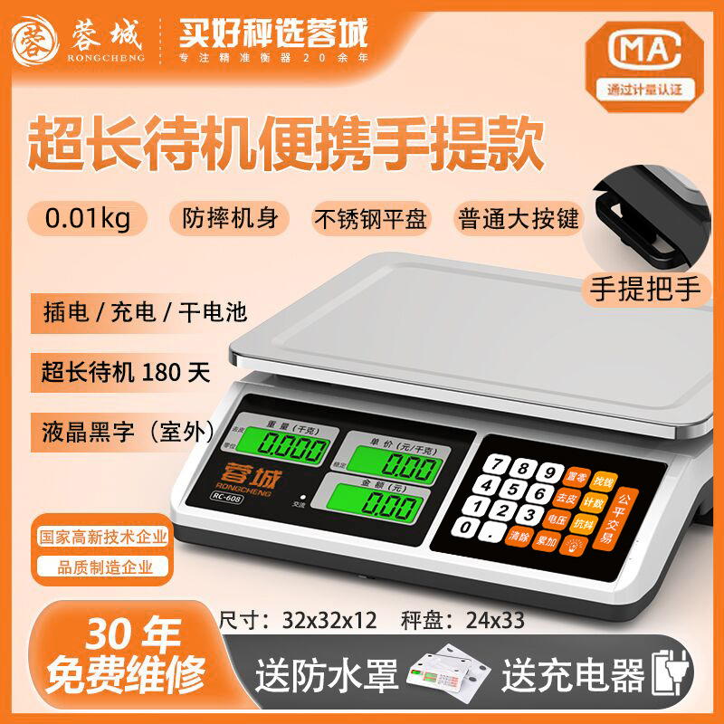30kg 전자 규모 비즈니스 상업 판매 야채 실속 휴대용 작은 정품 표준 도매 양면 디스플레이