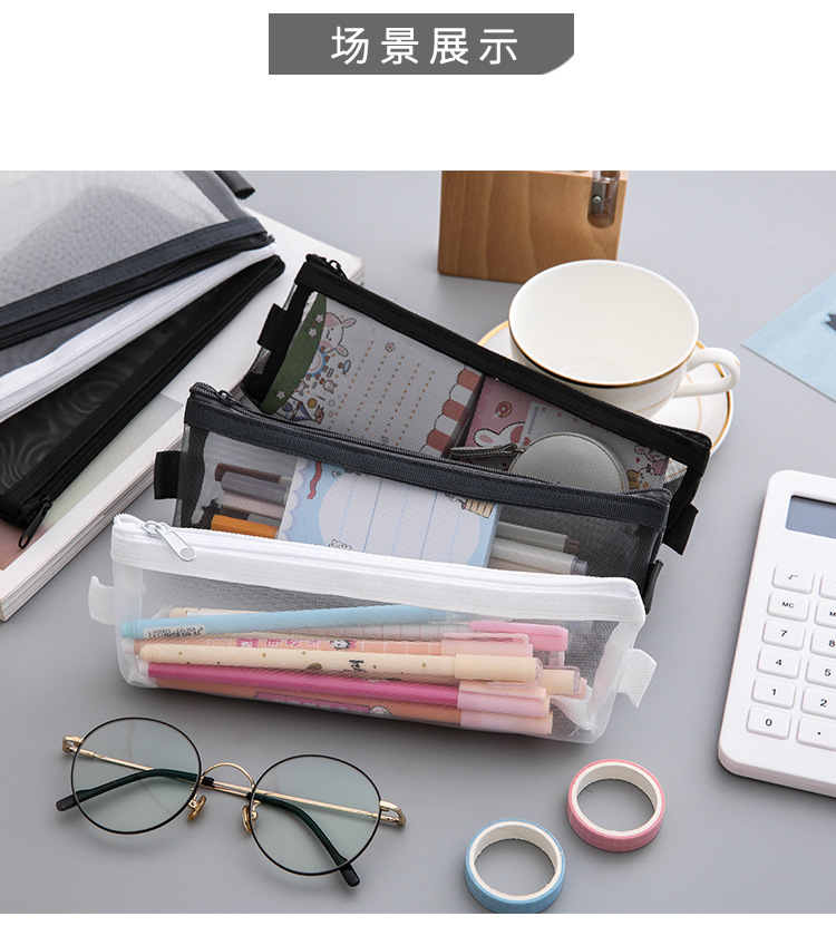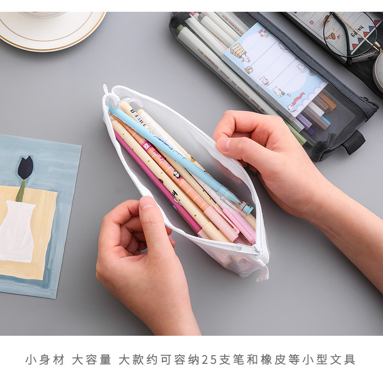 심플한 메쉬 필통 학생용 대용량 수납 필통 어린이 명절 상품 문구 선물스토어 가기