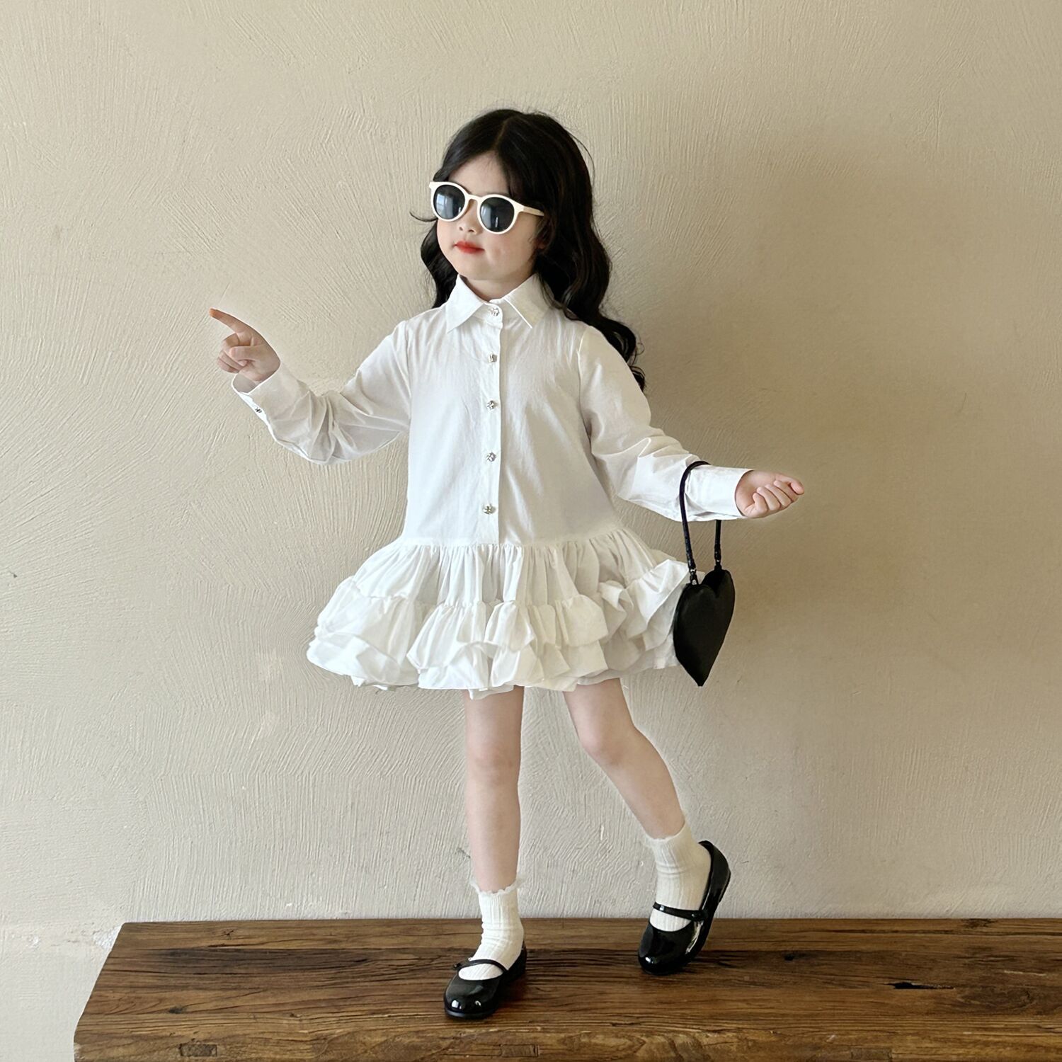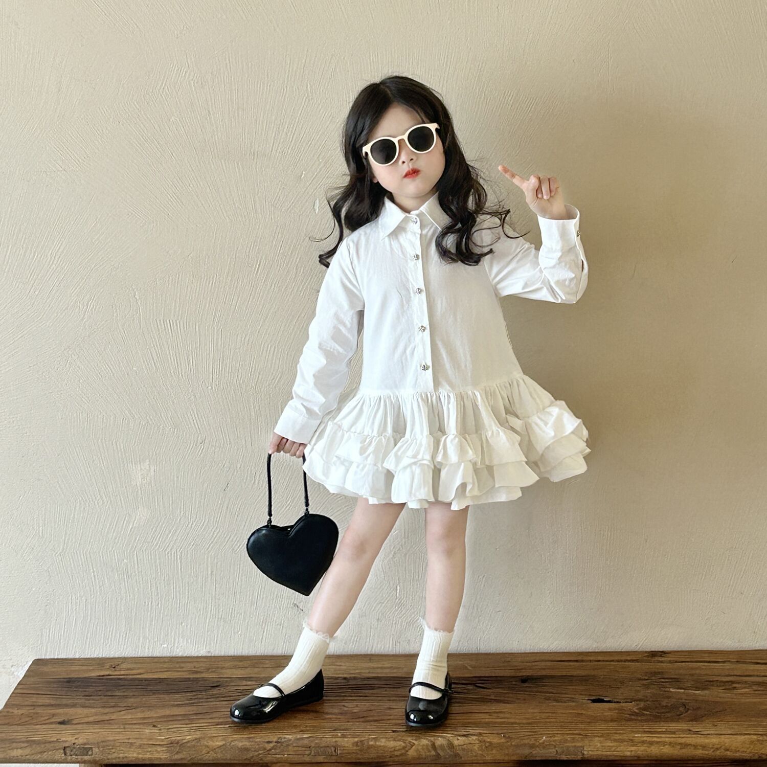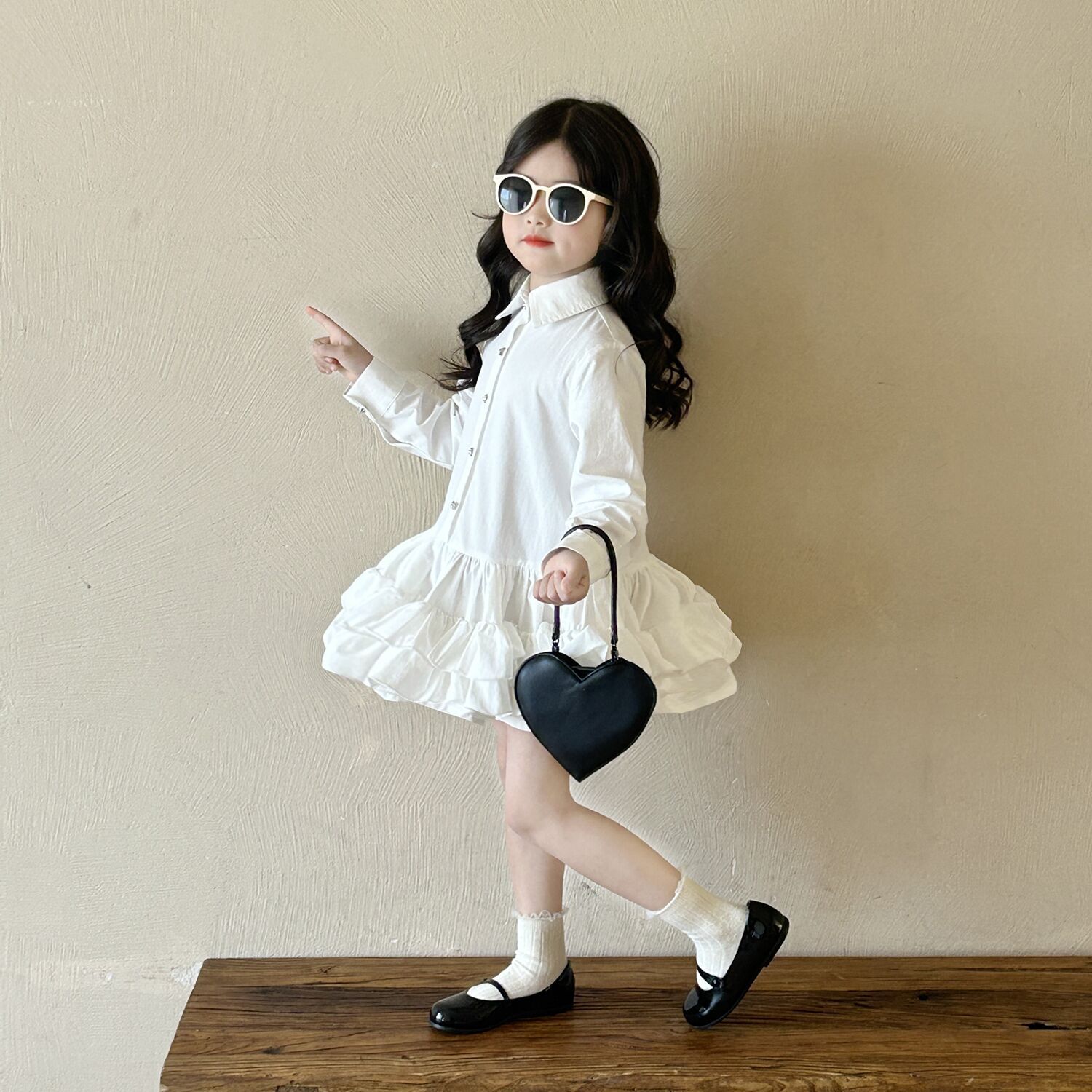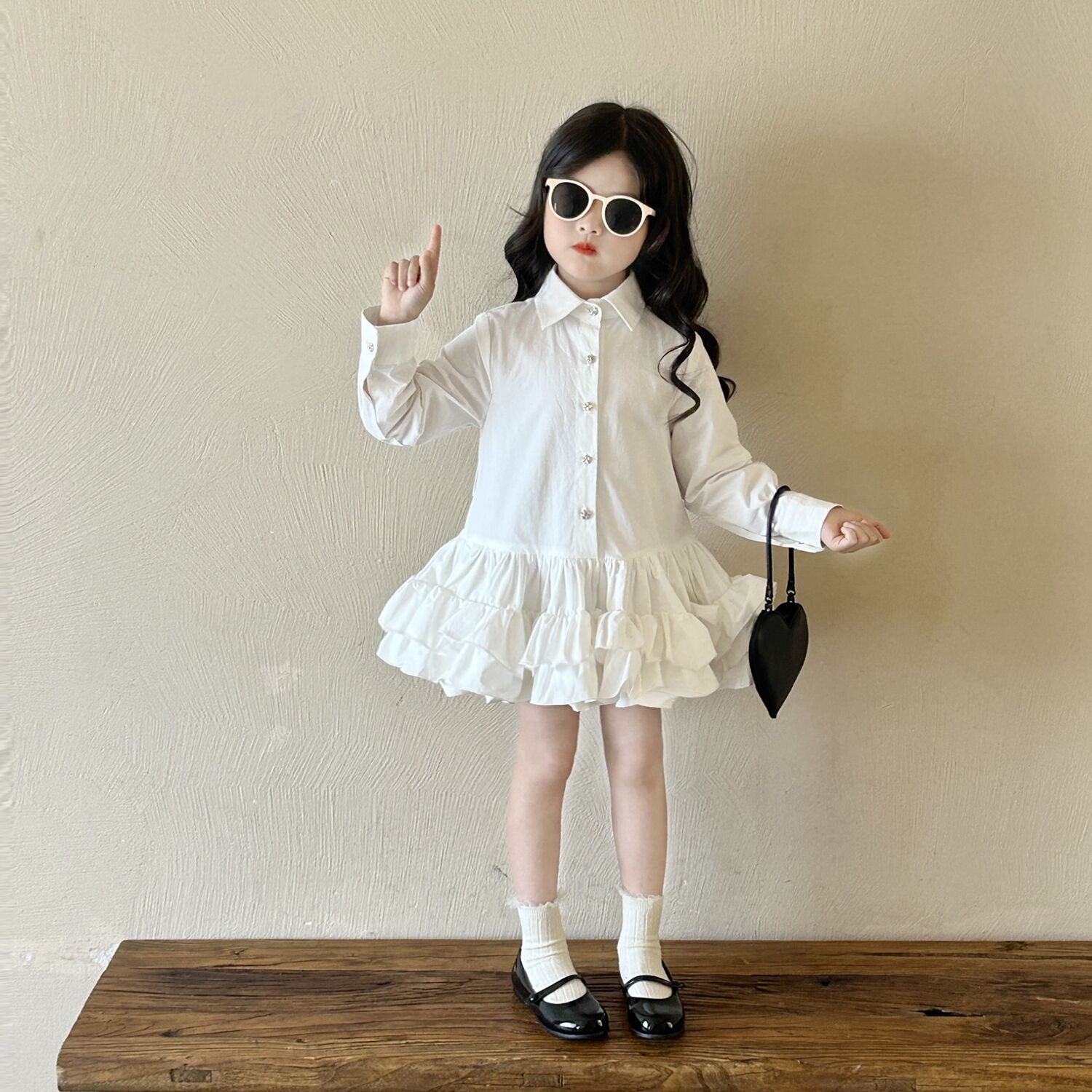 • 화이트 레이스 셔츠 드레스