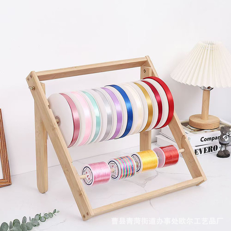 난주 솔리드 우드 리본 랙 양모 스토리지 랙 스크롤 랙 홈 DIY 수제 리본 랙 디스플레이 랙