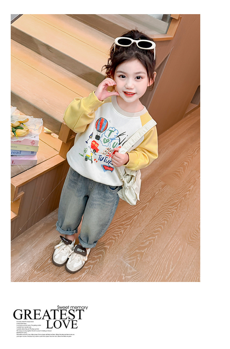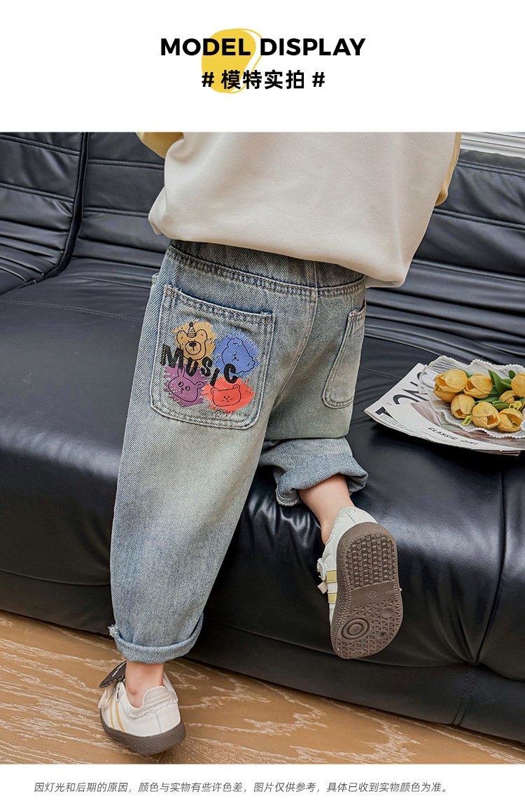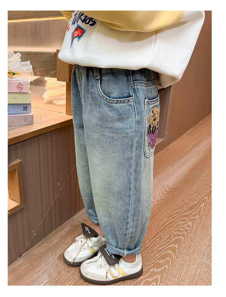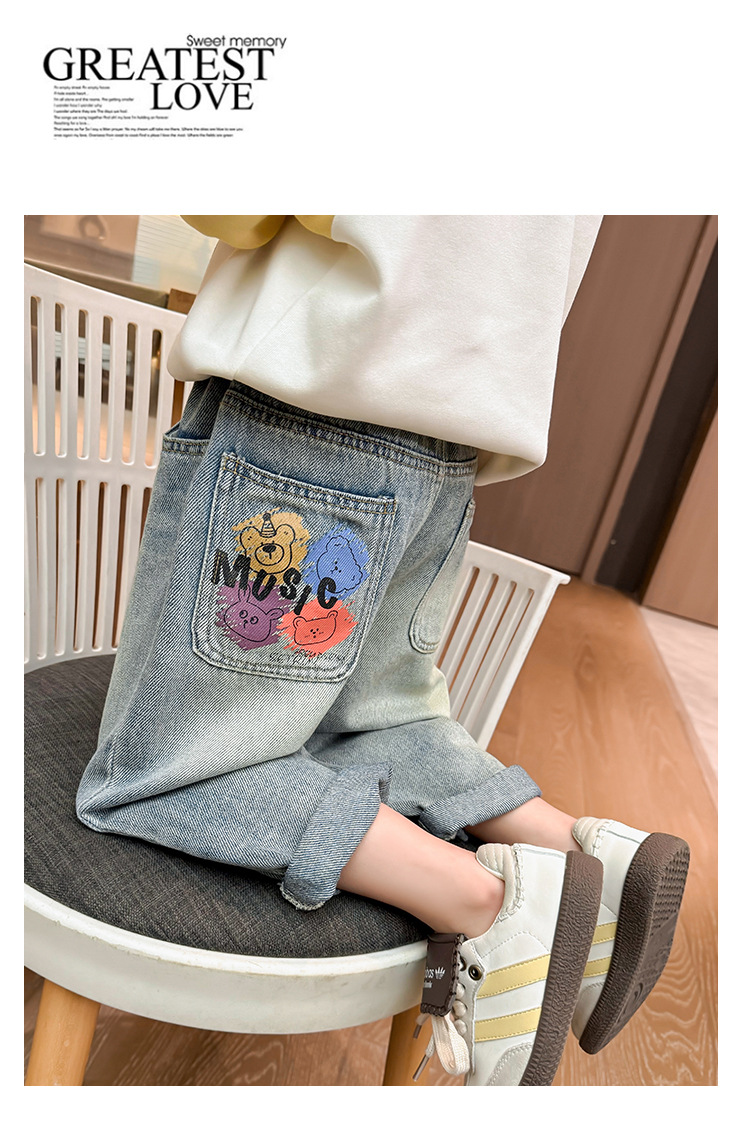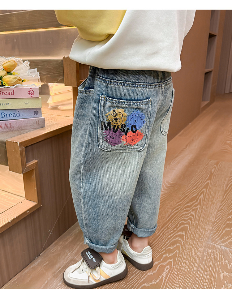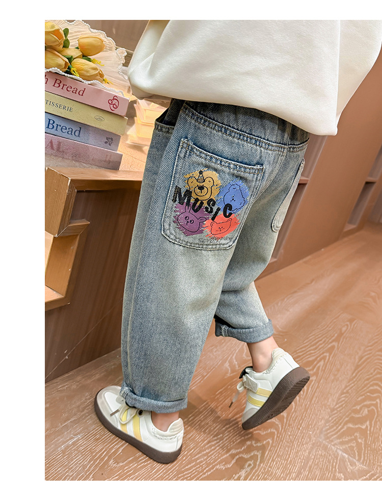 소녀 낙서 곰 머리 바지 봄과 가을 2025 새로운 패션 어린 소녀 만화 인쇄 바지스토어 가기
