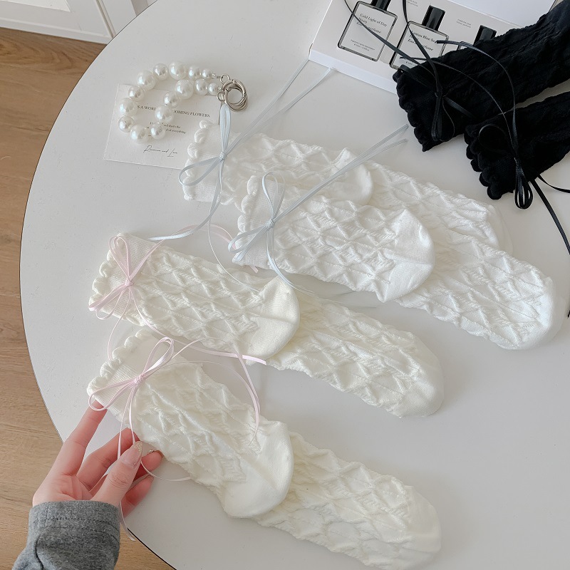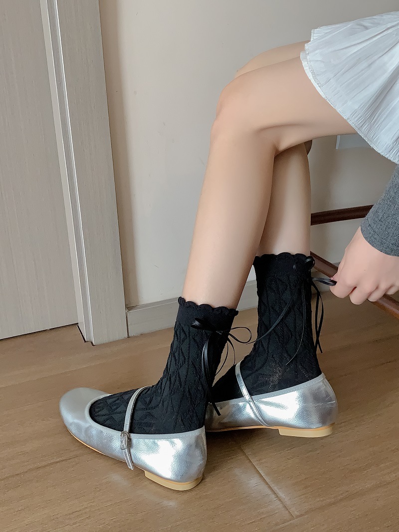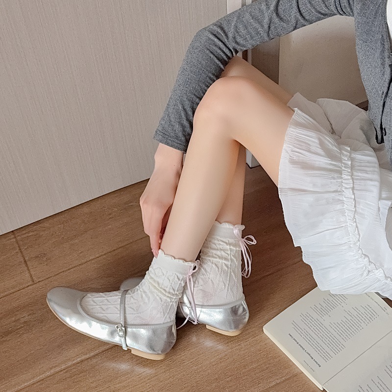 양말 여성용 흰색 미드 튜브 양말 bowknot 여름 양말 양말 얇은 발레 스타일 miu 매칭 작은 가죽 신발 양말스토어 가기