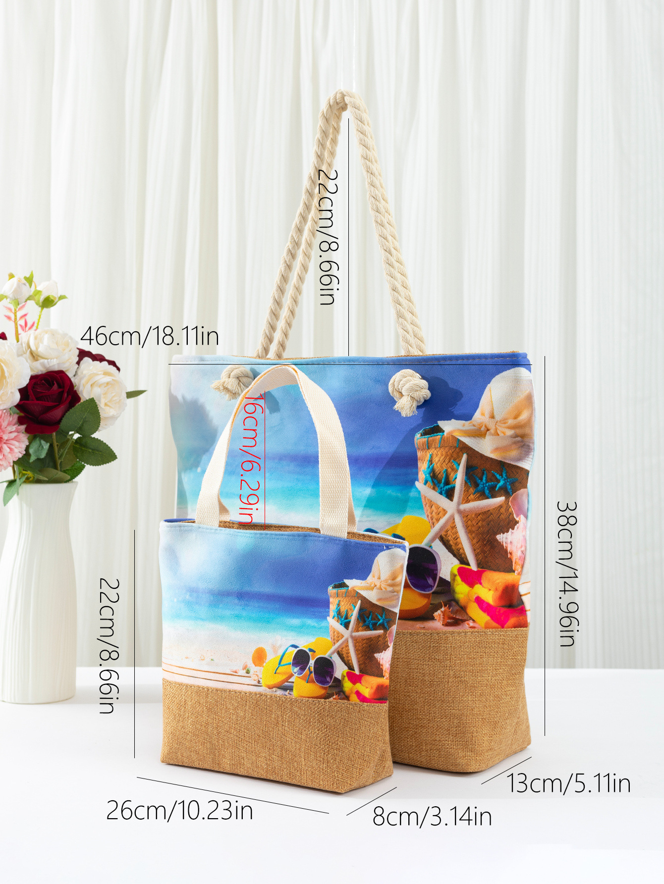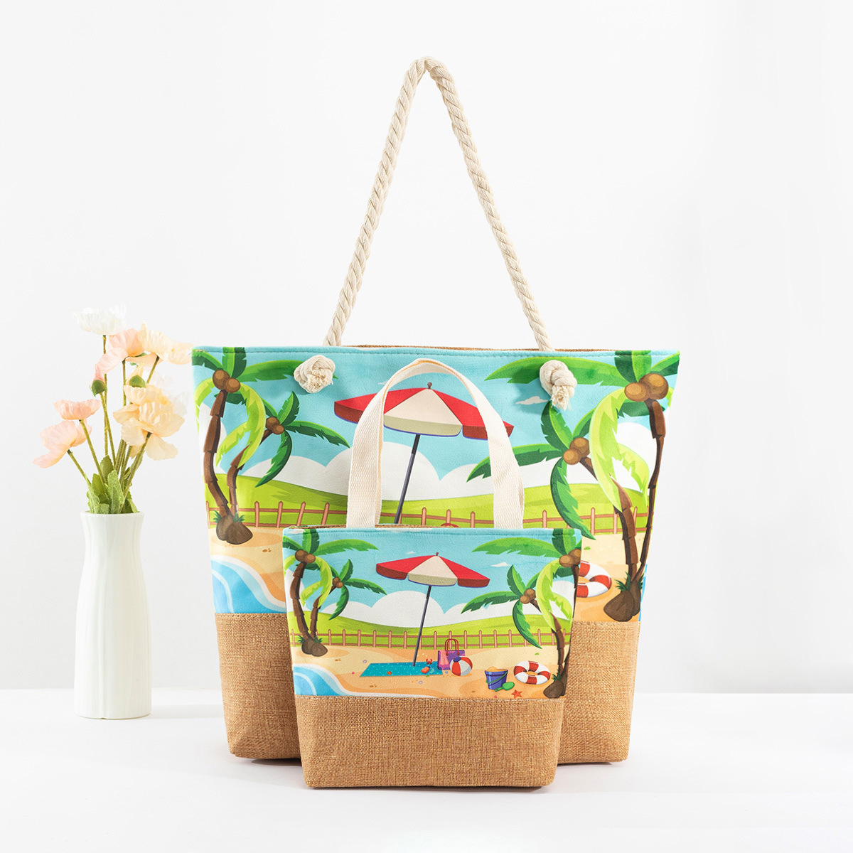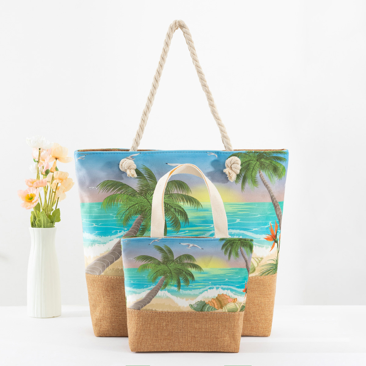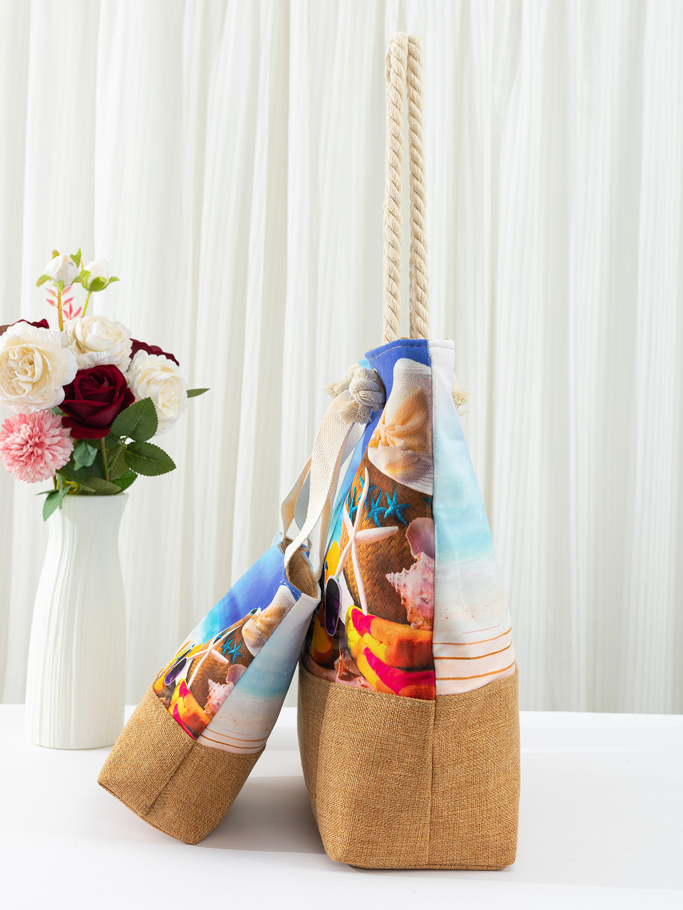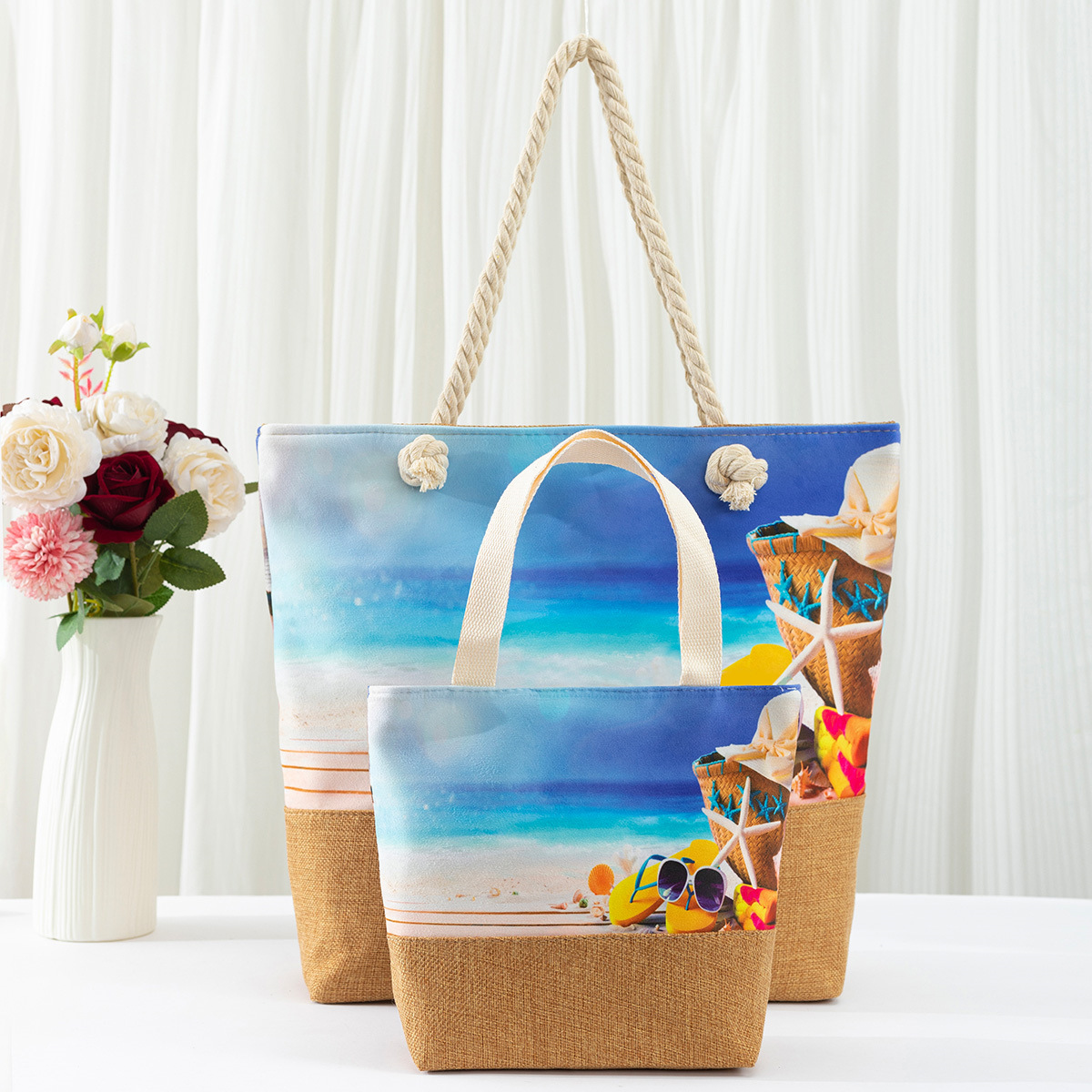 숙녀 비치 가방 대외 무역 대용량 리넨 디지털 인쇄 어깨 가방 여성 양면 코튼 로프 핸드백 2pcs