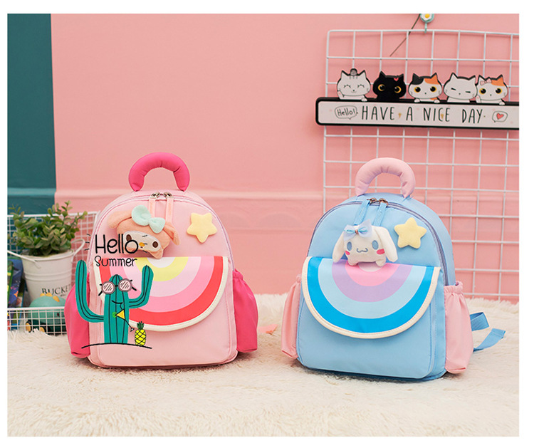 유치원 작은 학교 가방 2025 새로운 무지개 만화 1-5 세 아기 배낭 소녀 경량 능선 보호 배낭