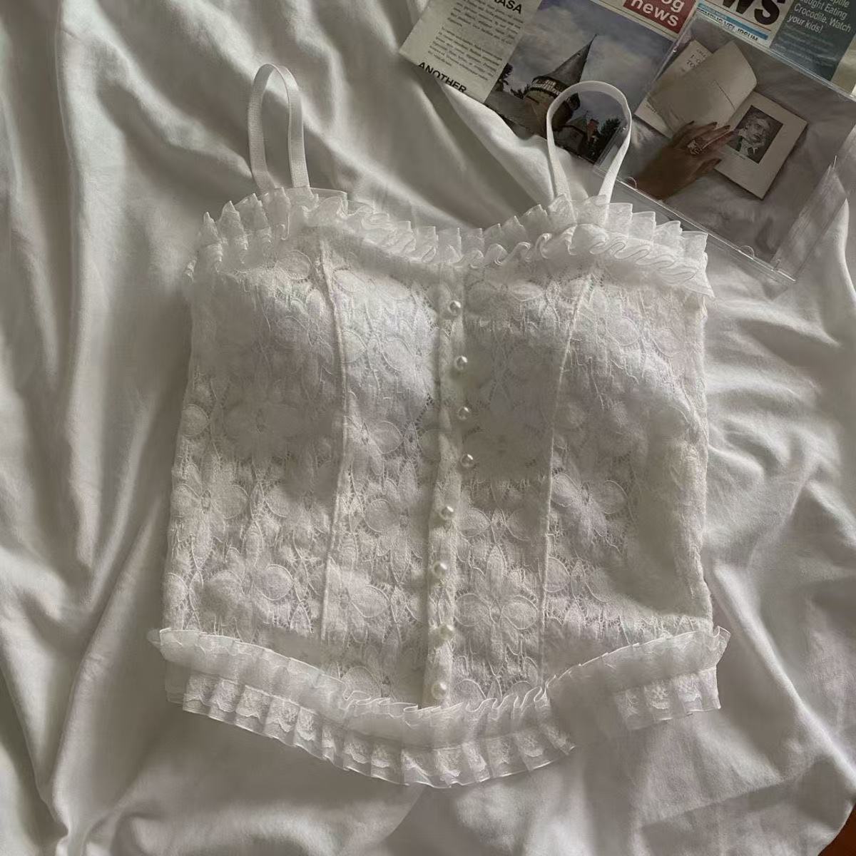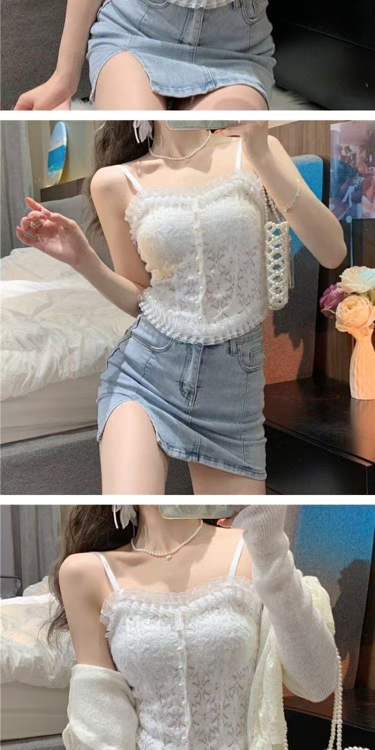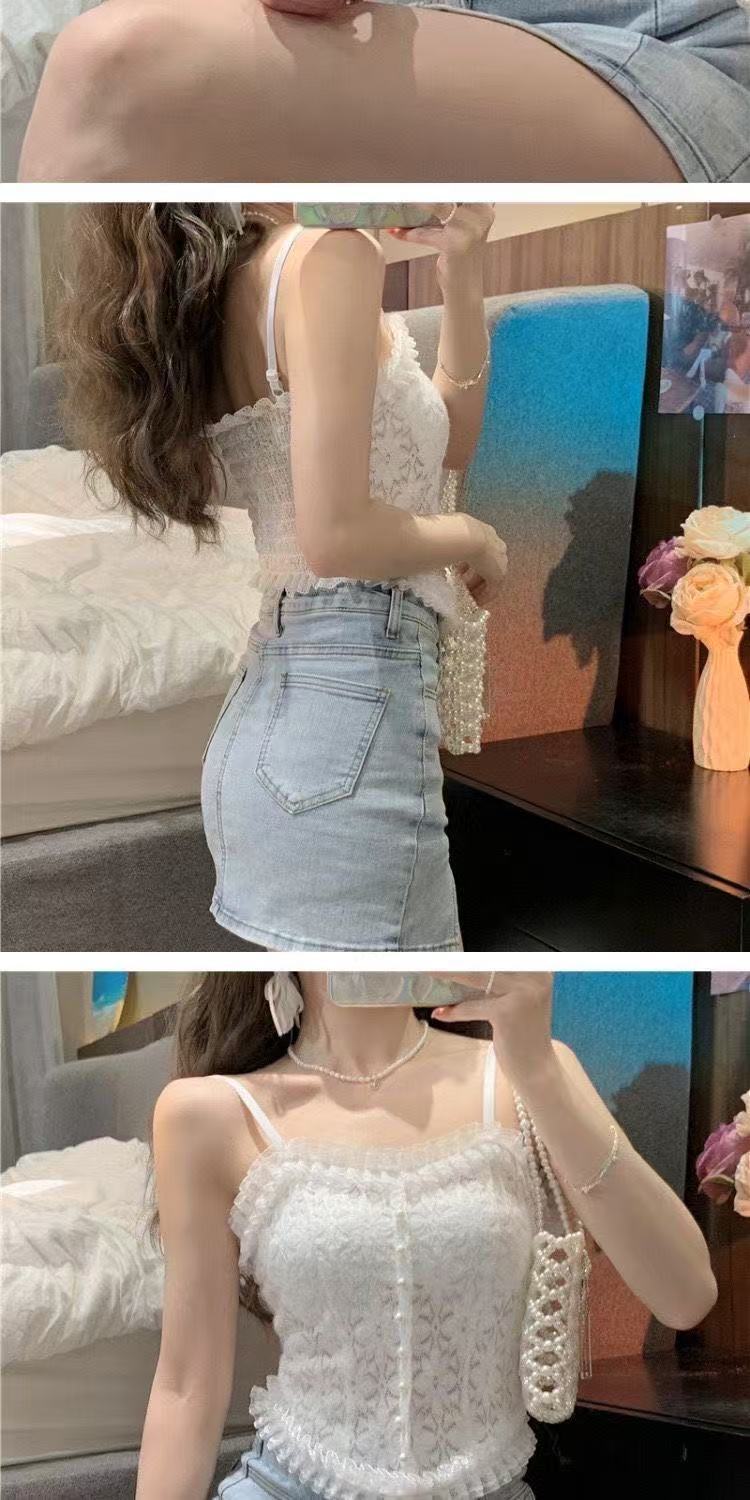 레이스 슬링 아름 다운 백 할로우 아웃 플리츠 스트레치 조끼 중간 길이의 섹시한 여성 내부 착용 튜브 탑 보텀 가슴 포장스토어 가기