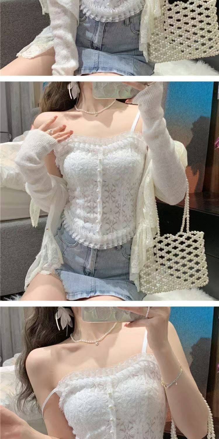 레이스 슬링 아름 다운 백 할로우 아웃 플리츠 스트레치 조끼 중간 길이의 섹시한 여성 내부 착용 튜브 탑 보텀 가슴 포장