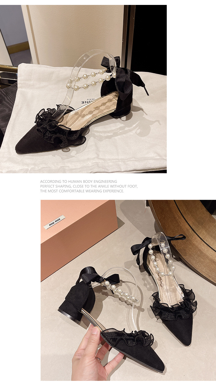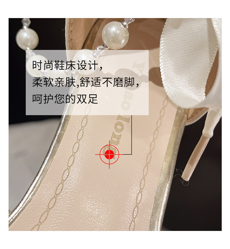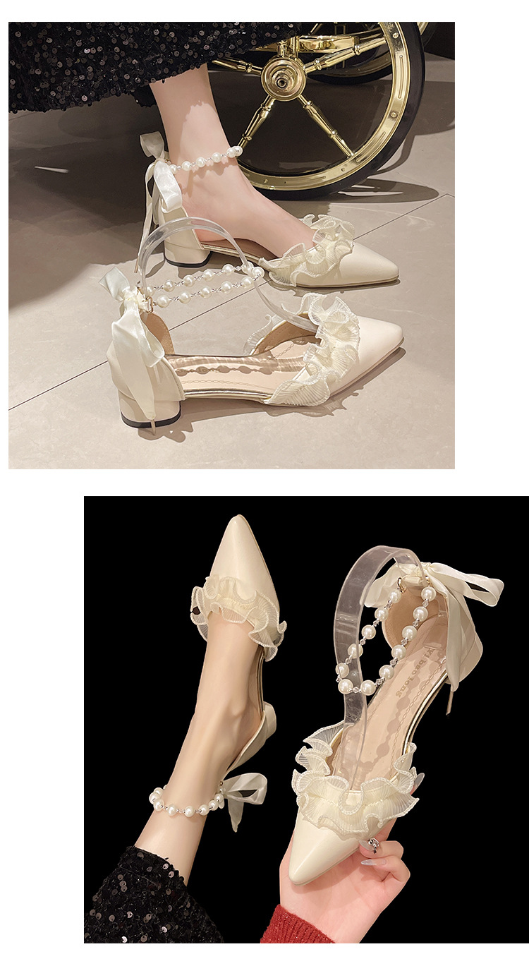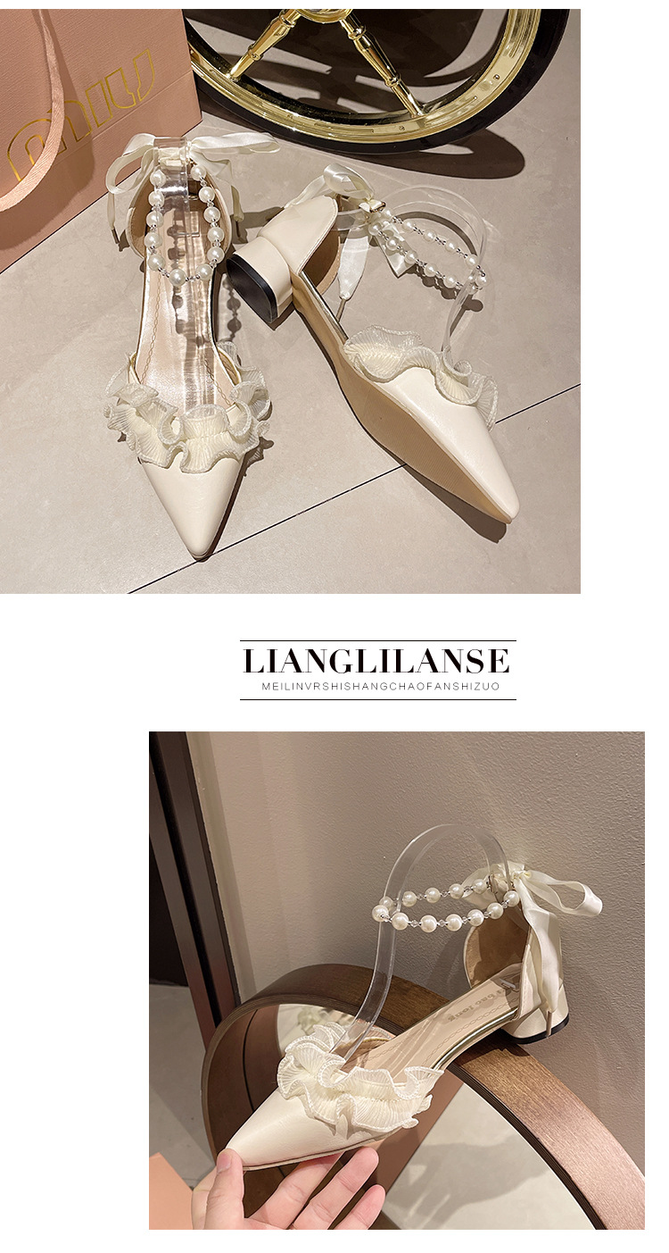 패션 부드러운 요정 스타일 우아한 청키 힐 샌들 여성의 2025 년 봄과 여름 새로운 진주 버클 하이힐스토어 가기