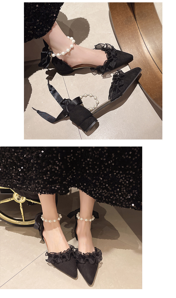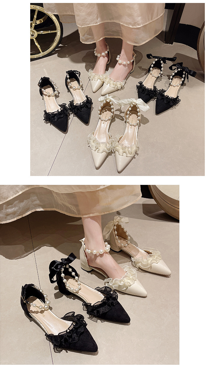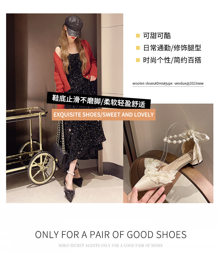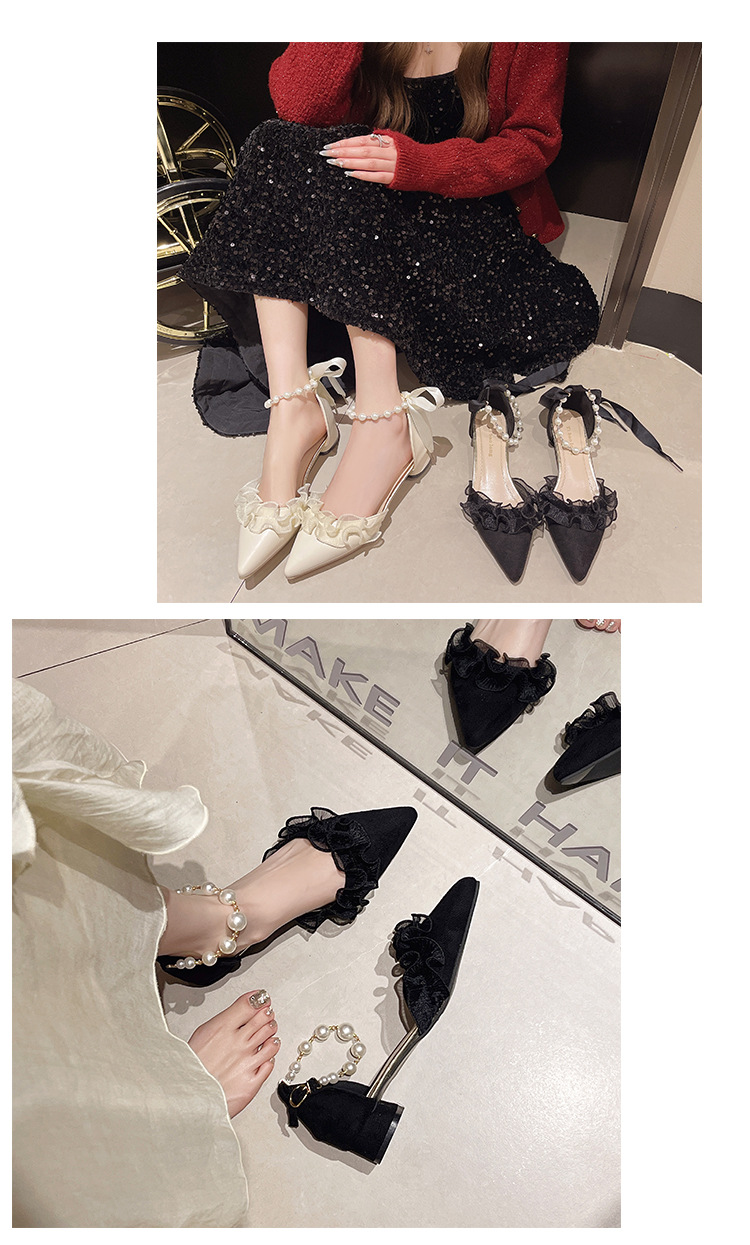 패션 부드러운 요정 스타일 우아한 청키 힐 샌들 여성의 2025 년 봄과 여름 새로운 진주 버클 하이힐스토어 가기