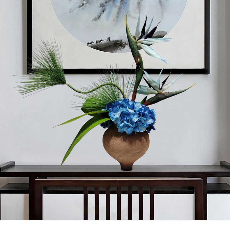 현대 푸른 인공 꽃 가짜 꽃 세라믹 꽃꽂이 전체 촬영 소품 꽃 집 장식 장식품스토어 가기
