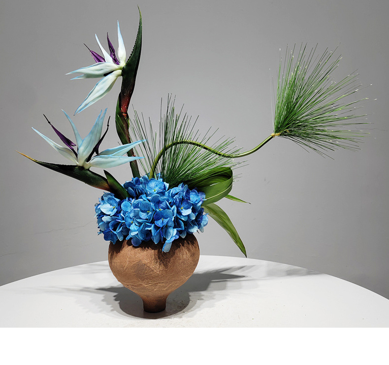 현대 푸른 인공 꽃 가짜 꽃 세라믹 꽃꽂이 전체 촬영 소품 꽃 집 장식 장식품