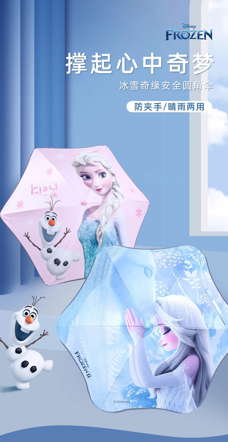 디즈니 어린이용 남성용 및 여성용 비닐 우산, 둥근 엘사 공주 파라솔, 2-8세 어린이용 우산