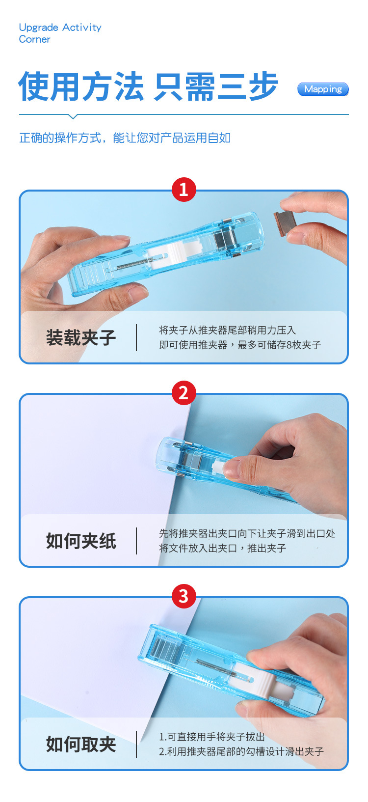 컬러 푸셔 파일 작은 클립 문구 고정 종이 클립 스테이플러 바인딩 다기능 푸시 클립